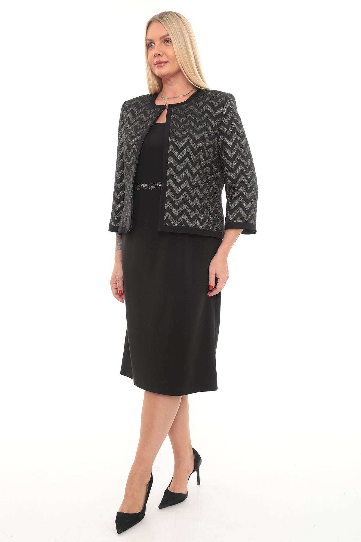 Zebra Desen Ceketli Elbise Takımı
