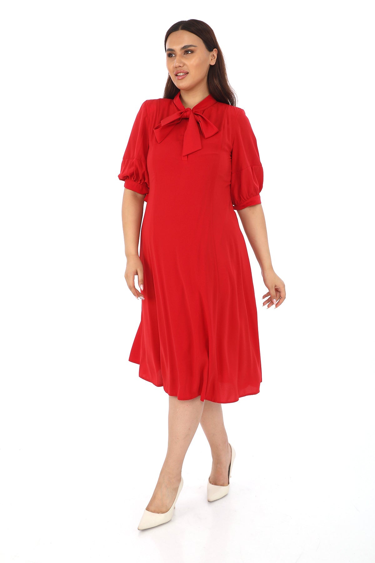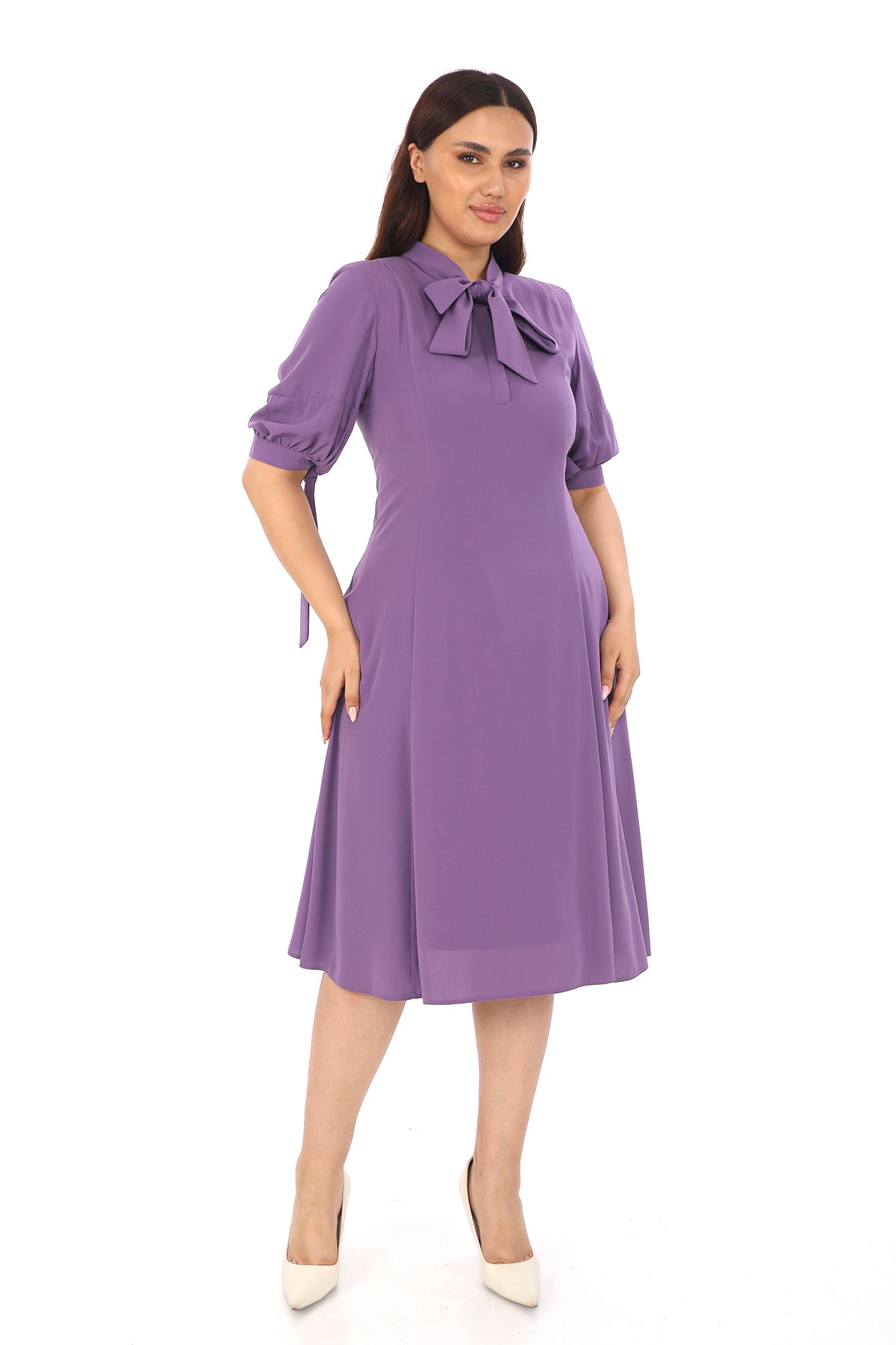 Fular Yaka Yarım Kollu Elbise