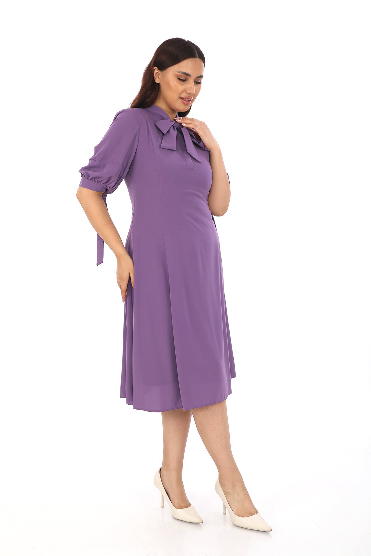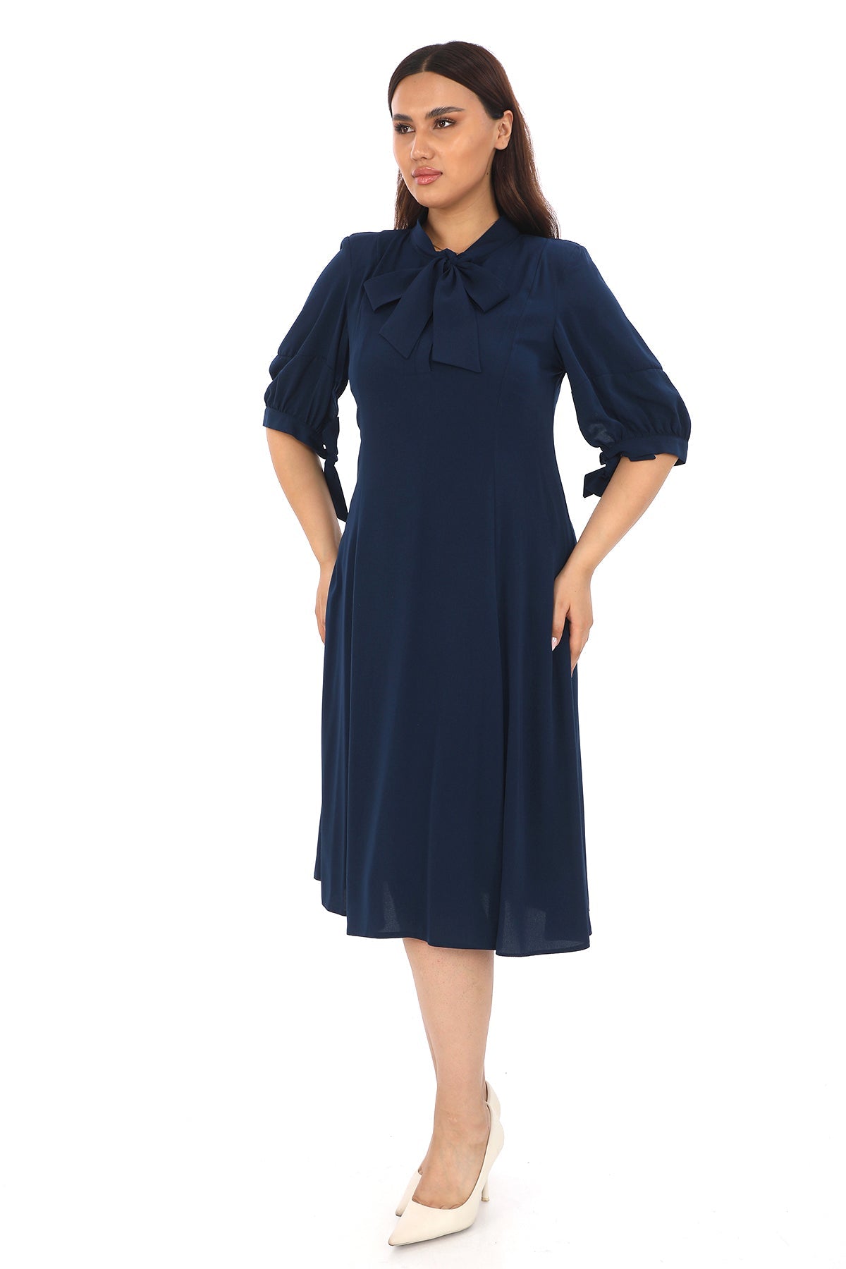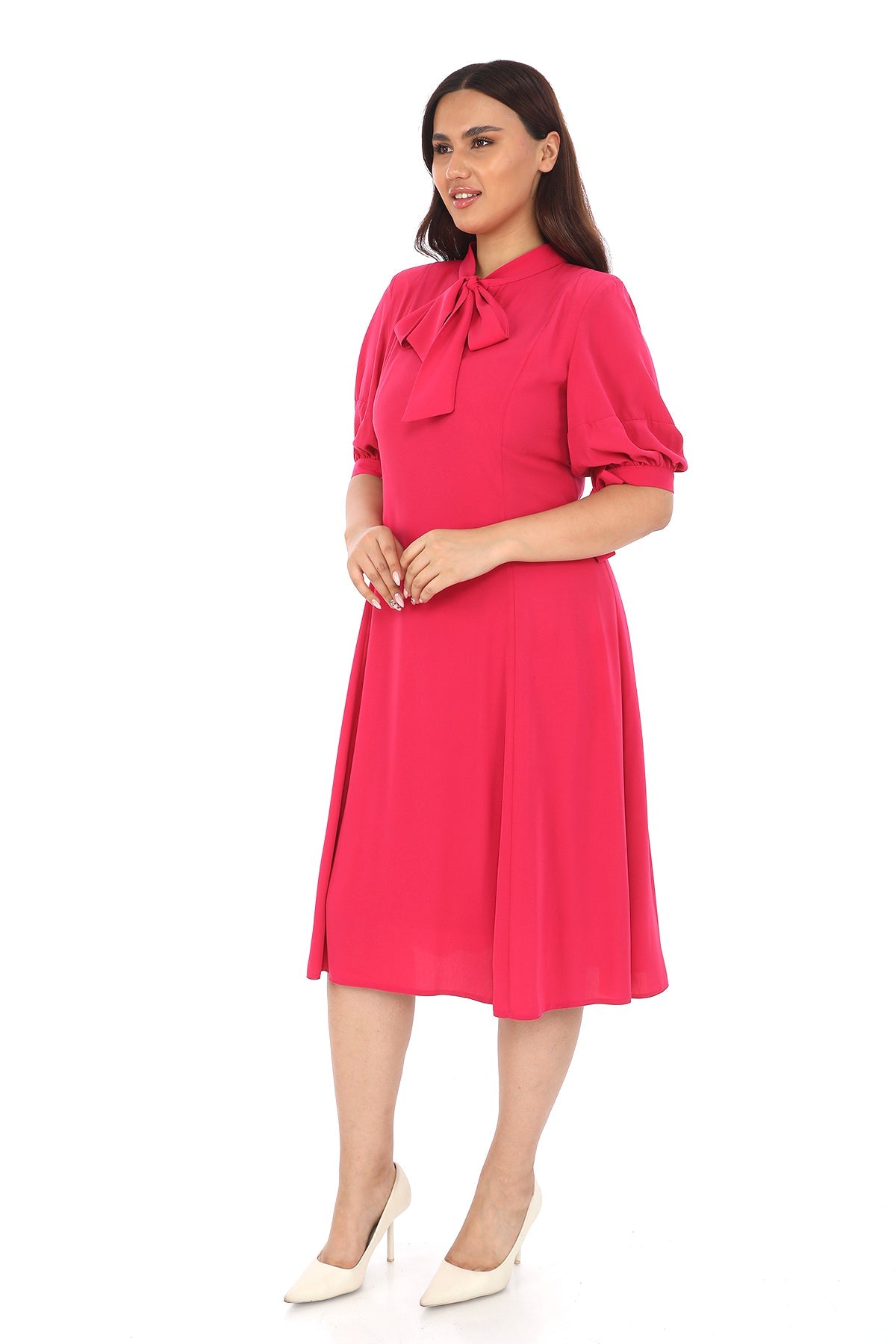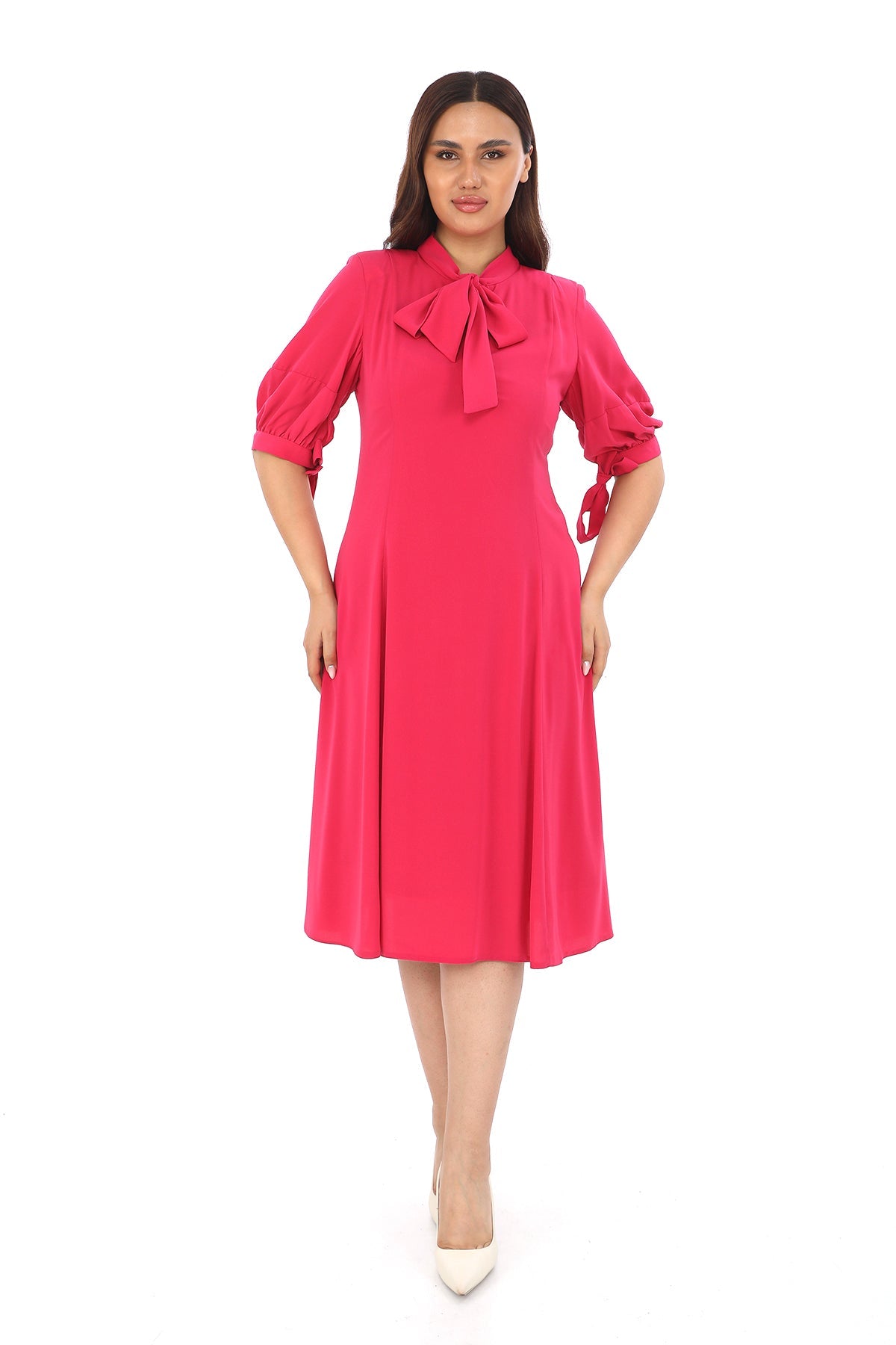 Fular Yaka Yarım Kollu Elbise