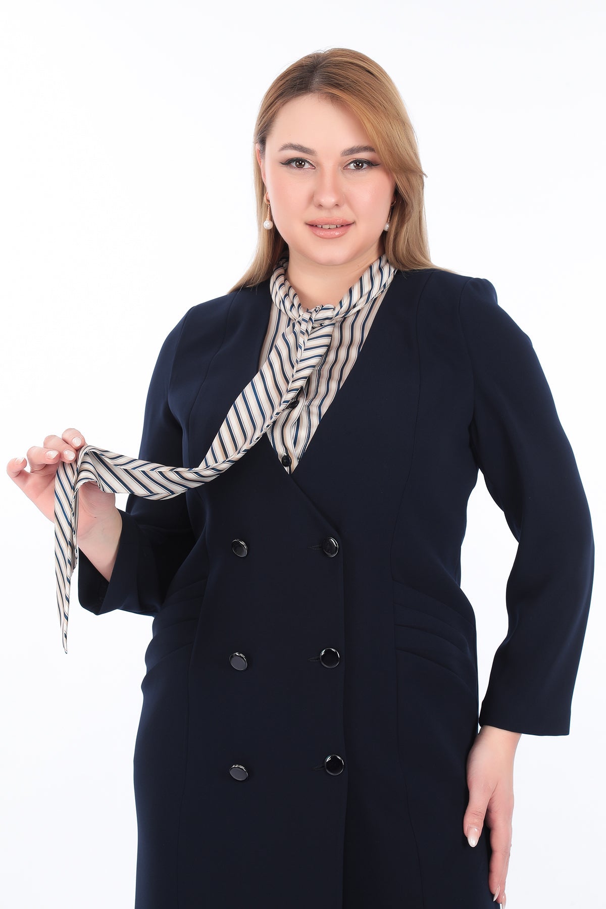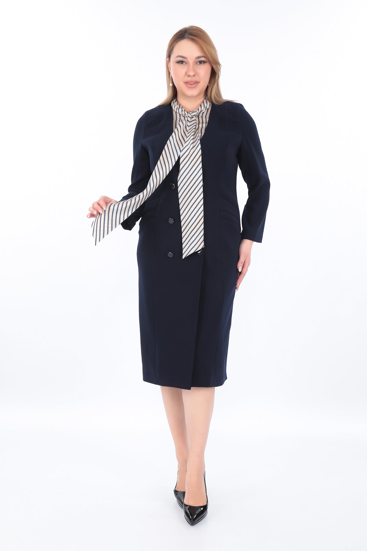 Düğmeli Lacivert Ceketli Elbise Takımı