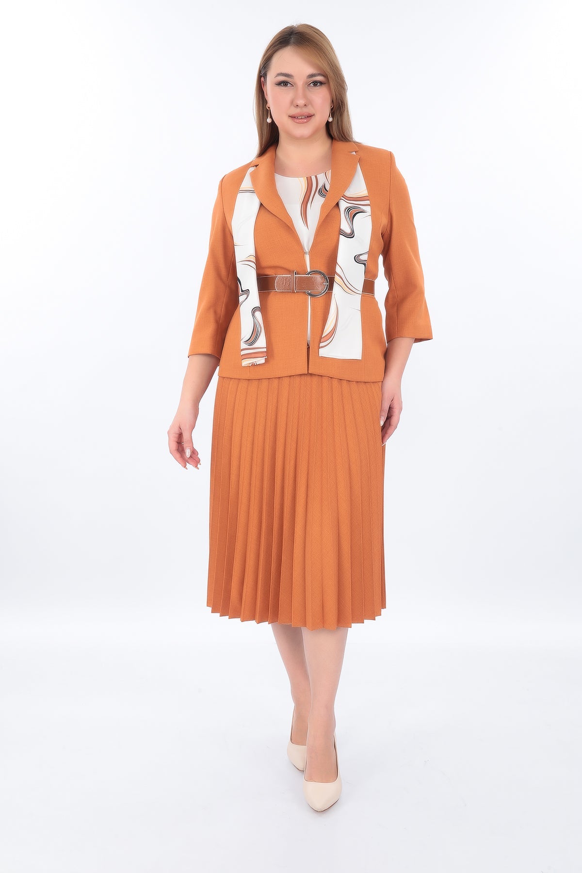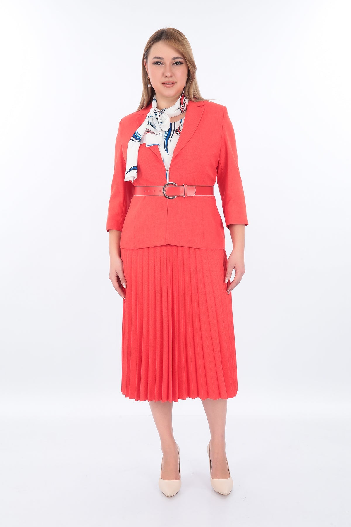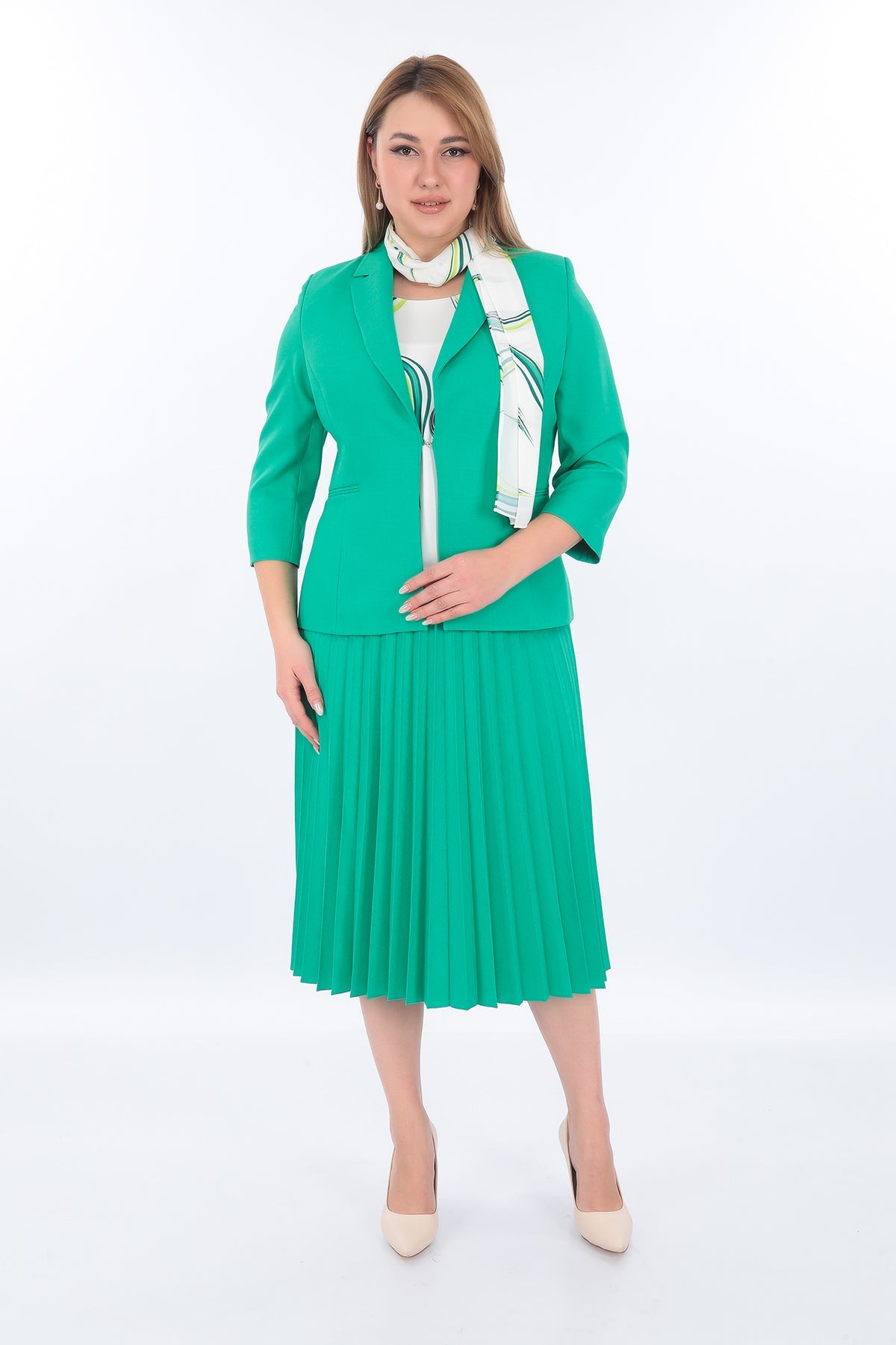 Şifon Bluz, Ceket ve Pliseli Etek Üçlü Kadın Takım (Kemer ve Fular Detaylı)