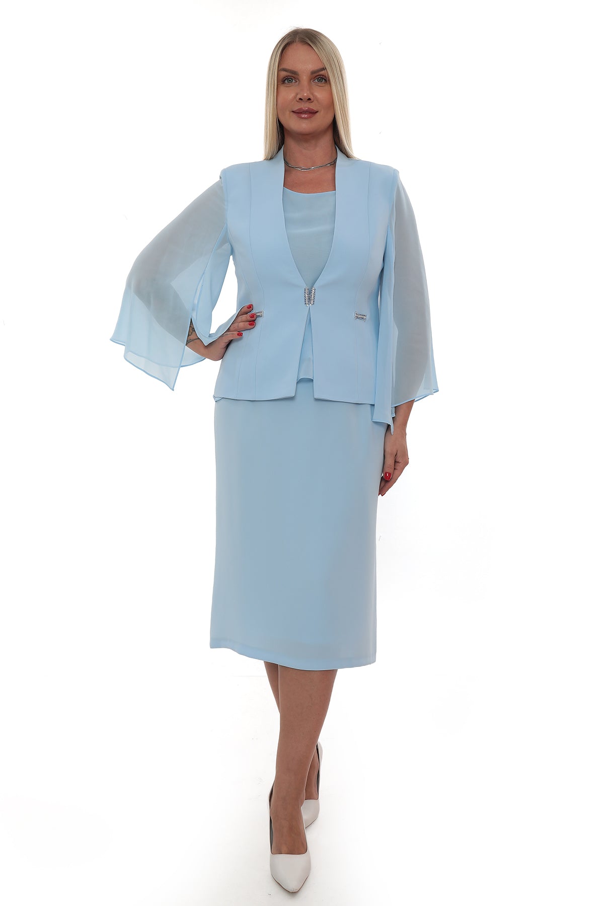 Dantel Detaylı Mavi İkili Takım (Ceket & Elbise)
