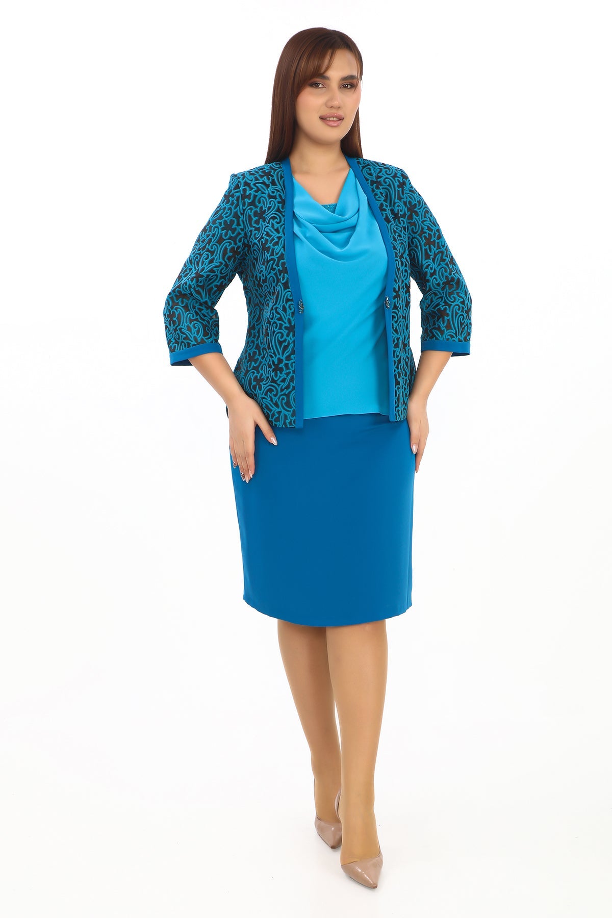 Ürün Açıklaması: Zarif tasarımıyla göz kamaştıran desenli ceketli kadın elbise takımı, hem özel günlerde hem de iş hayatında modern bir görünüm sunar. Renk uyumu, kaliteli kumaş...