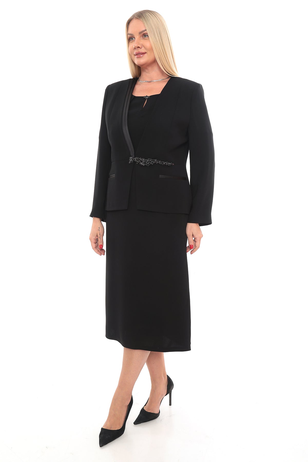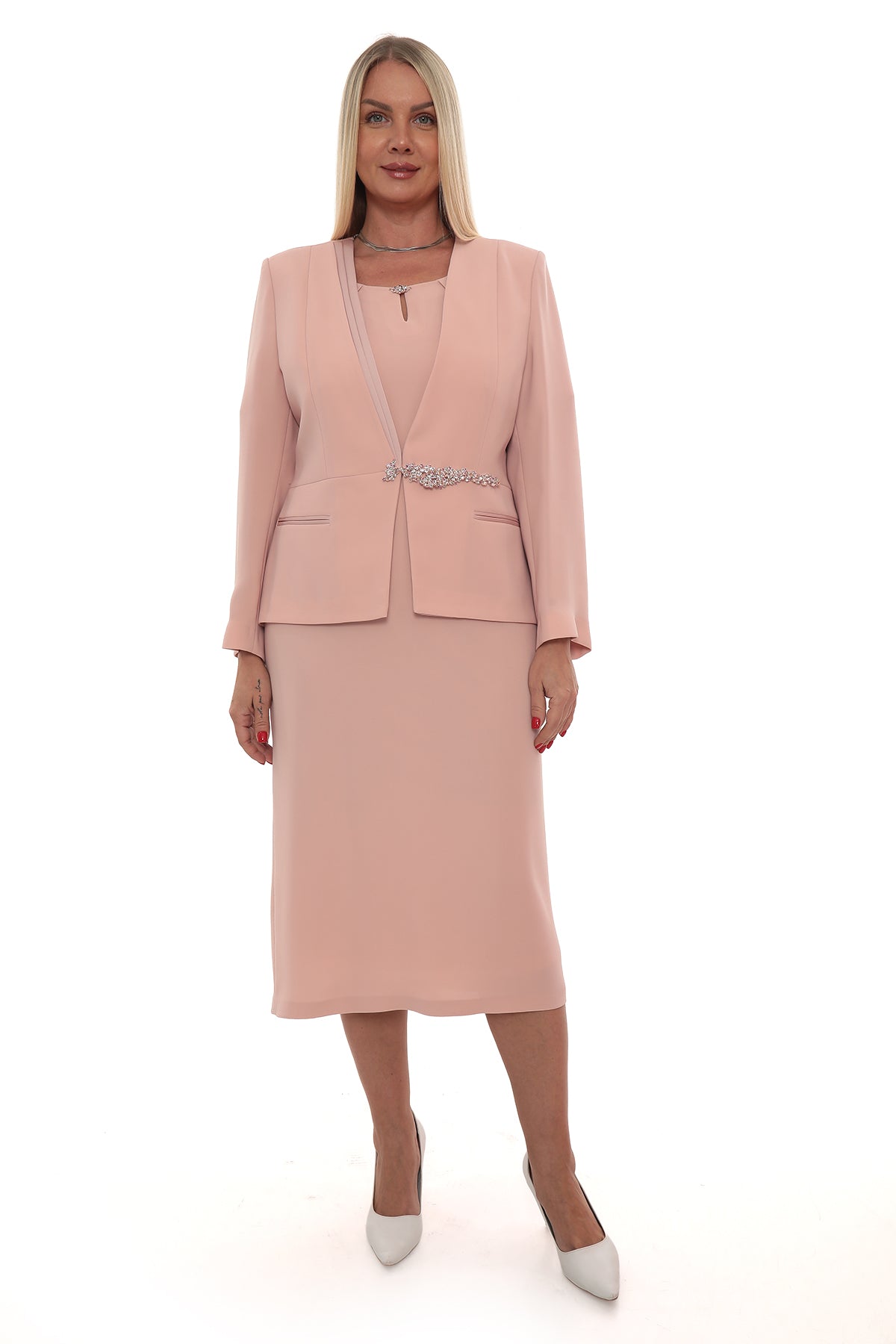 Taş Broşlu Ceket Elbise Takımı