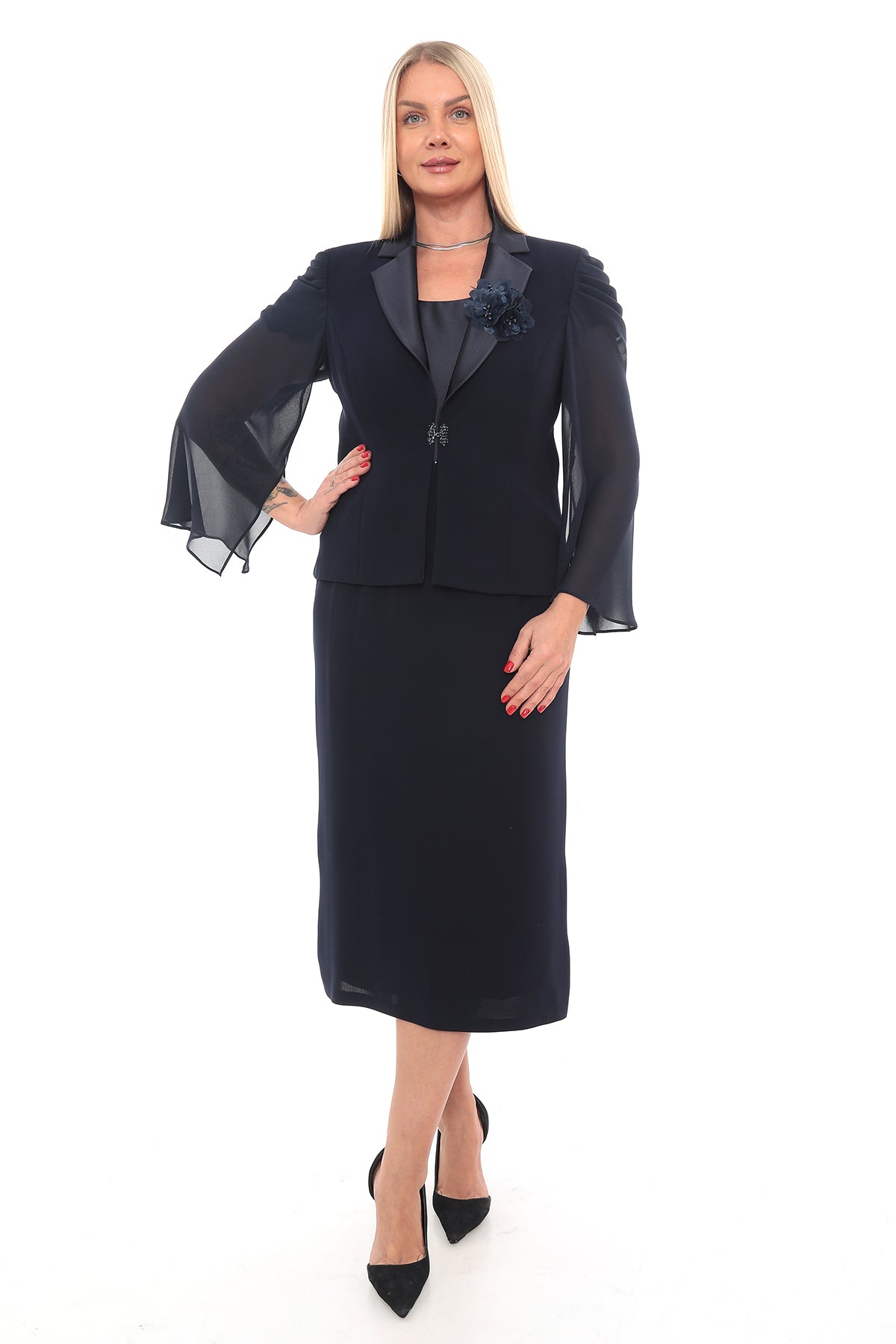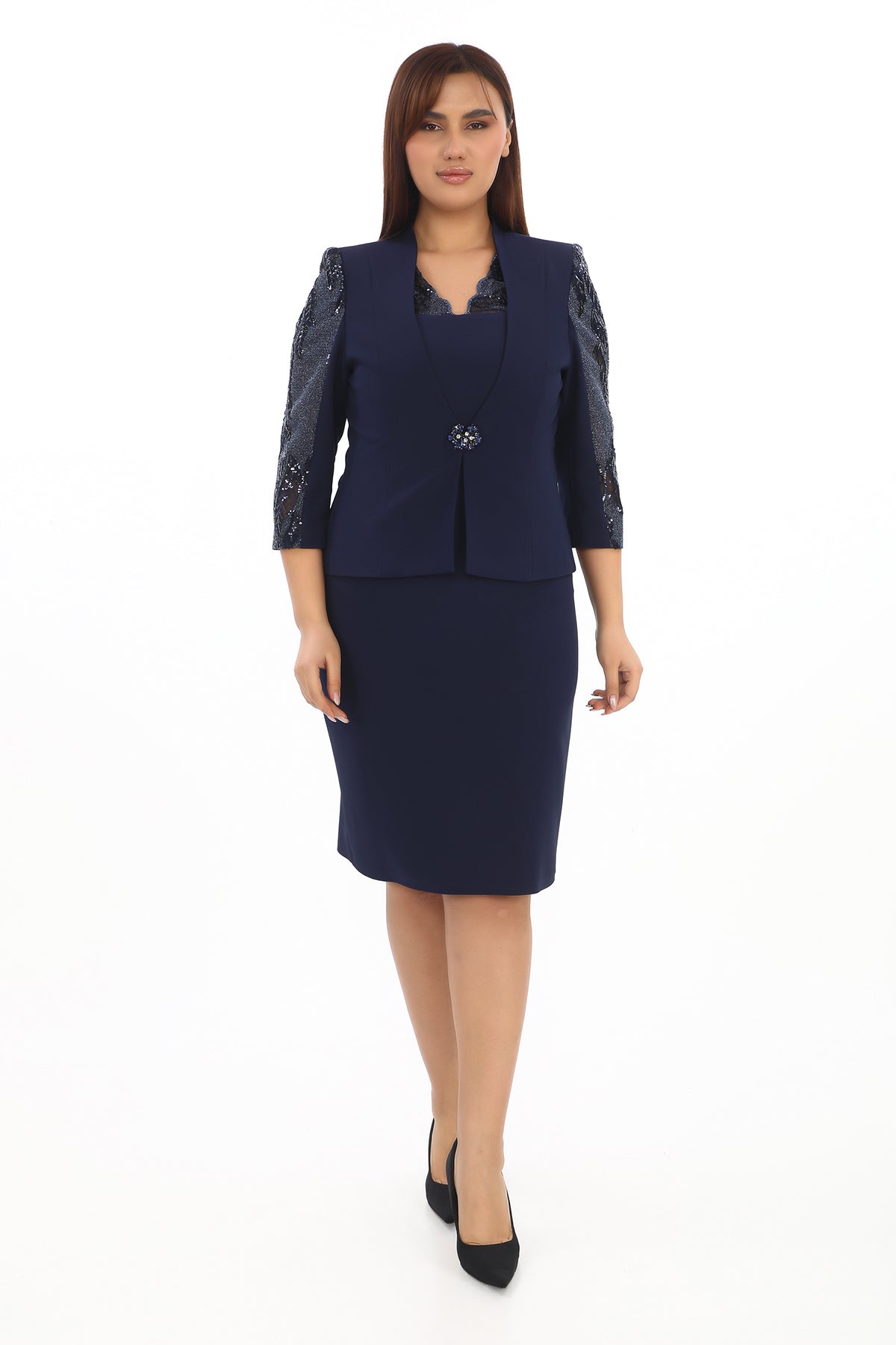 Lacivert Ceket Elbise Takımı – Büyük Beden Abiye Takım