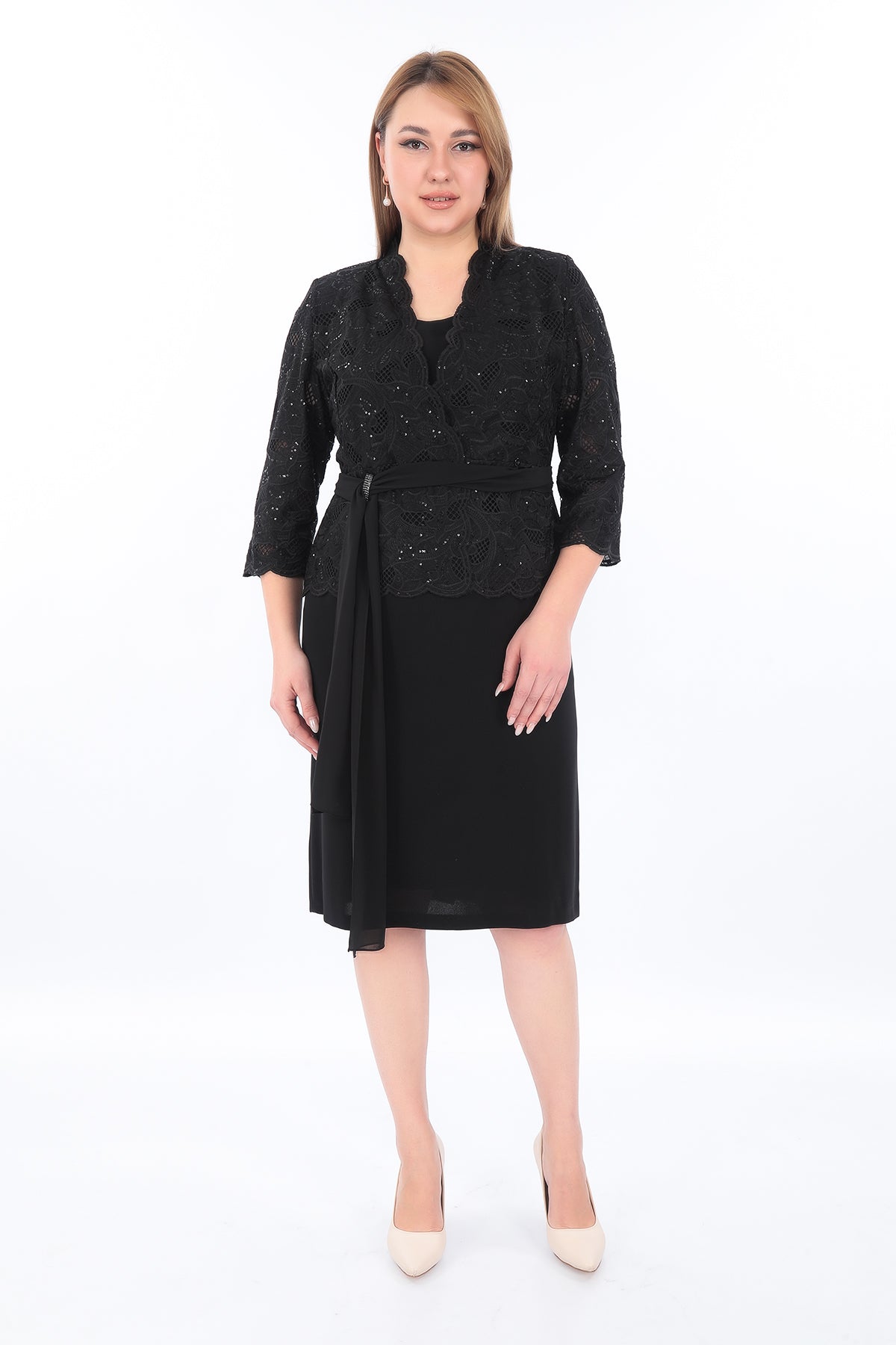 Renk Seçenekleri: LacivertBeden Seçenekleri: 42 – 48 Ürün Özellikleri: Şık dantel elbise ve saten görünümlü kısa ceket kombinasyonu Ceket üzerinde çıkarılabilir çiçek detayı ve şık kemer...