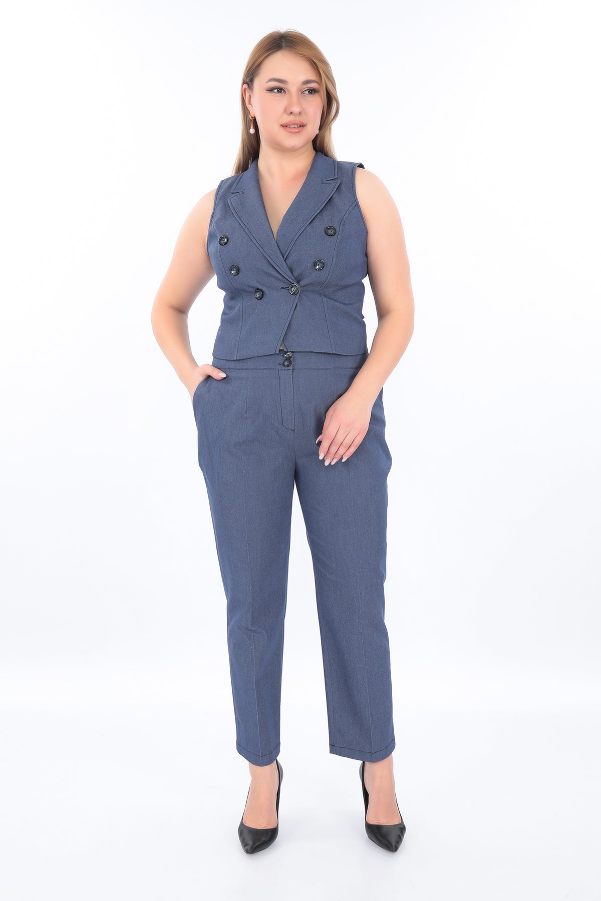 Kot Kumaş Ceket Pantolon İkili Kadın Takım