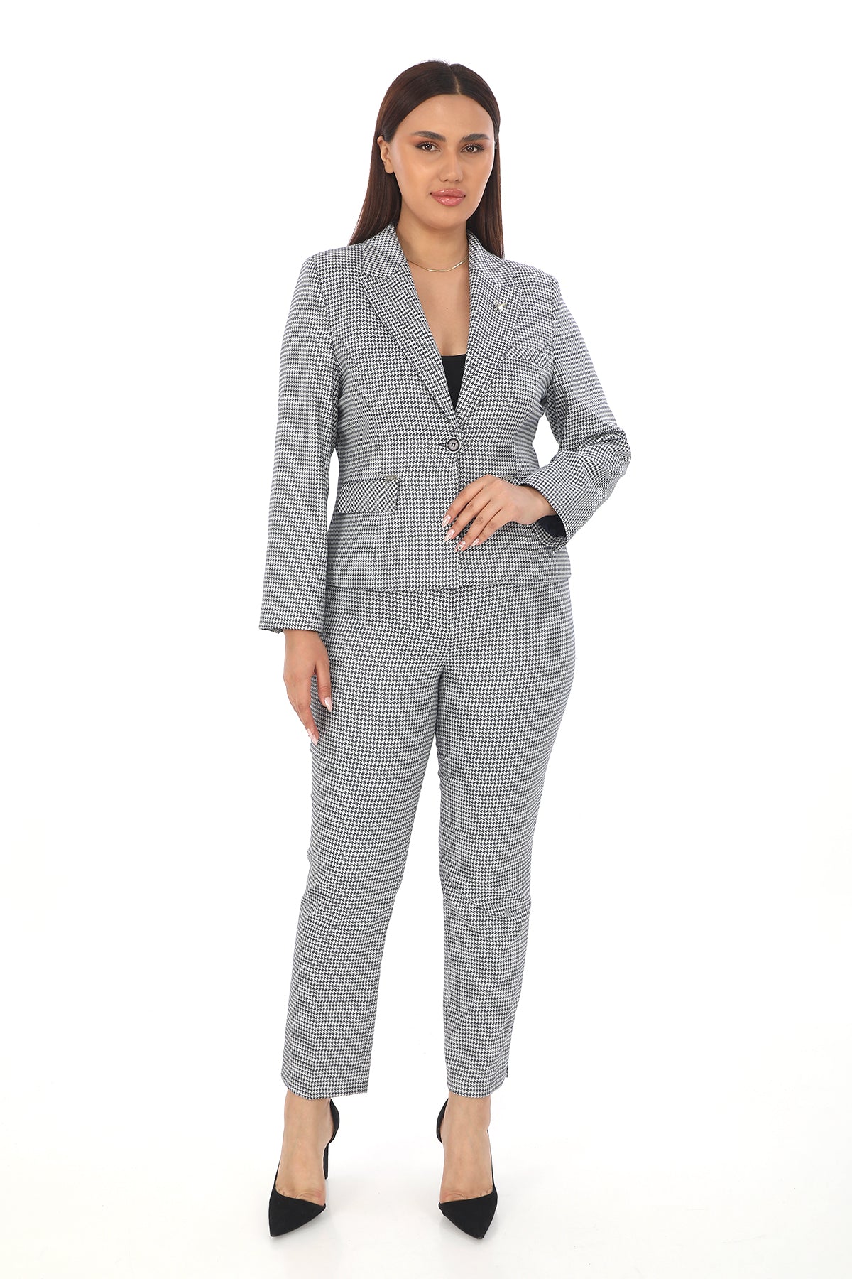Kadın Ekose Desenli Ceket & Pantolon Takım - Gri