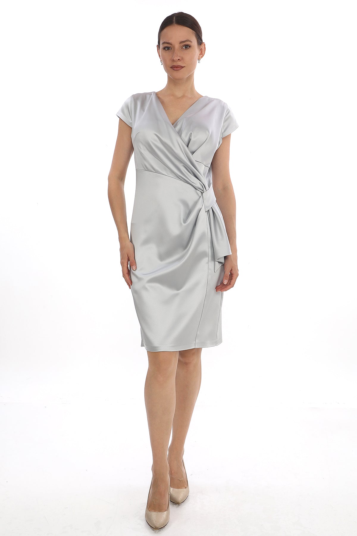 Zarif Kruvaze Bağlama Detaylı Saten Elbise