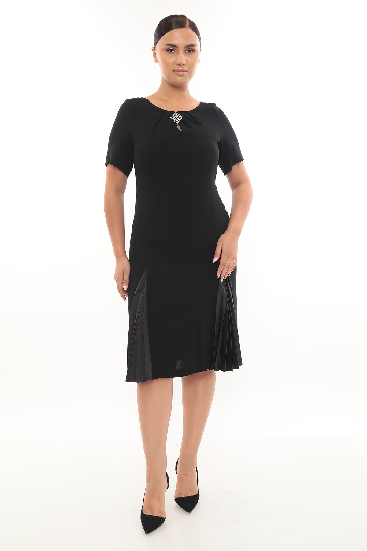 Kısa Kollu Elbise (Pileli Detaylı)