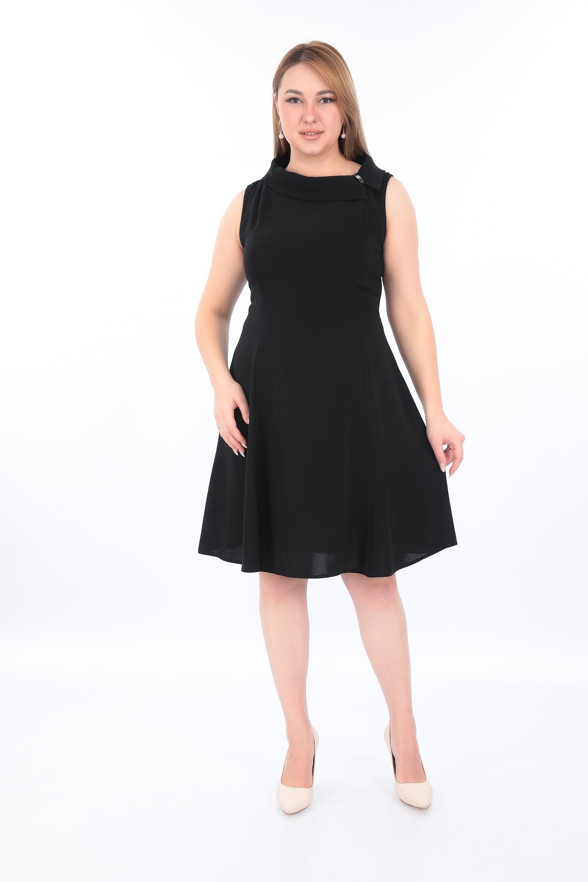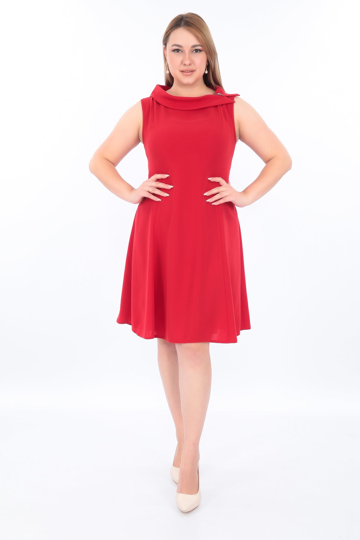 Kolsuz A Kesim Diz Üstü Elbise – Siyah, Lacivert, Kırmızı, Fuşya (38-44)