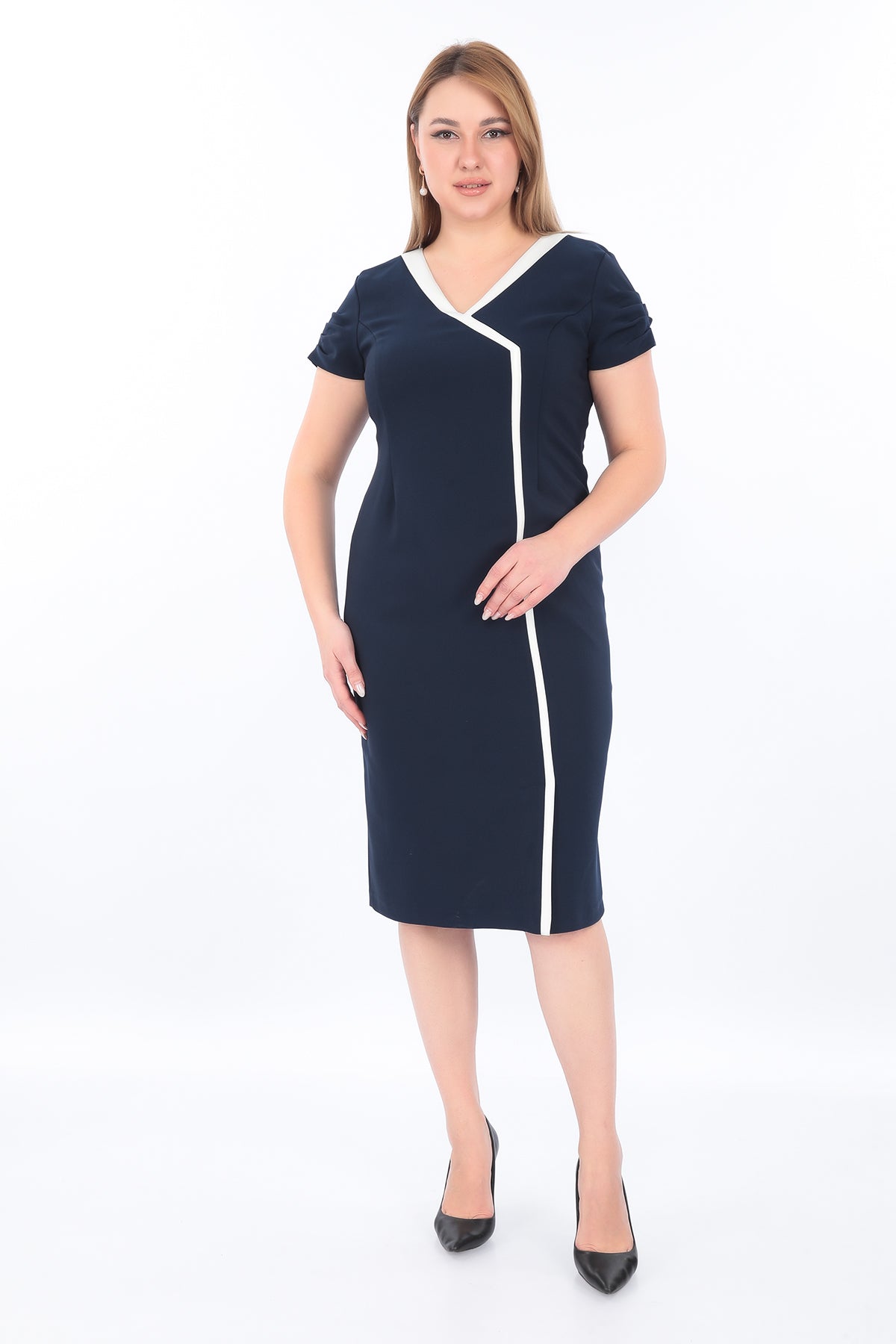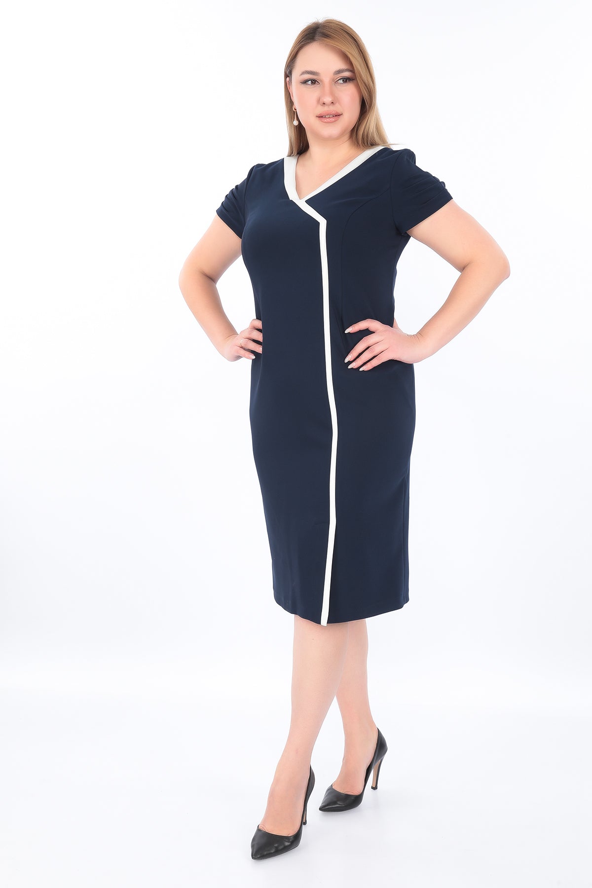 Renk: Lacivert / Siyah Beden: 42–48 Ürün Açıklaması: Zarif, sade ve her ortama uyumlu bir stil arayanlar için ideal!Kontrast beyaz şerit detayıyla tasarlanan bu elbise, klasik...