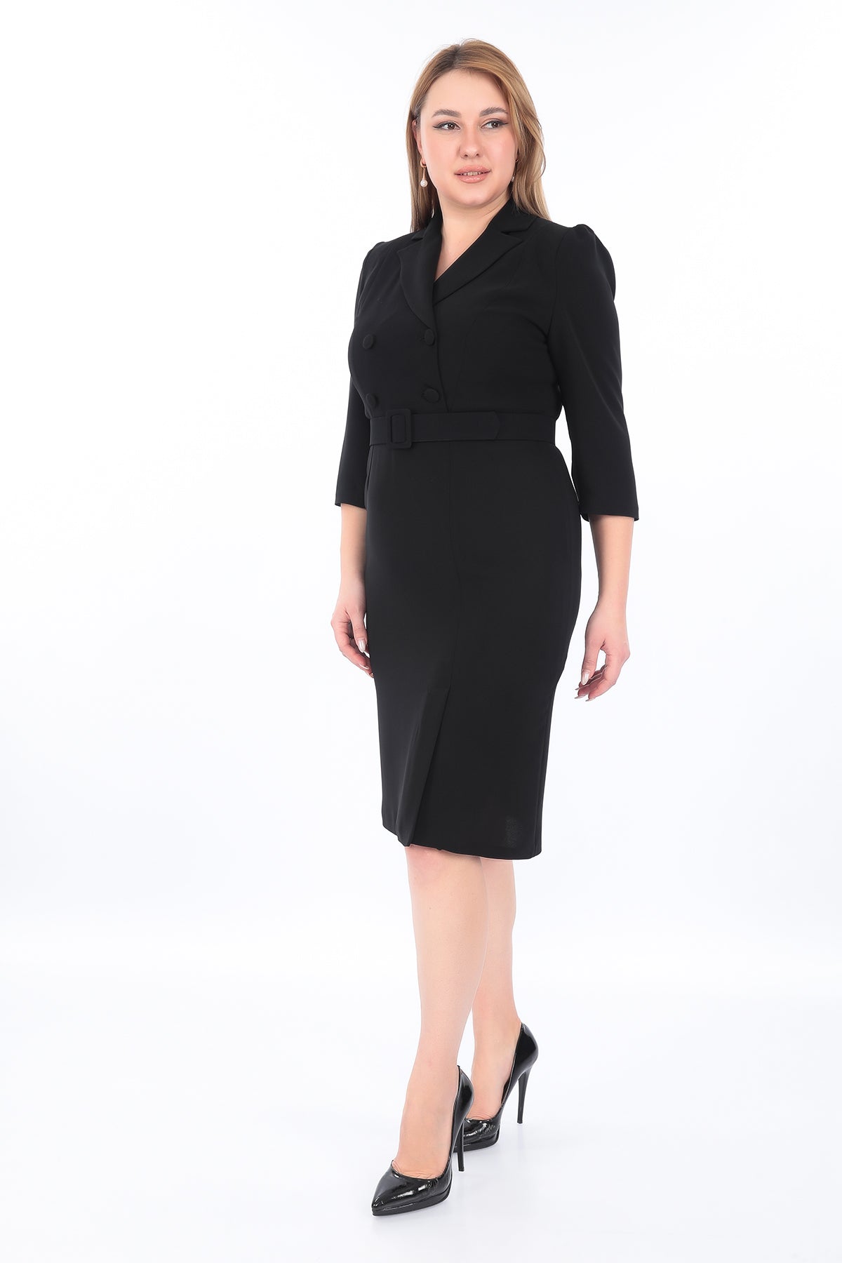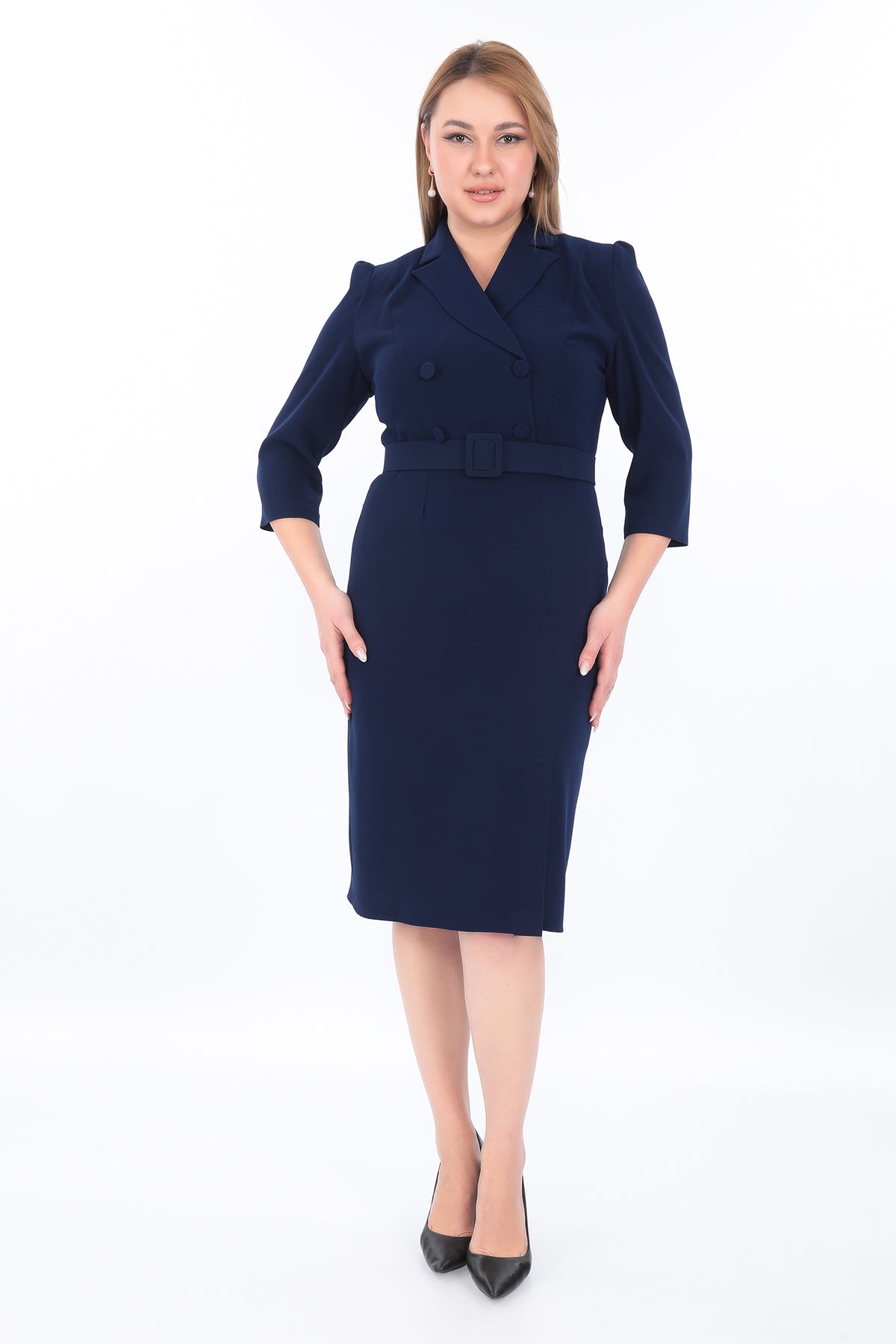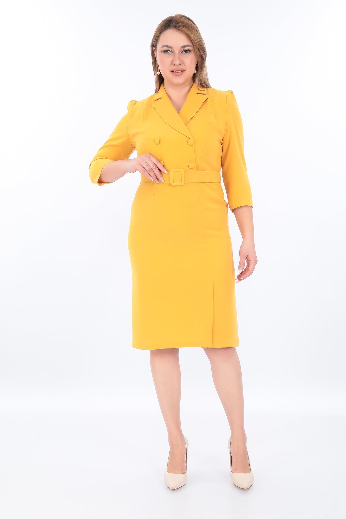 Önden Yırtmaçlı Kemerli Erkek Yaka Kadın Elbise