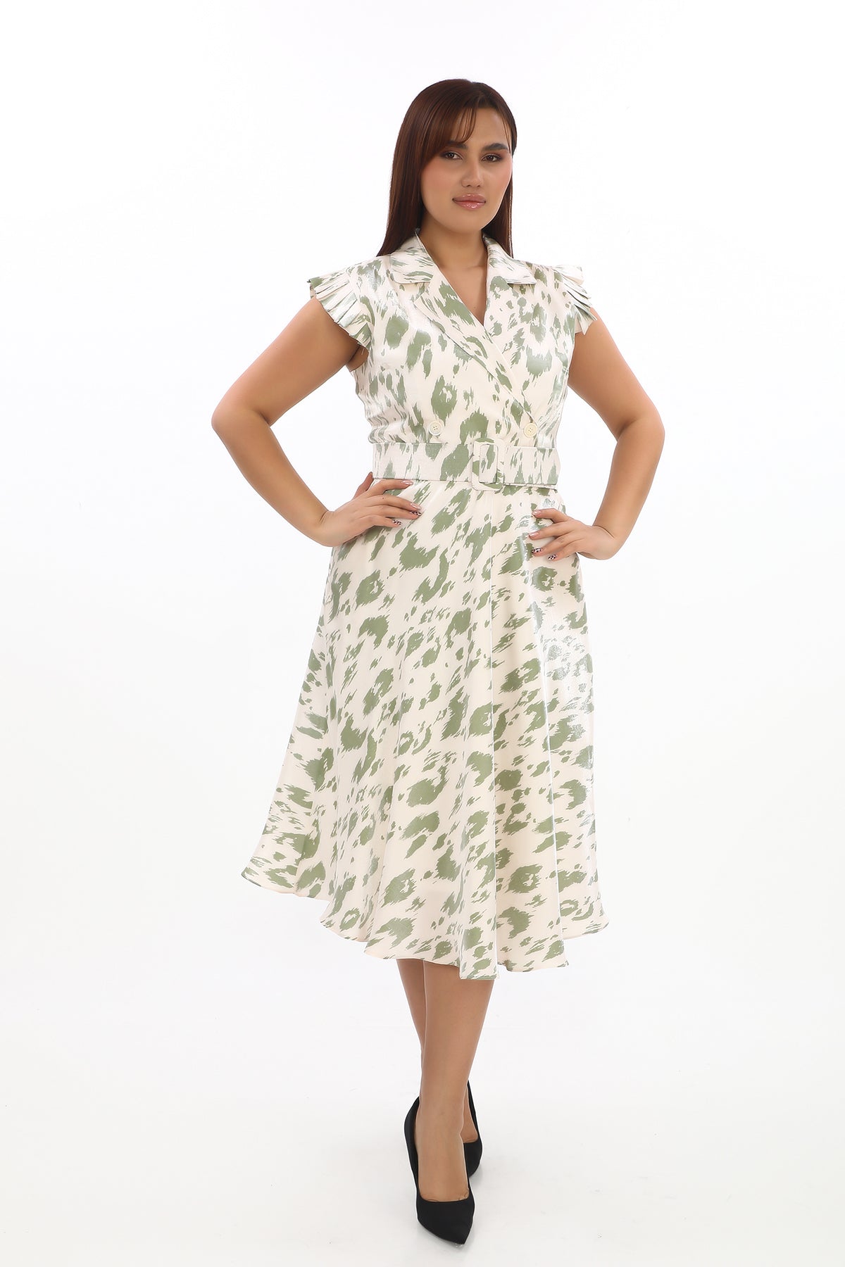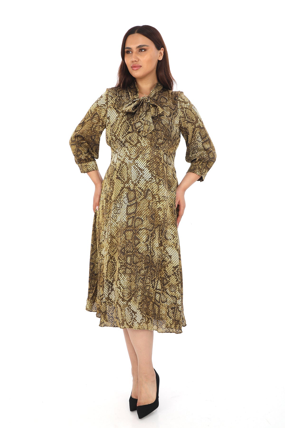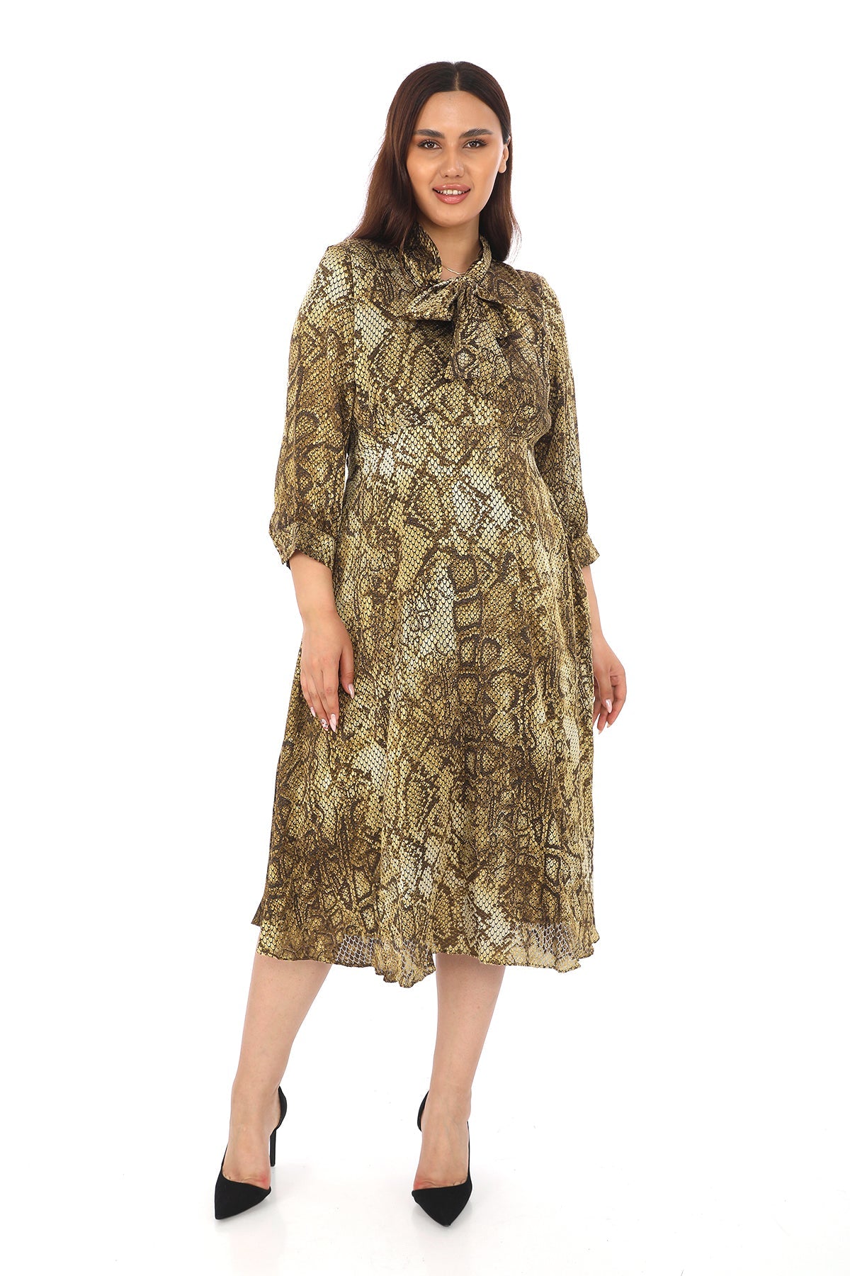 Yılan Desenli Kuşaklı Gömlek Elbise