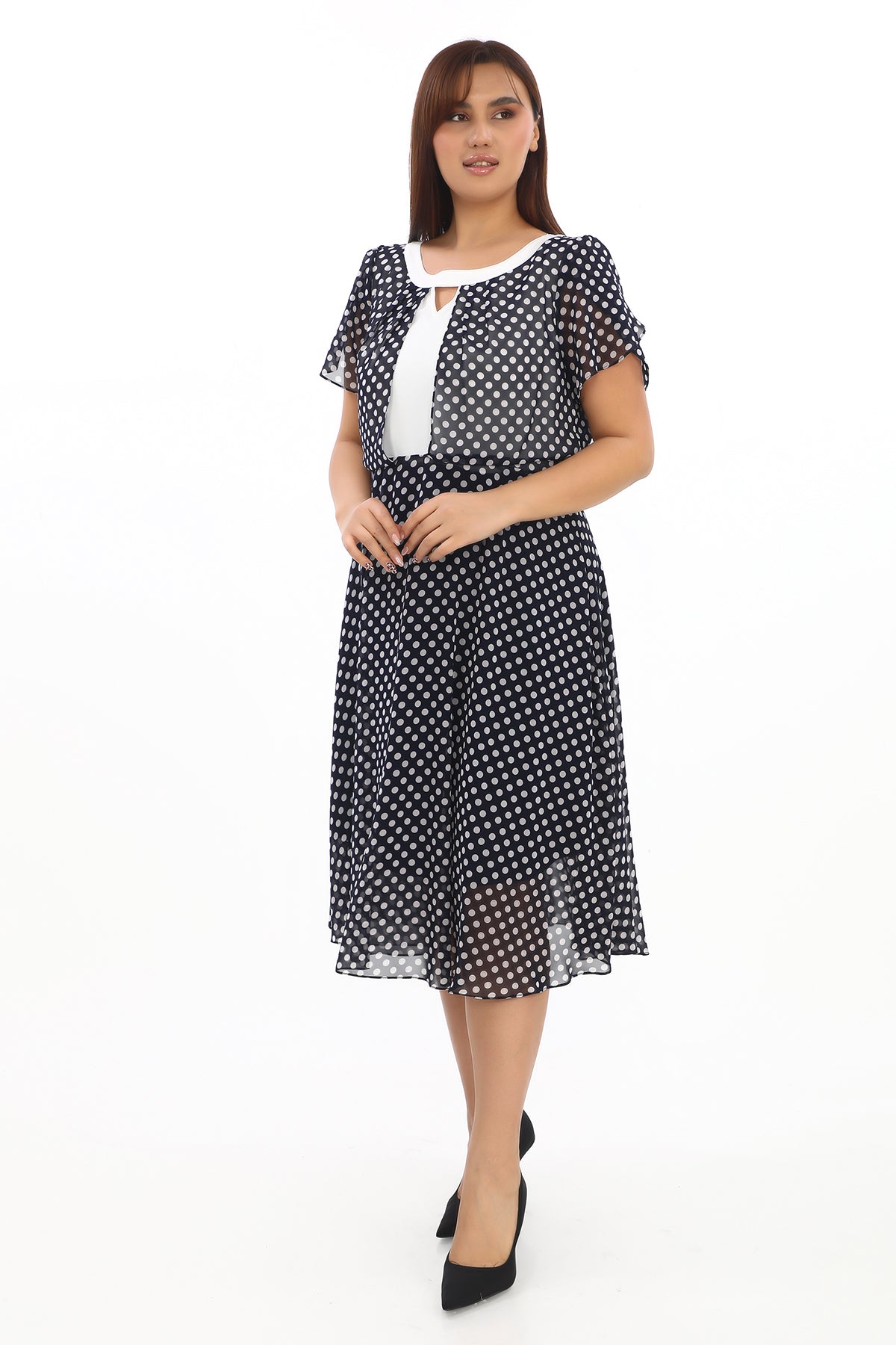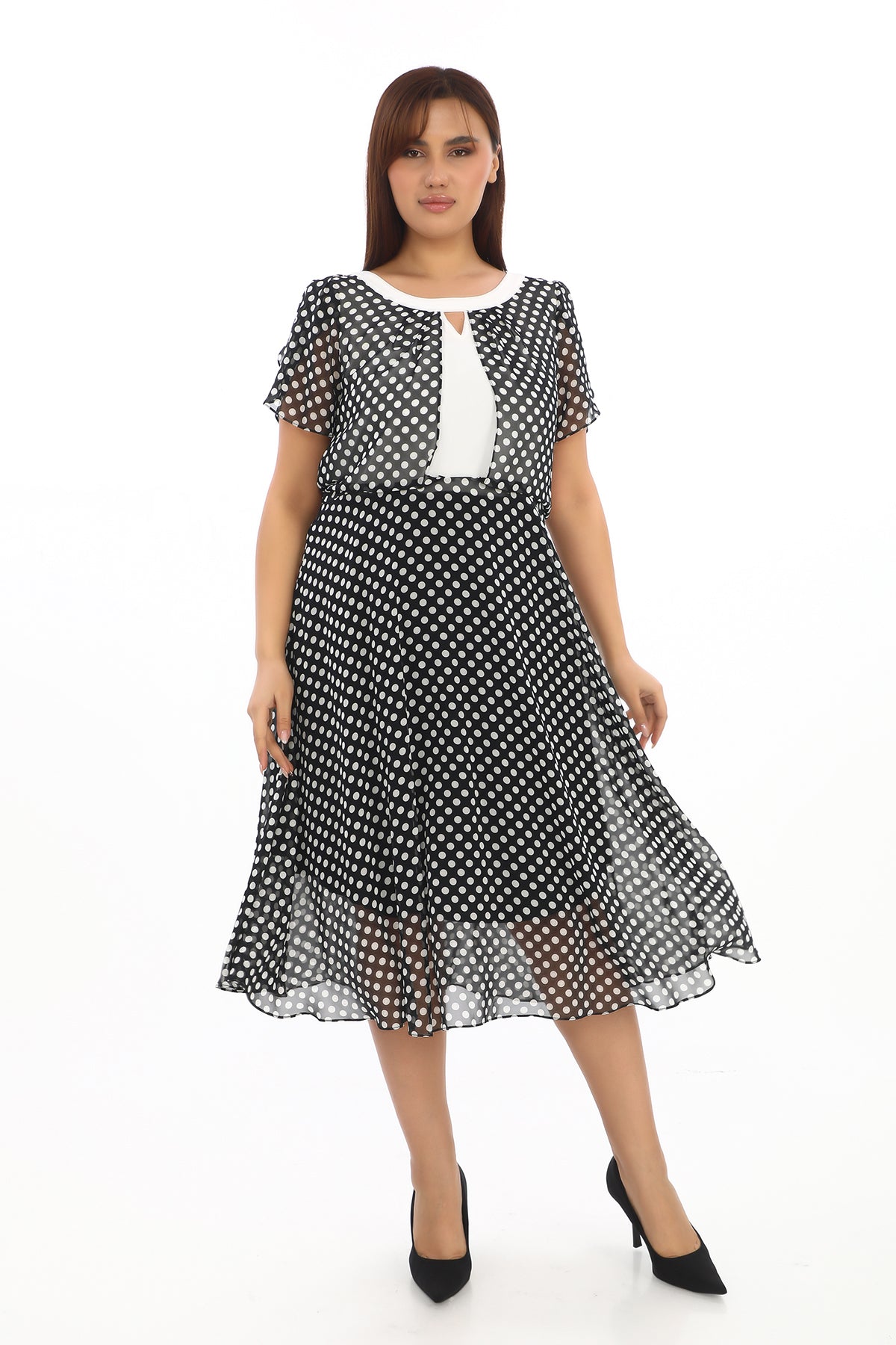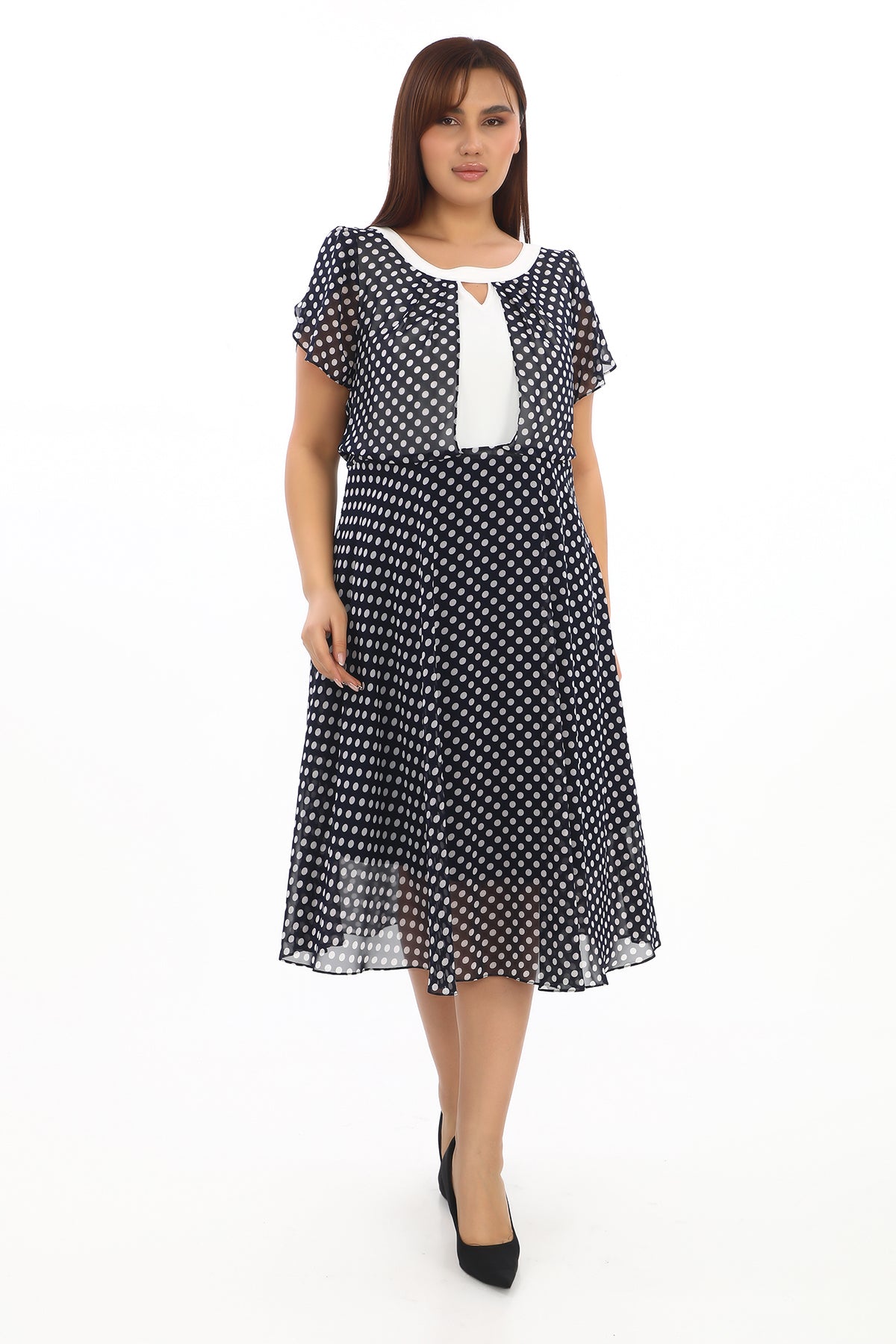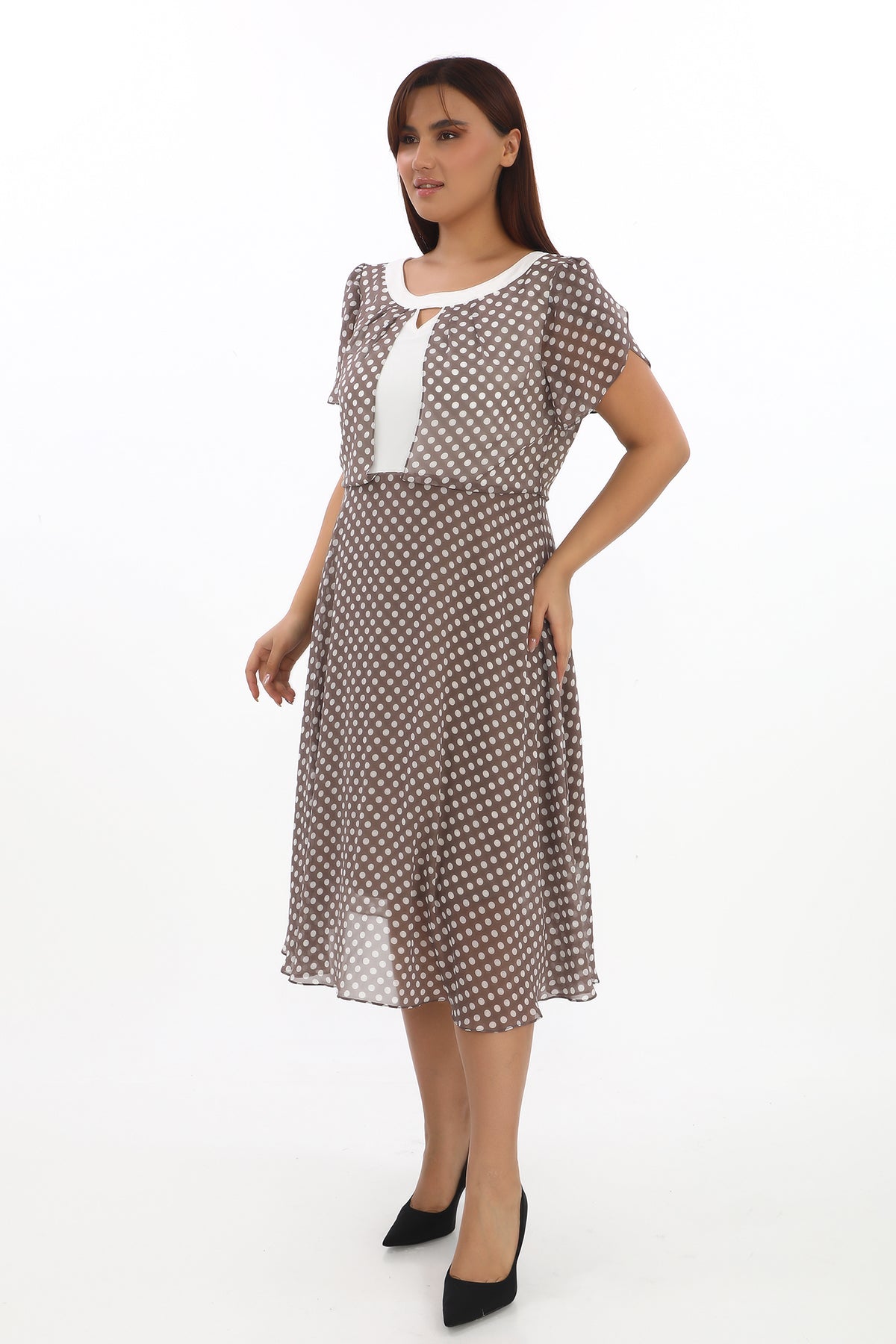 Renk: Kahve / Yeşil / Siyah / Lacivert Beden: 42–48 Ürün Açıklaması: Retro dokunuşları modern bir tarzla buluşturan bu puantiye desenli şifon elbise, yaz ve bahar...