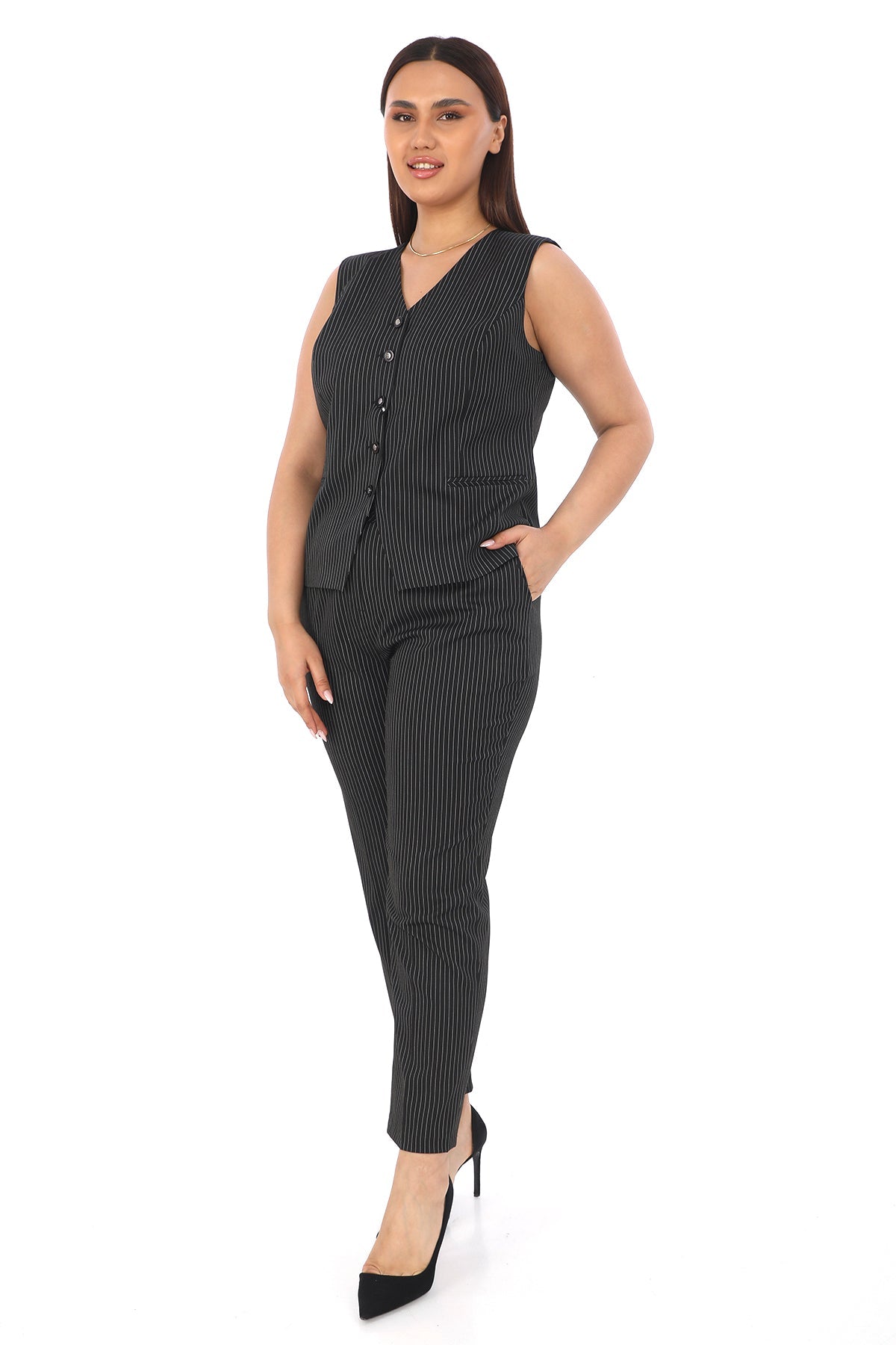 V Yaka Sıfır Kollu Yelek ve Kalem Pantolon Kadın Takım