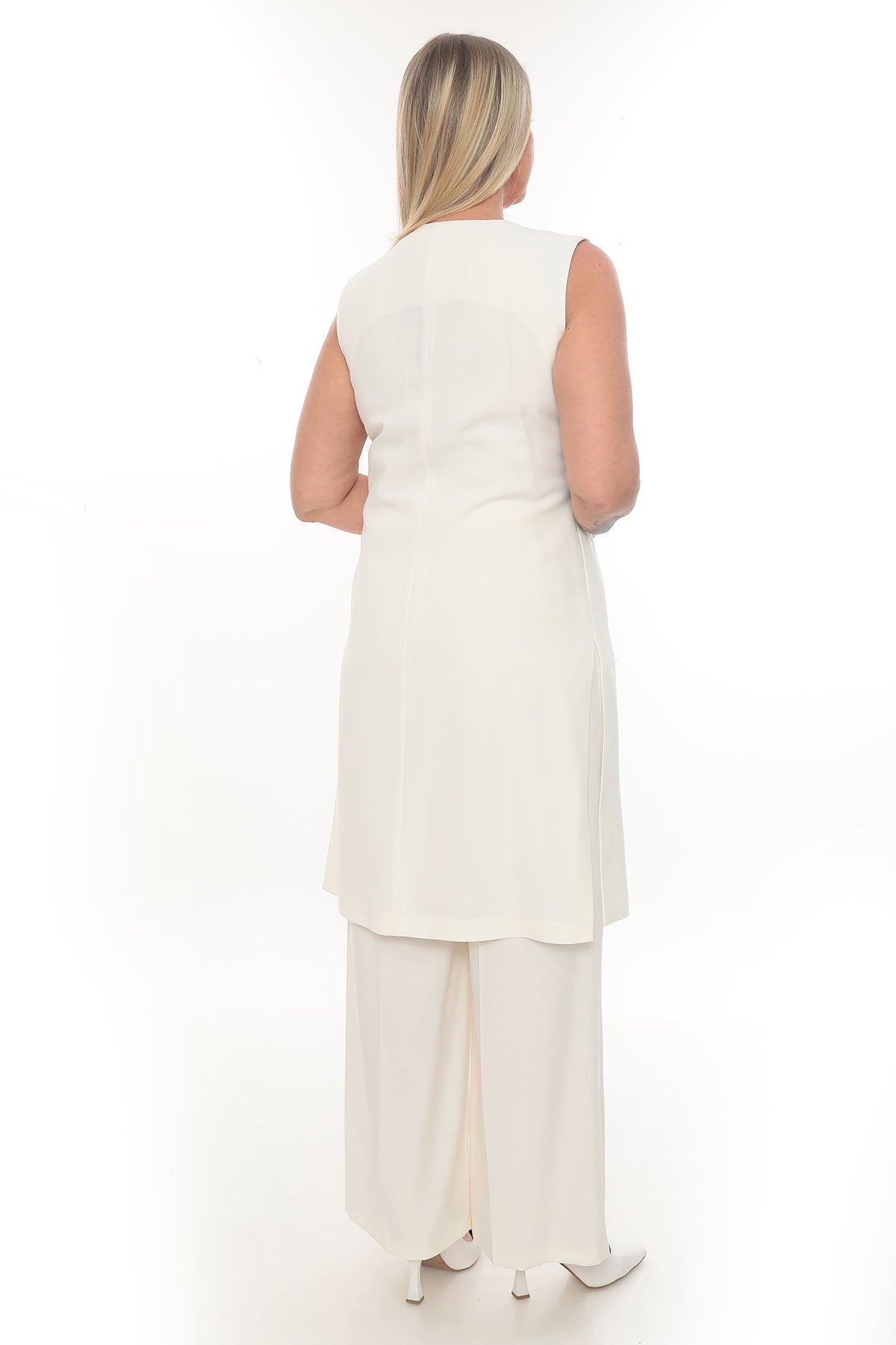 Bej ve Krem Renk Uzun Yelekli ve Pantolon Kadın Takım (40-46 Beden)
