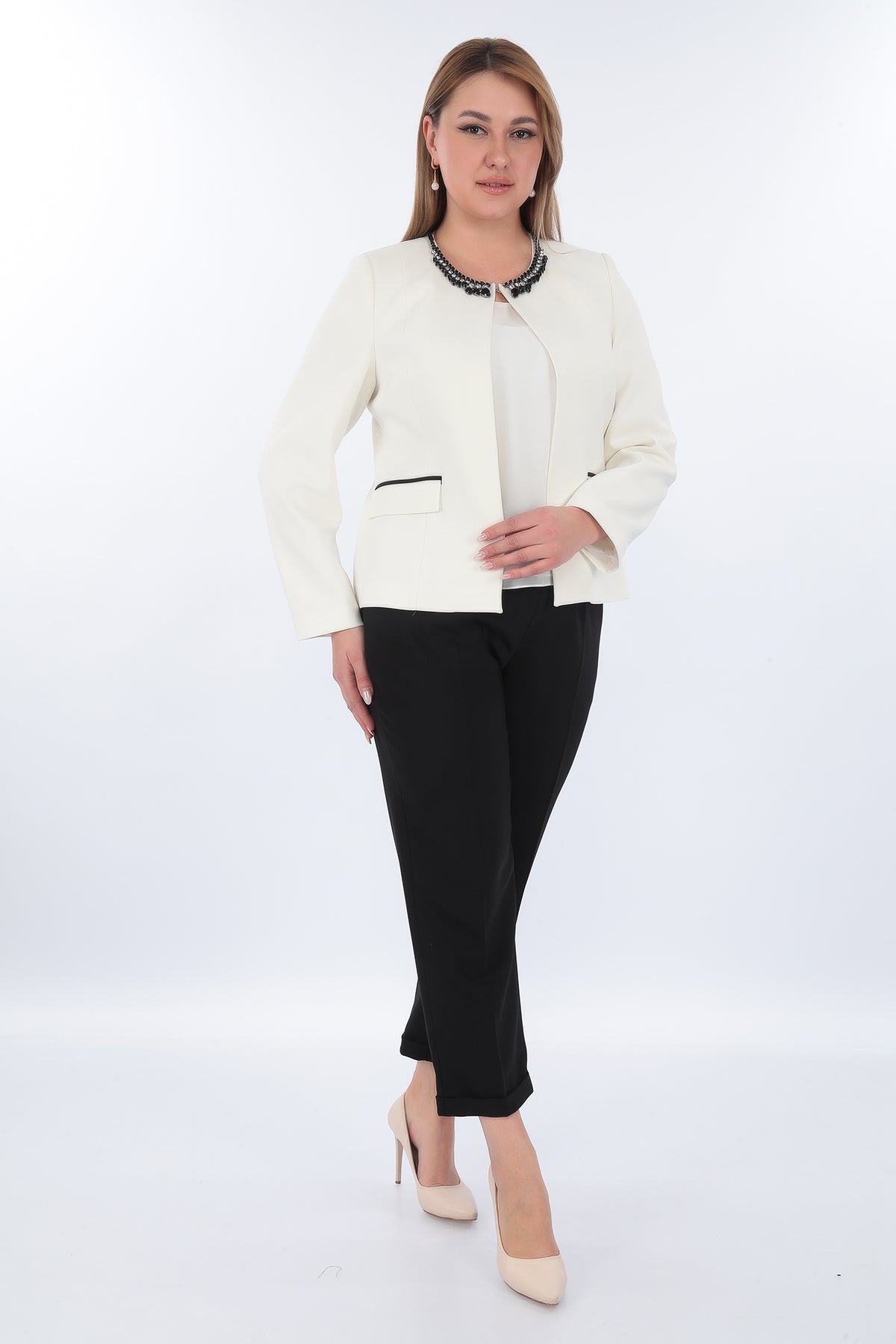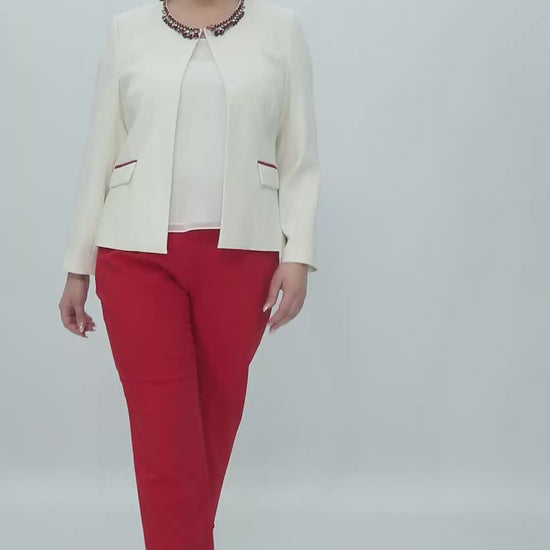 Offering both elegance and comfort, this women's jacket and trouser set is designed for women seeking elegance for special occasions, events, and business settings. Available in black, red, and navy blue, it complements any style. Its stone-detailed collar draws attention, and its simple yet elegant look makes a statement.