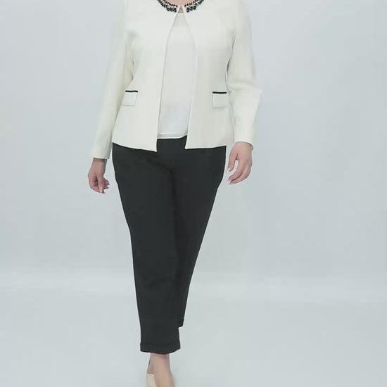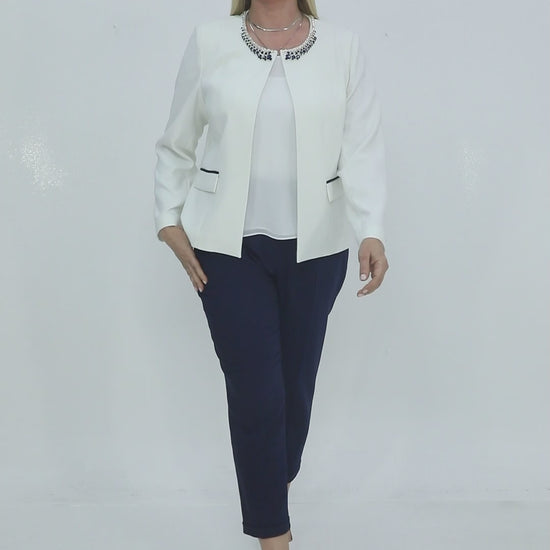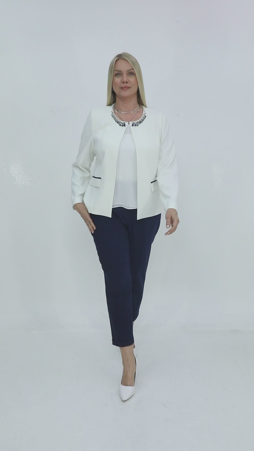 Jacket: Stone-embroidered collar detail, open front, modern cut