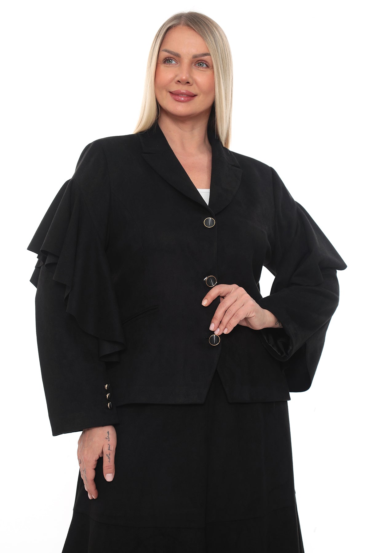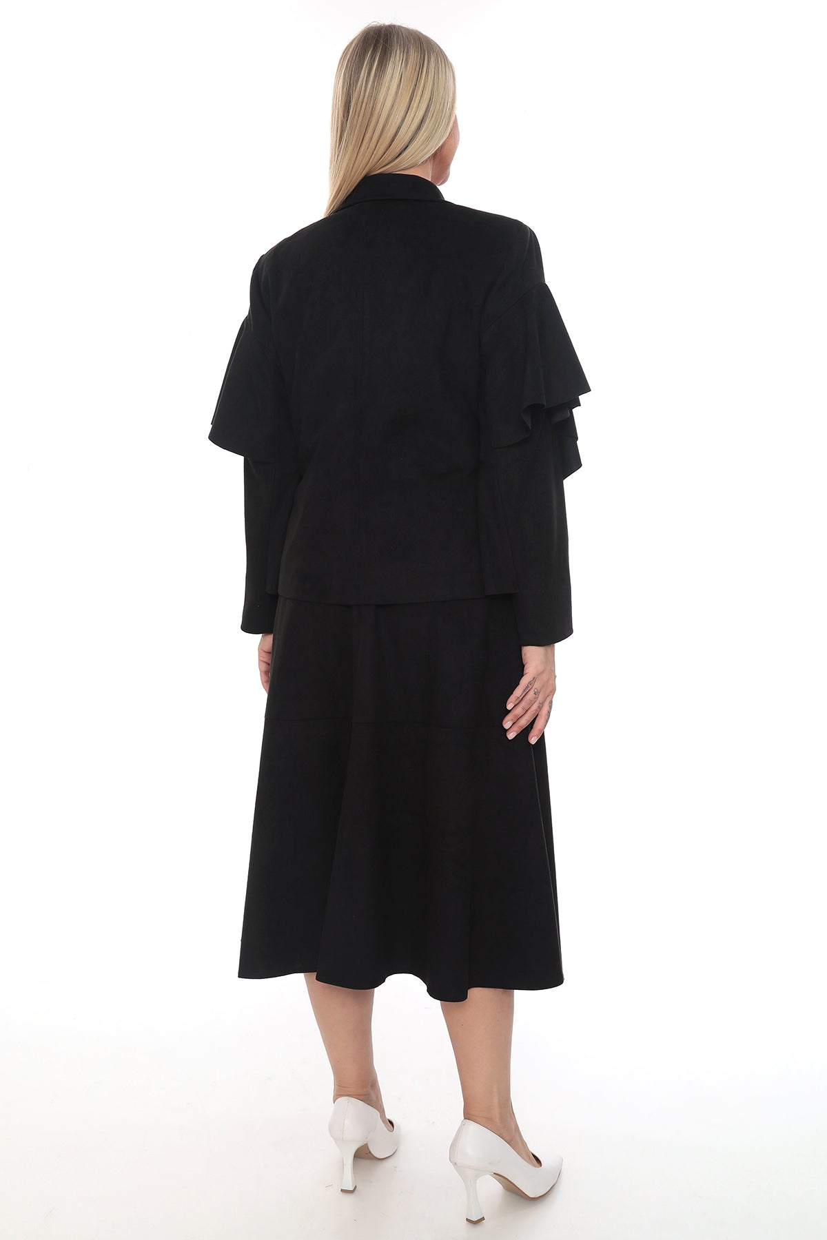 - Ceket: Volan kol detayı, astarlı, düğmeli ön kapama