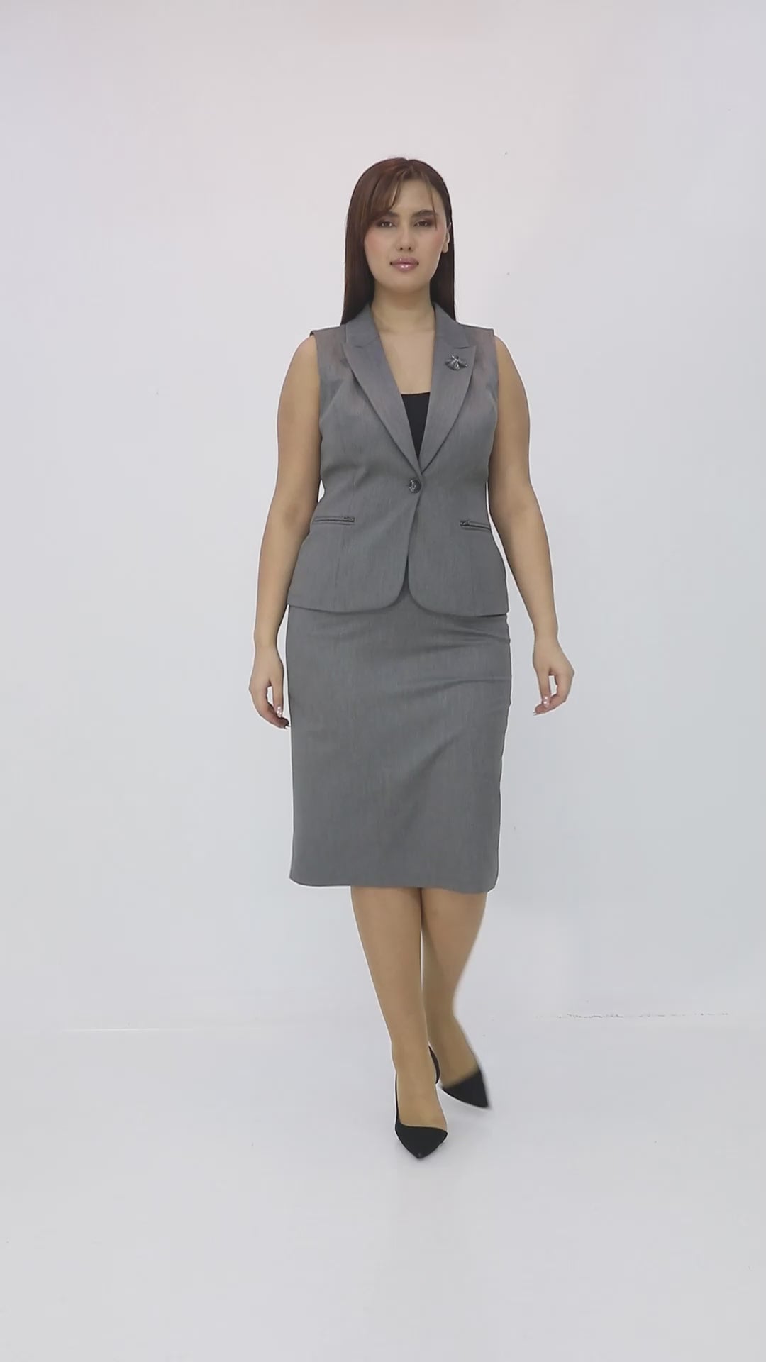 Combining classic elegance with modern lines, this women's vest-skirt suit is an ideal choice for office and business outfits. Its elegant cut, high-quality fabric, and timeless color guarantee a professional look. It's among the most popular women's suits for wholesale.