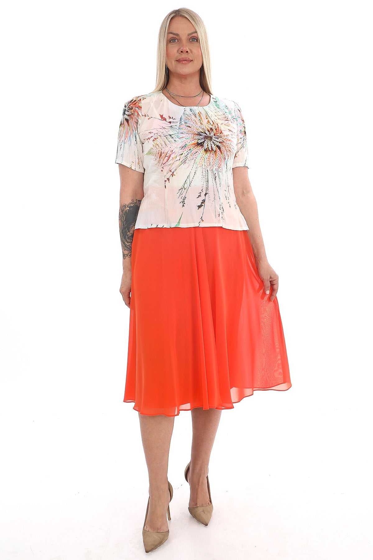 Çiçek Desenli Bluz & Turuncu Şifon Etek Takımı