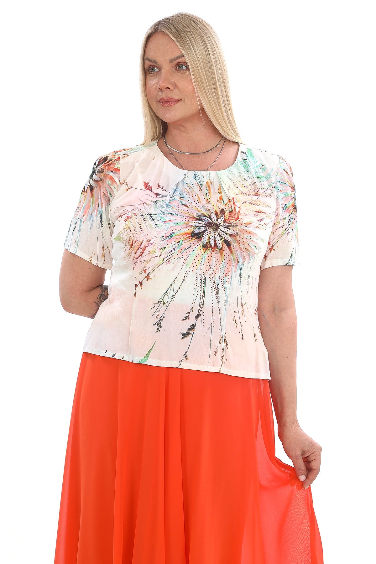 Bluz Rengi: Beyaz zemin üzerine renkli çiçek baskı