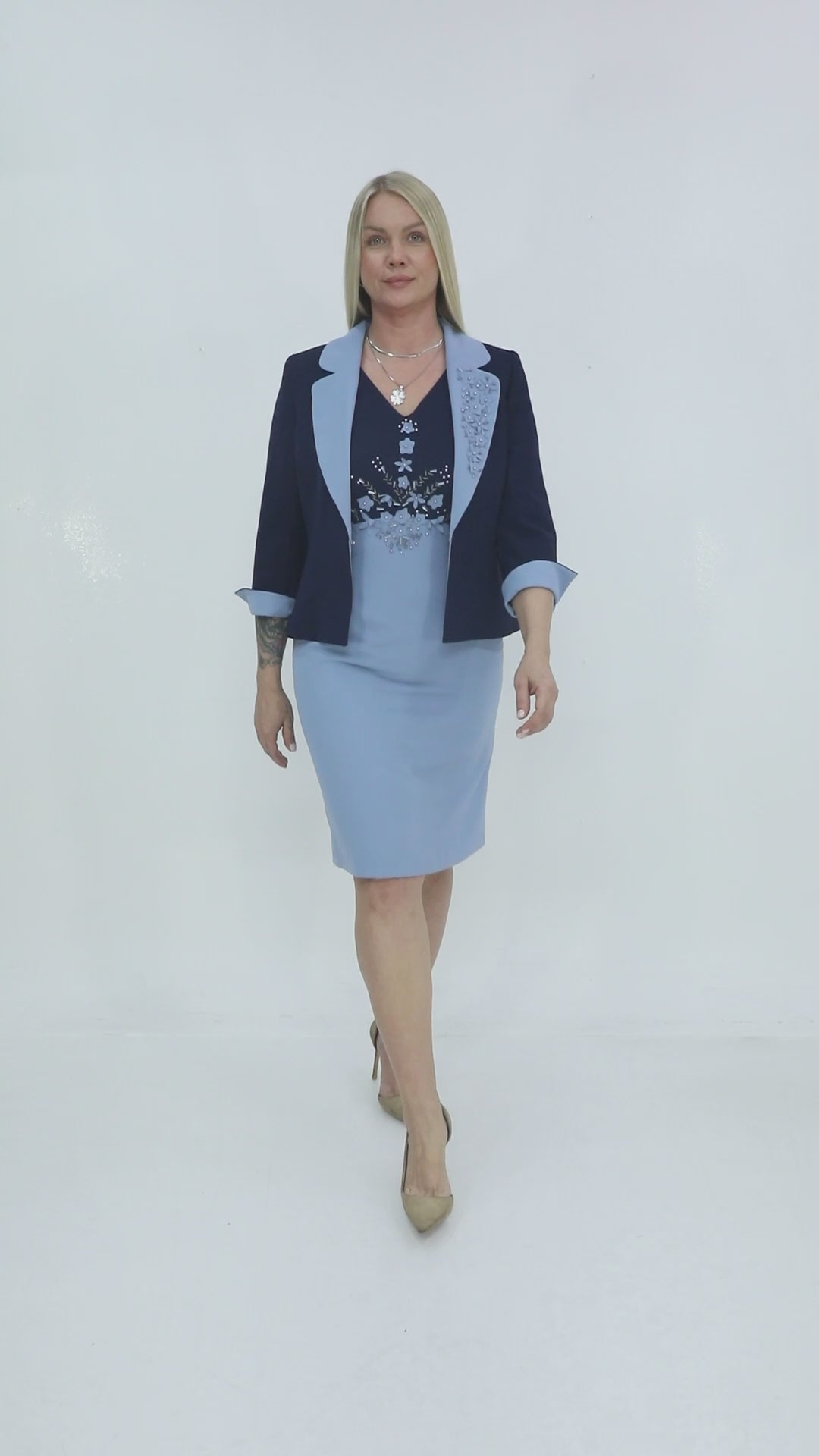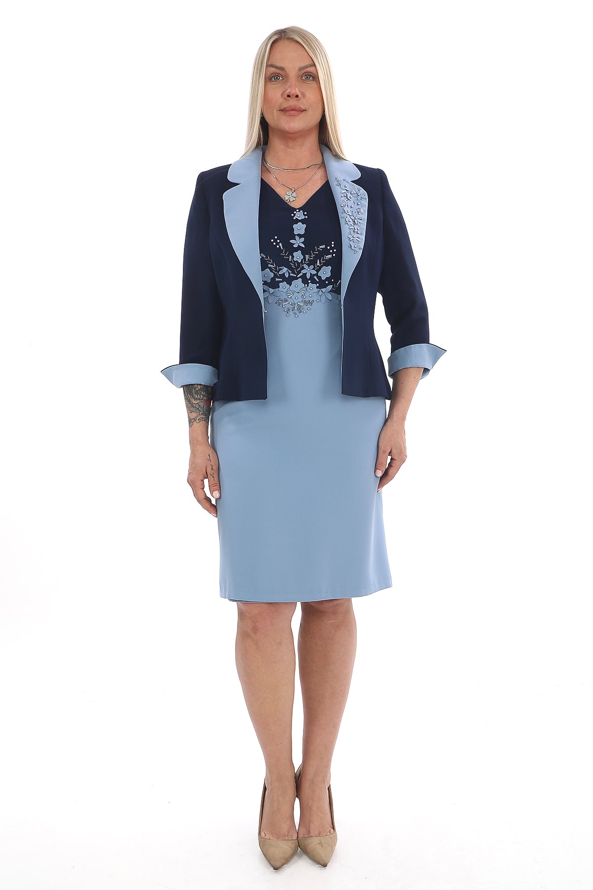Modern şıklığı zarif detaylarla buluşturan bu ikili takım, çiçek desenli elbisesi ve kontrast yakalı ceketiyle dikkat çekiyor. Özel günlerde ve davetlerde fark yaratmak isteyen kadınlar için şık ve konforlu bir alternatif sunar.