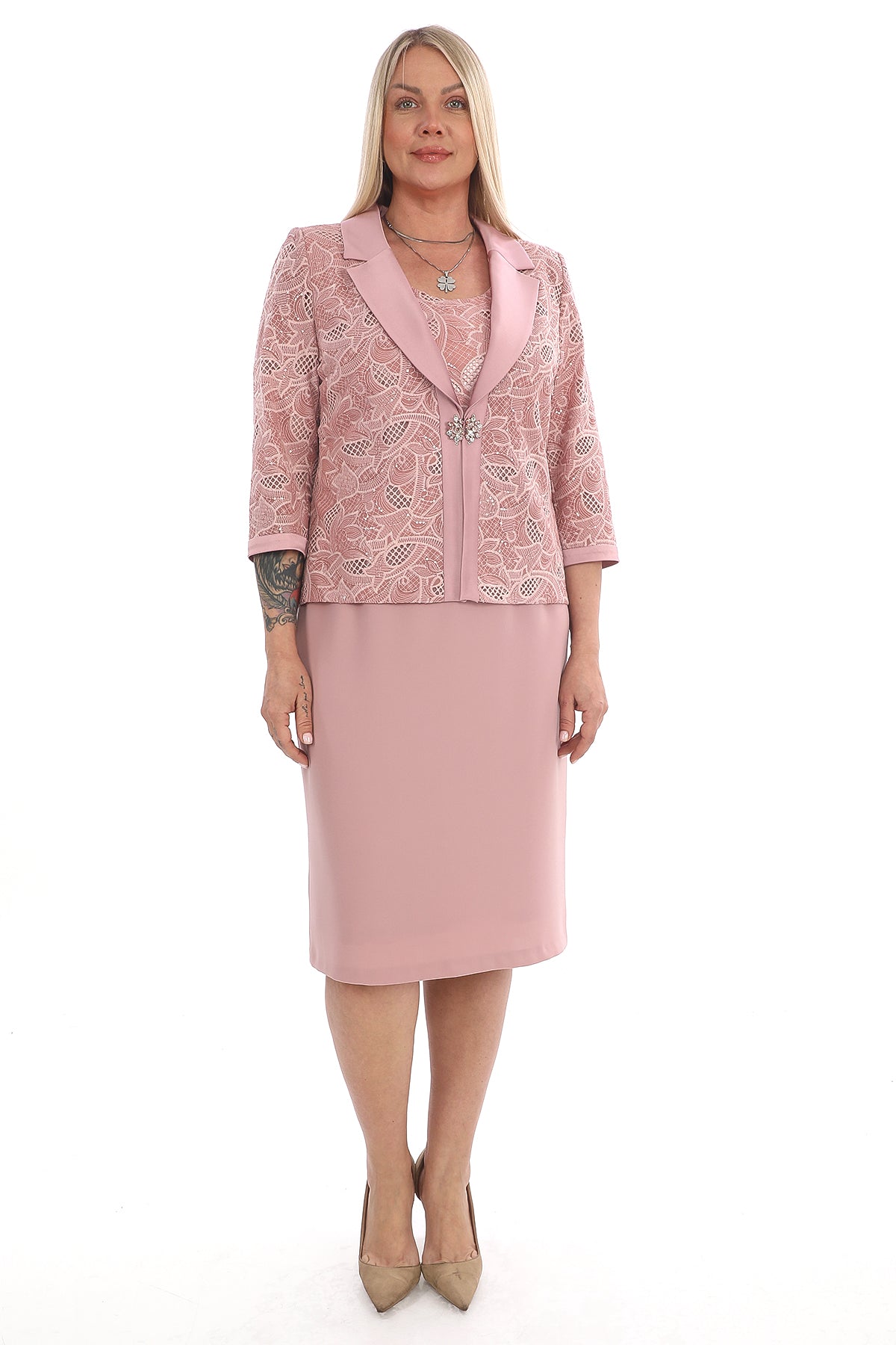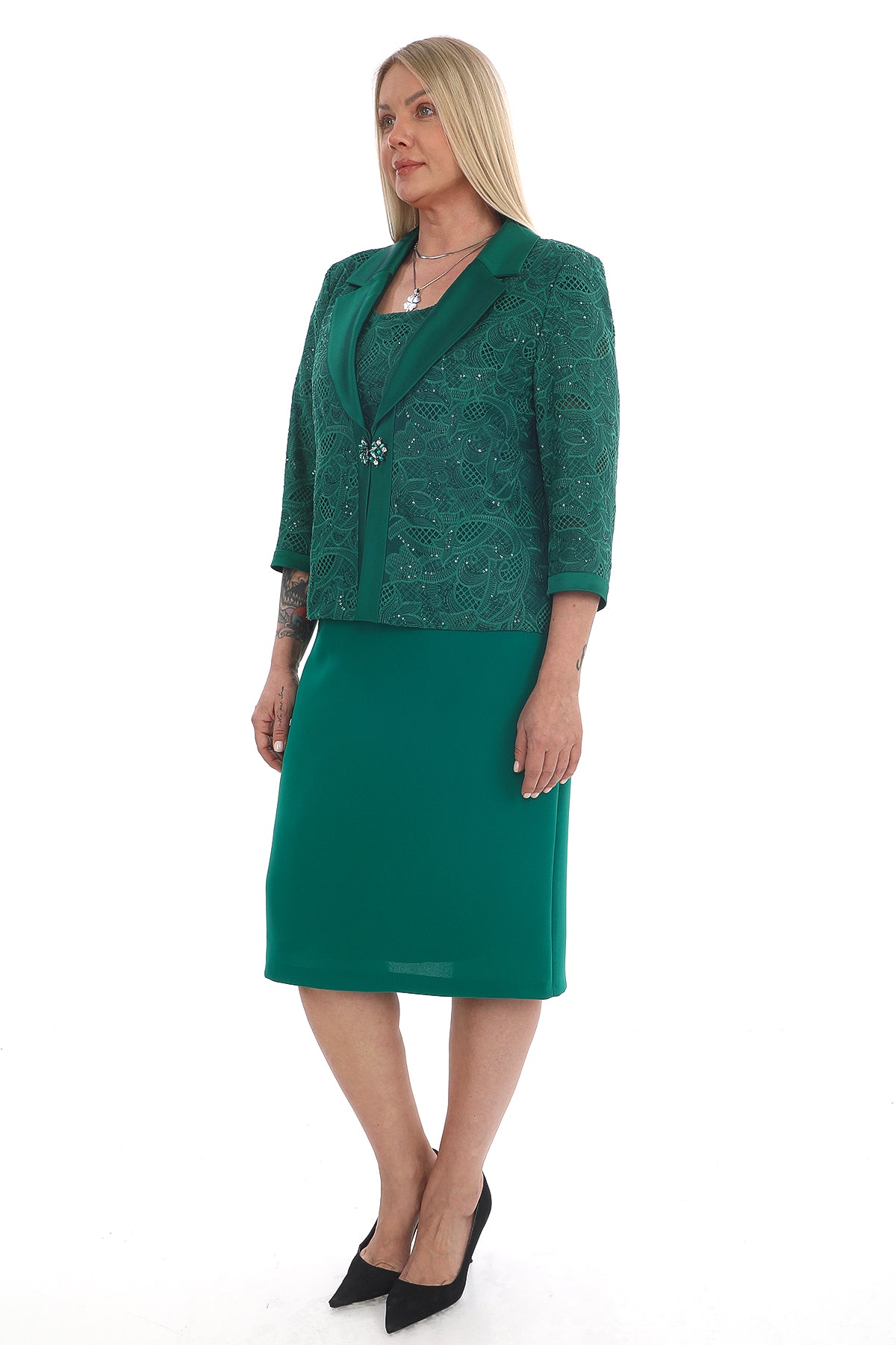Dantel Detaylı Elbise ve Ceket Takım