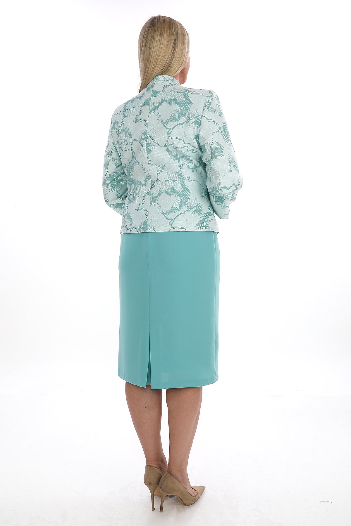 Kumaş: Akıcı ve dökümlü elbise kumaşı + jakarlı desenli ceket kumaşı