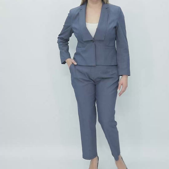 Kot Kumaş Ceket Pantolon İkili Kadın Takım