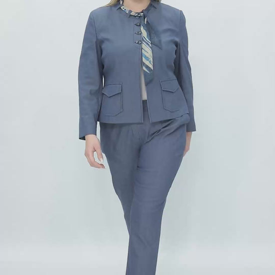İnce Kot Kumaş Uzun Kollu Ceket ve Pantolon Takım