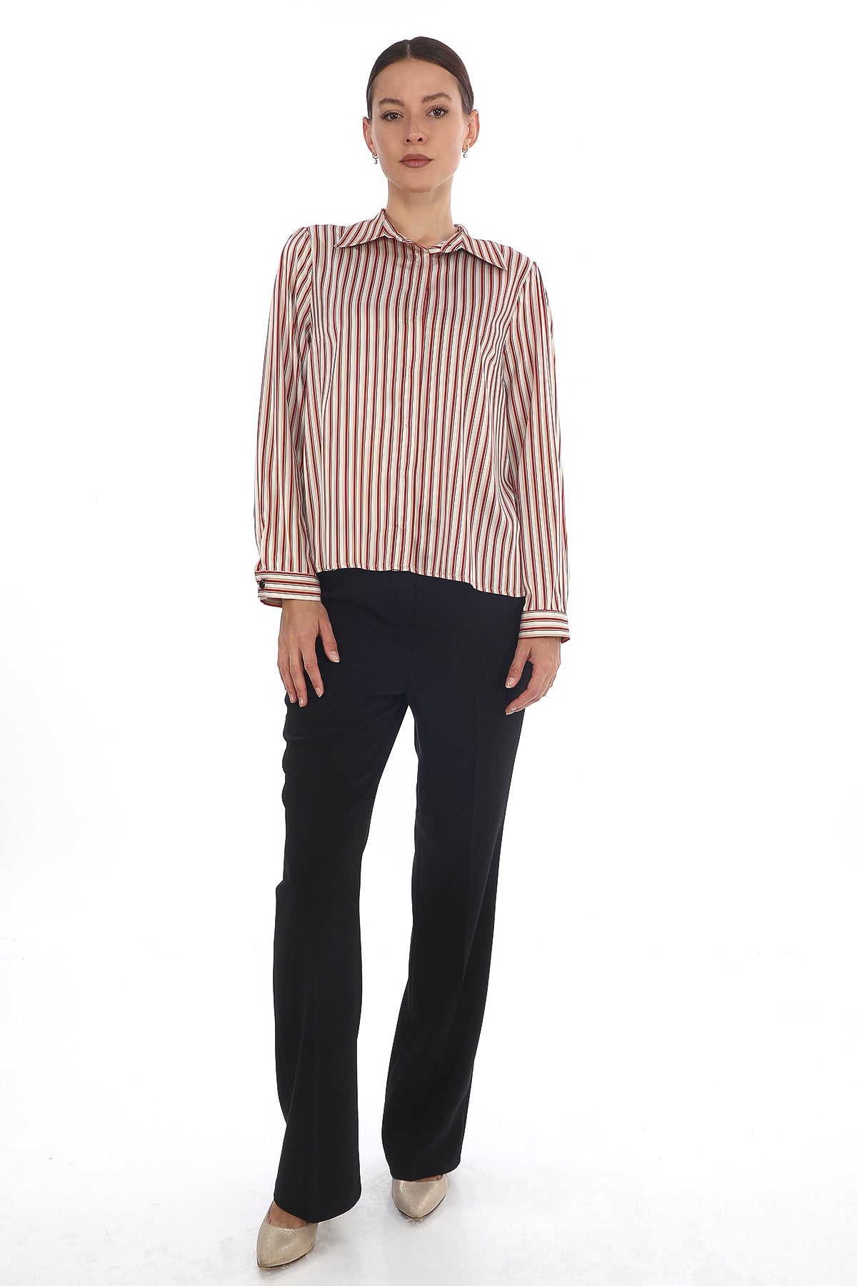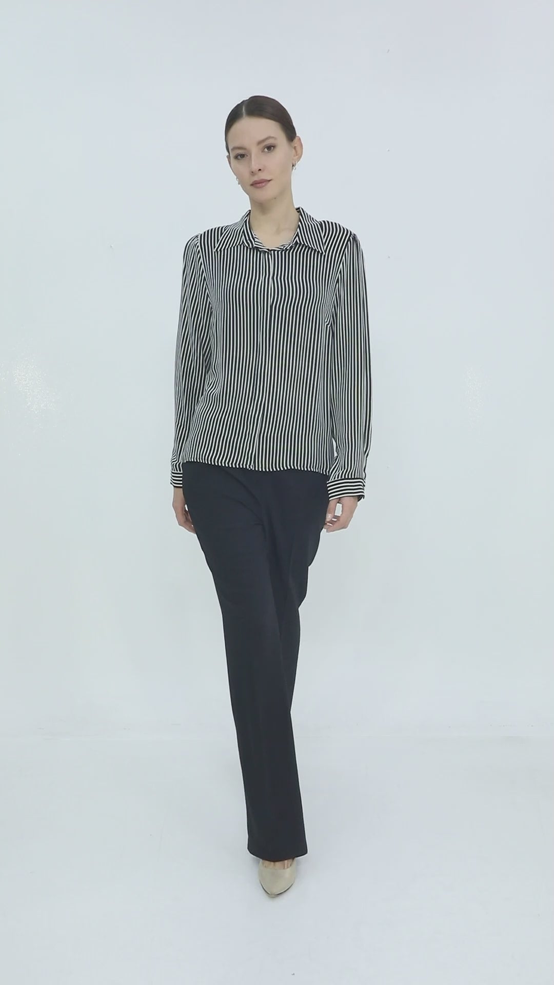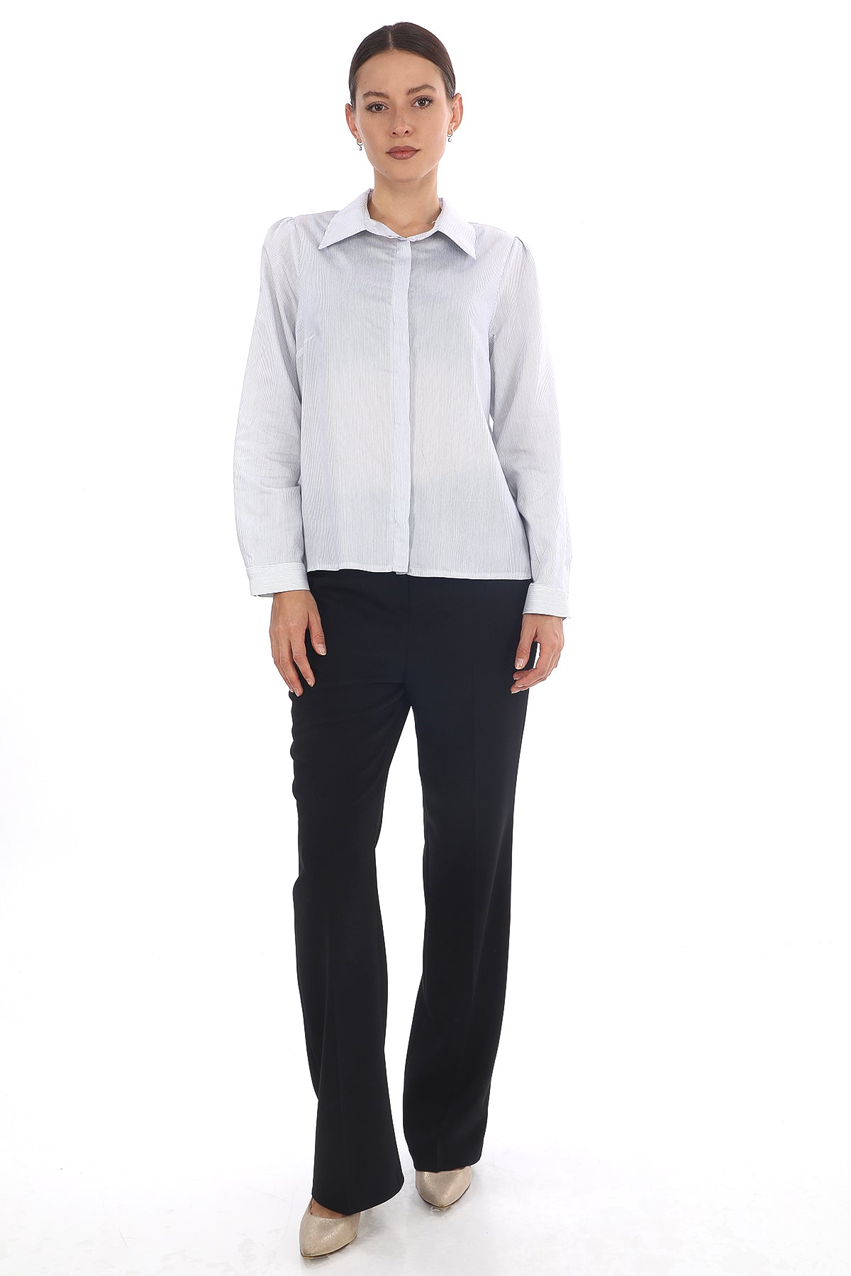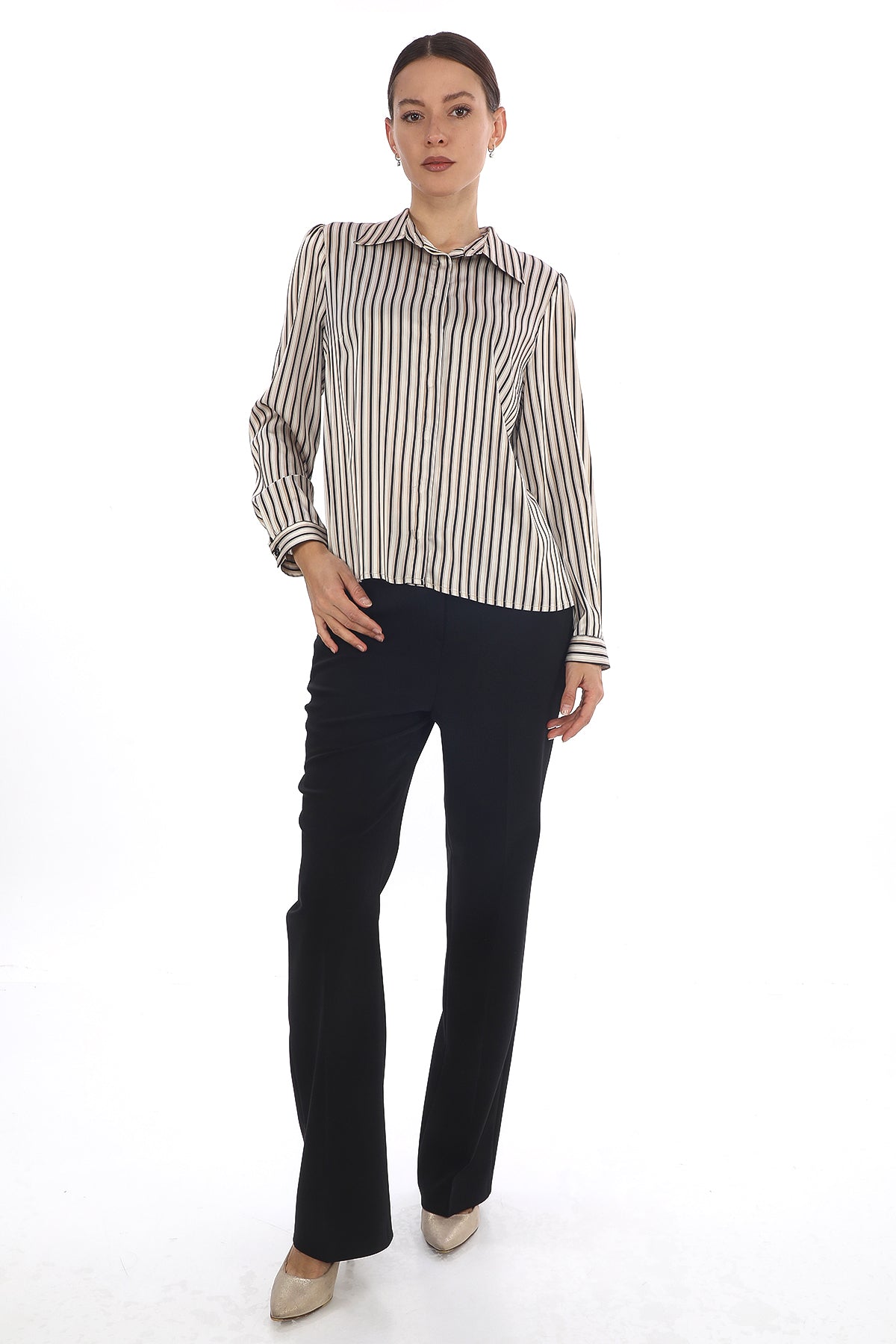 Zarif ve şık tasarımıyla günlük kullanım ve ofis kombinleri için ideal olan kadın klasik bluz, gardırobunuzun vazgeçilmez parçalarından biri olacak. İnce çizgili deseni ve düz kesimi sayesinde hem modern hem de zamansız bir stil sunar.