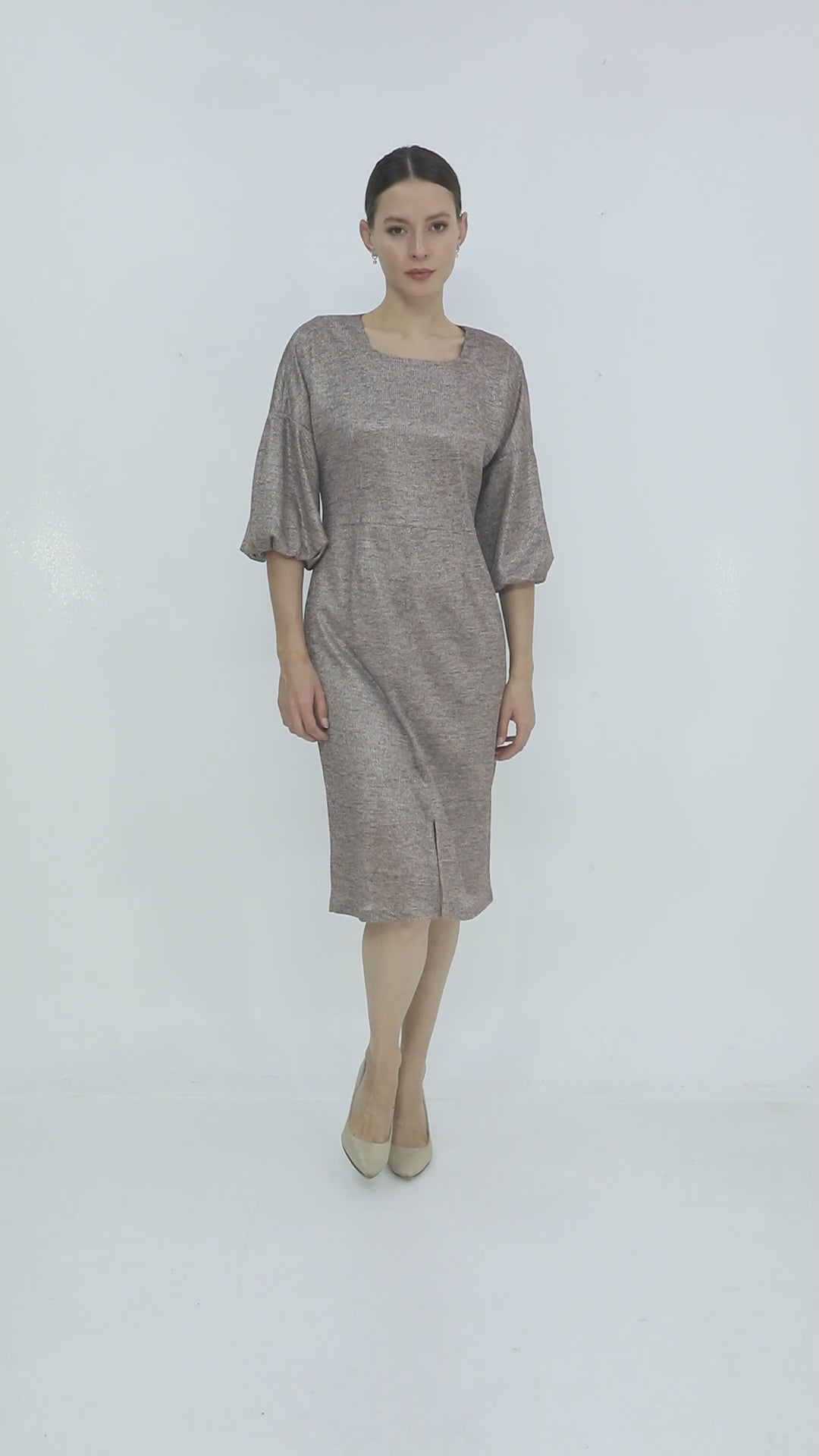 Modern tasarımıyla günlük hayatta ve özel davetlerde rahatlıkla tercih edilebilecek şık diz boyu elbise. Rahat kalıbı, balon kol detayı ve zarif görünümüyle hem konforu hem de şıklığı bir arada sunar.