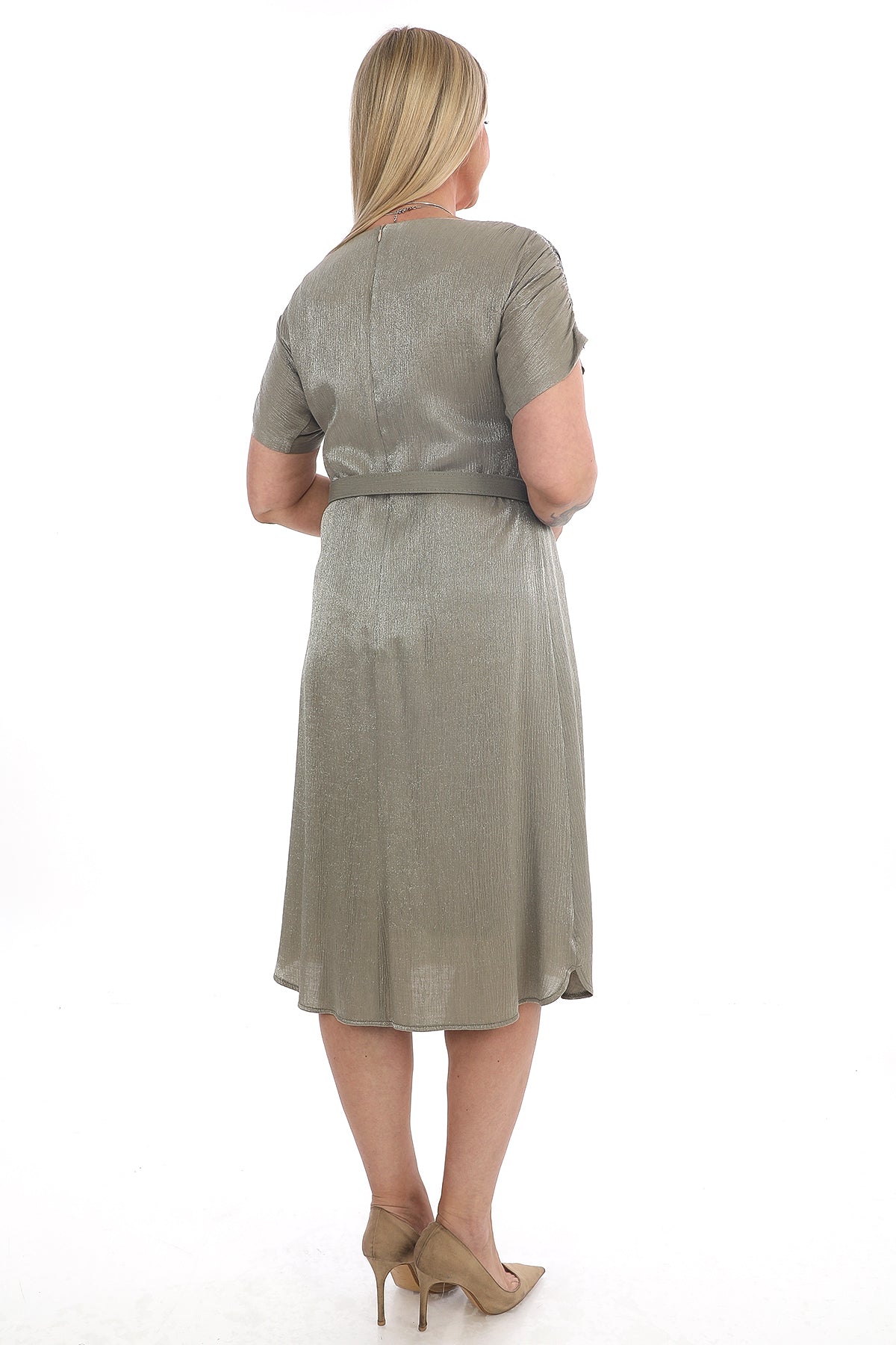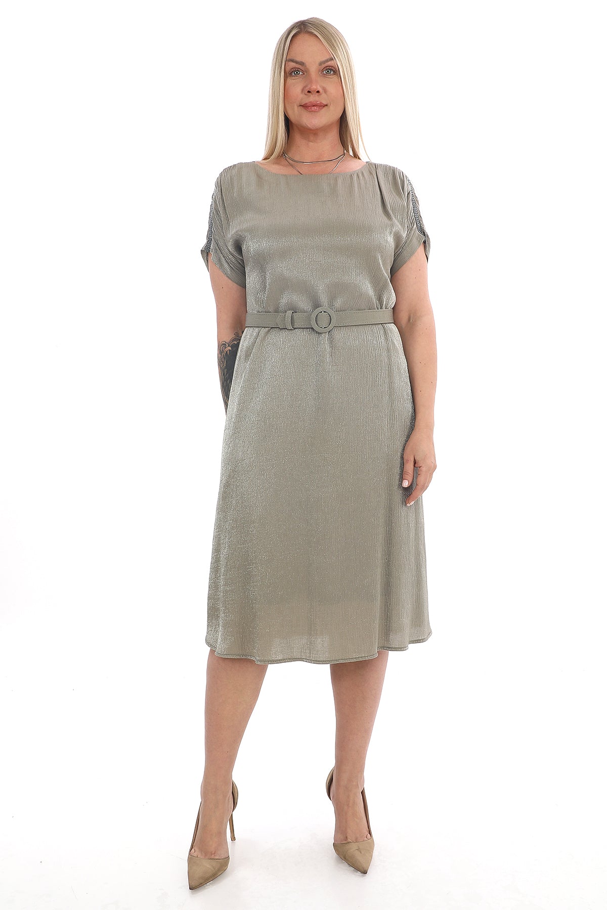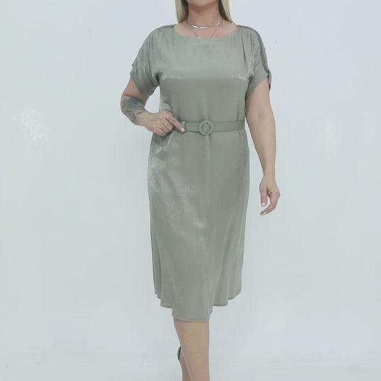 Şık ve feminen çizgilere sahip bu elbise, bel kısmındaki kemer detayı ile zarafeti ön plana çıkarır. Akıcı kumaşı sayesinde rahat ve dökümlü bir duruş sunar.
