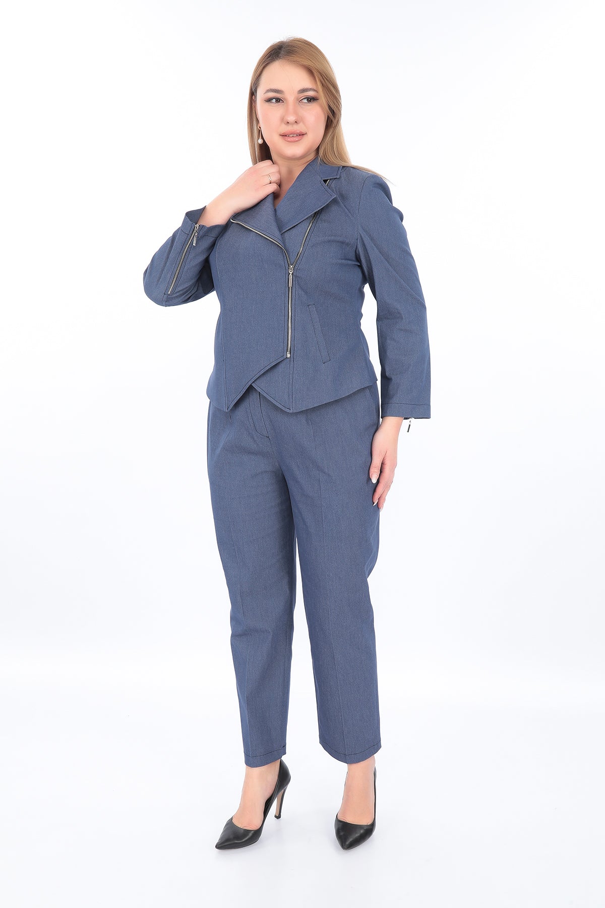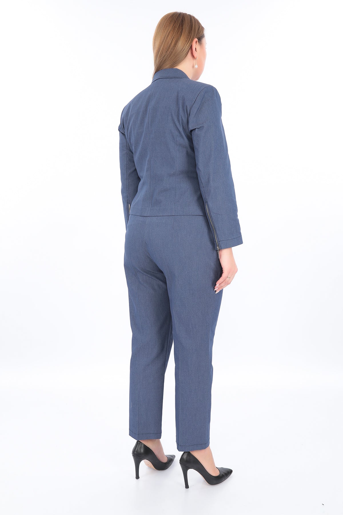 Kot Kumaş Fermuarlı Ceket & Pantolon Takım