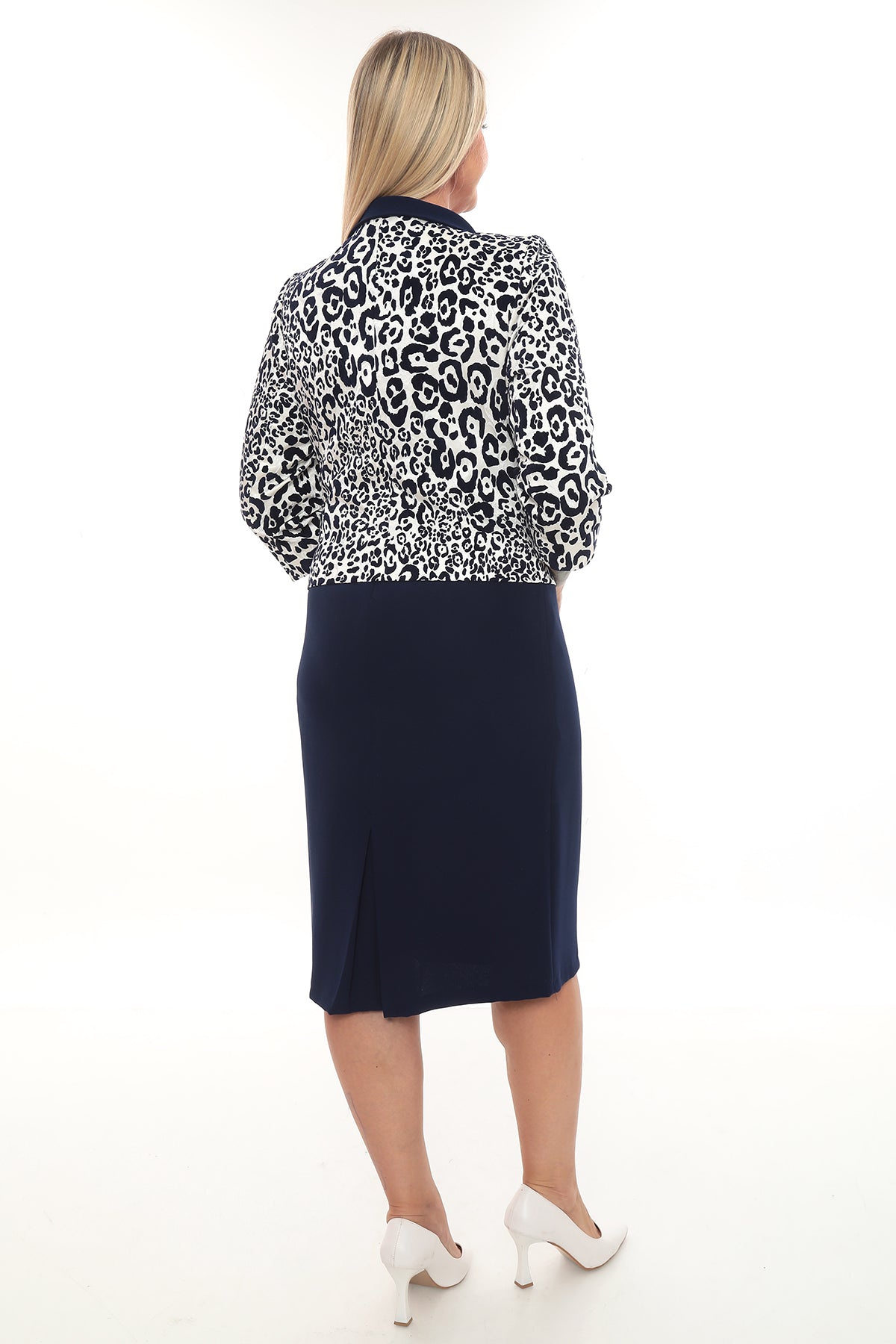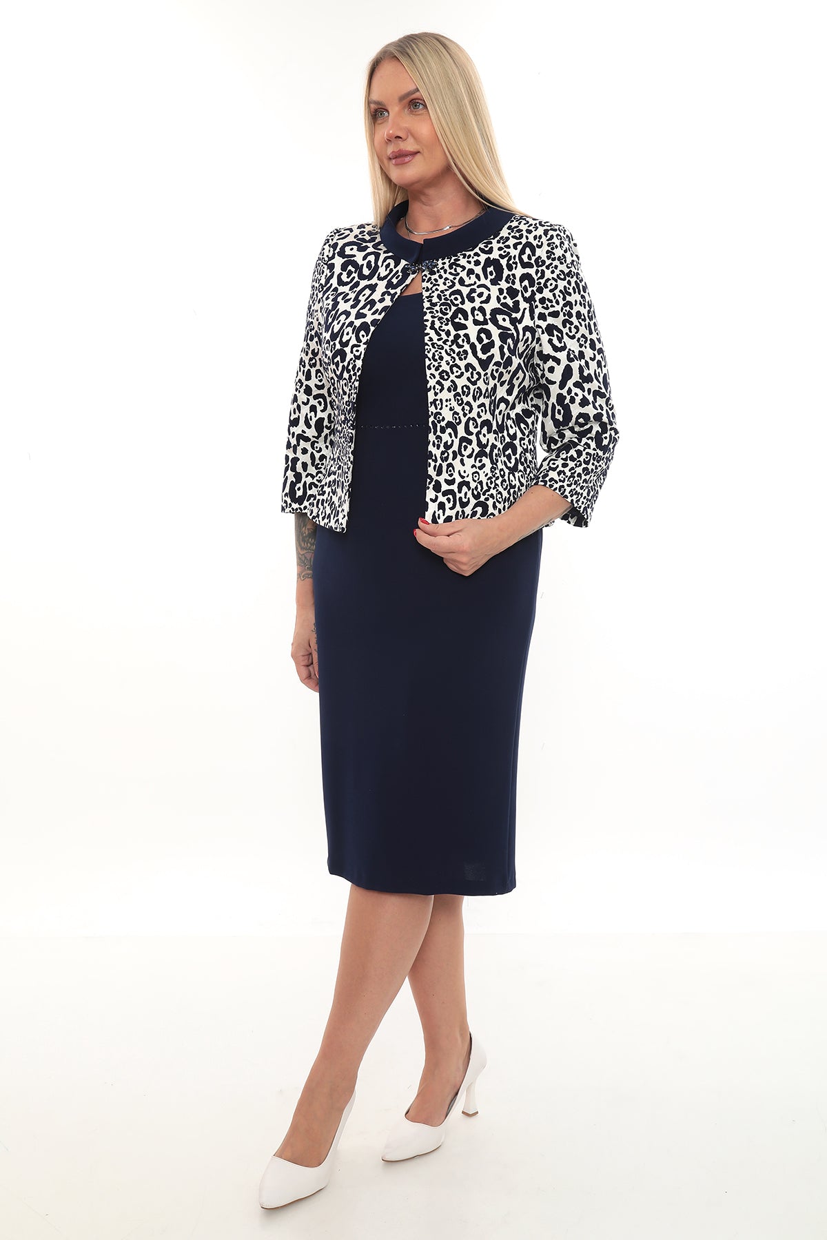 Lacivert Elbise ve Leopar Desenli Ceket Takım
