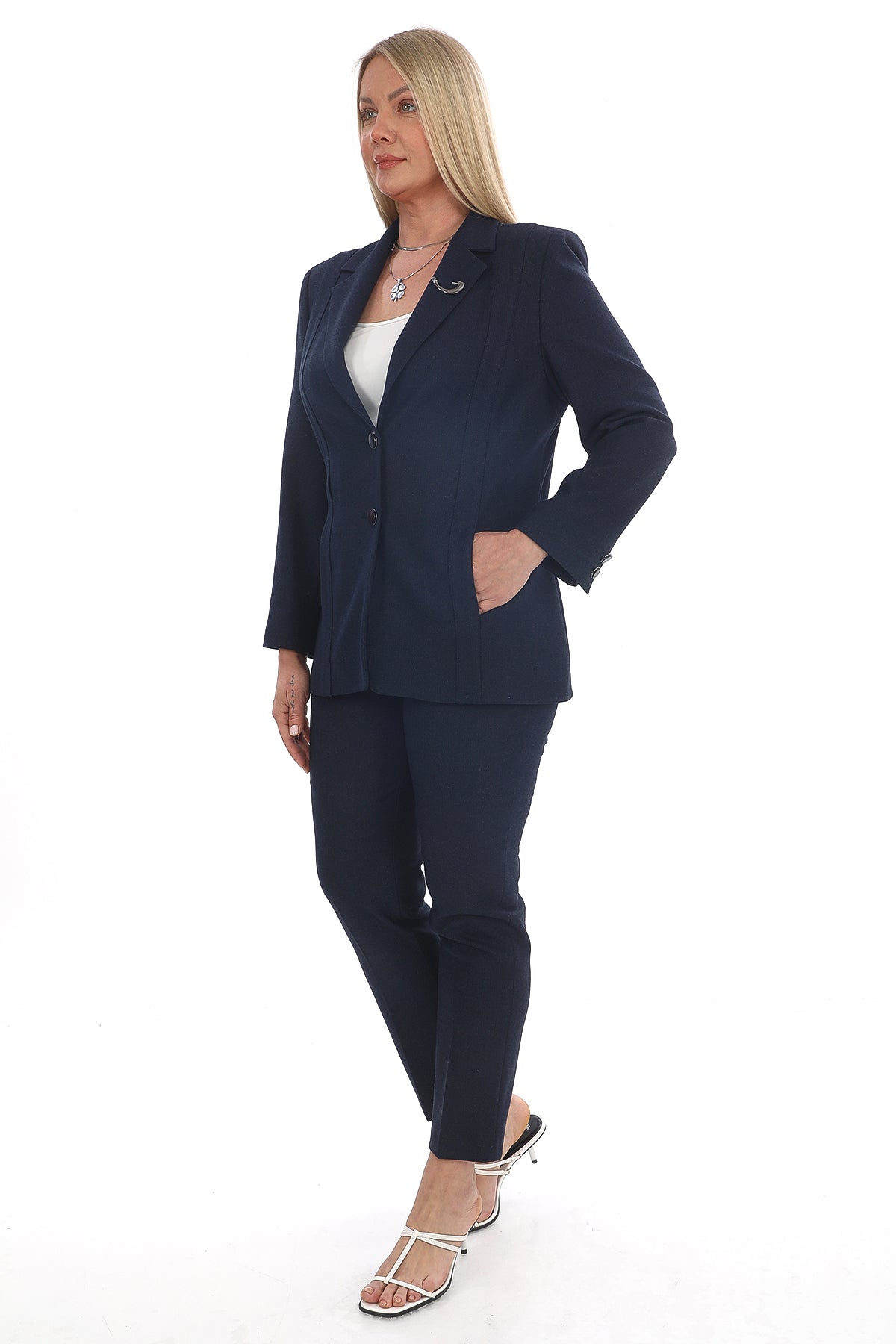 Lacivert Klasik Kadın Pantolon-Ceket Takım