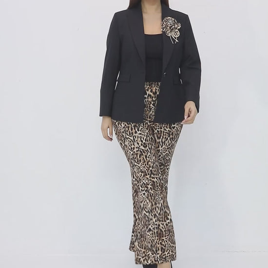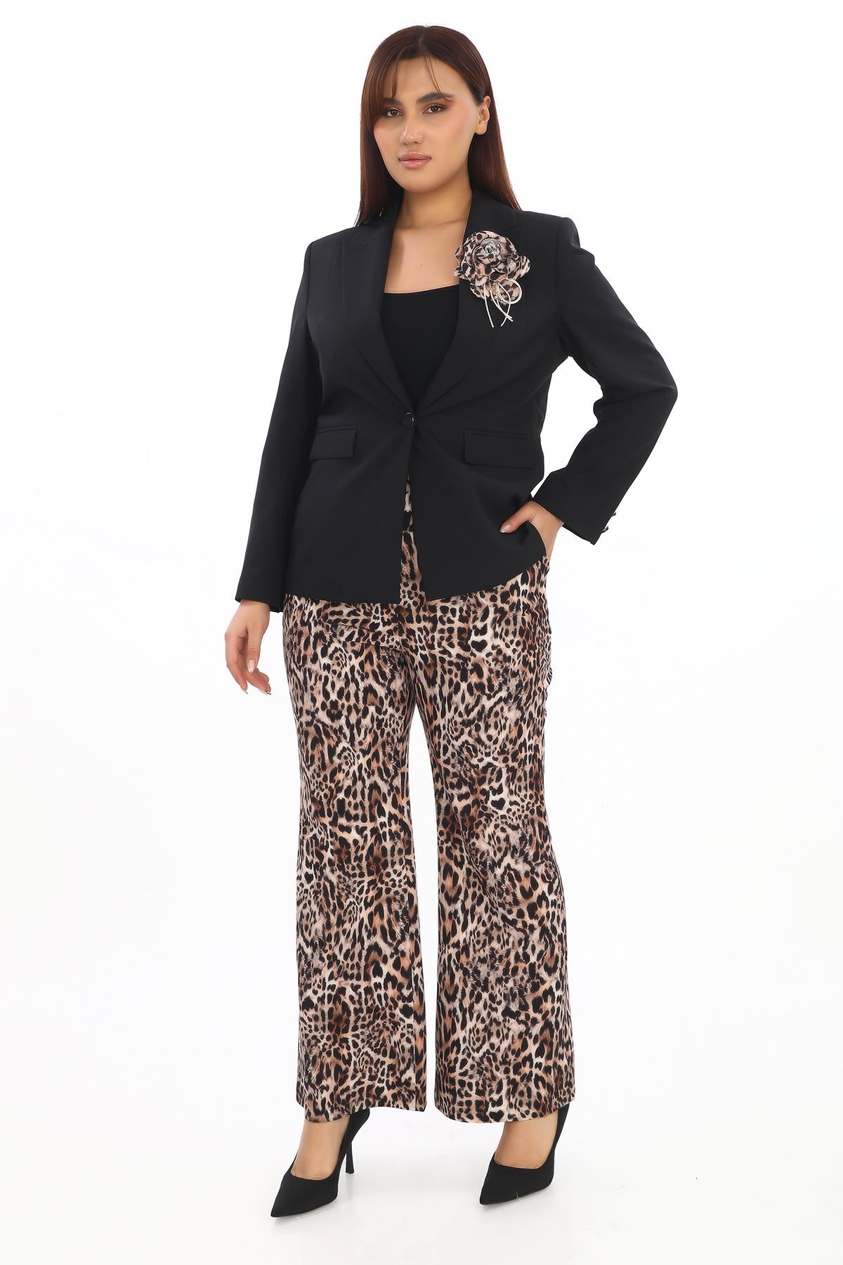 leopar desenli, kadın ceket ,takım, büyük beden , ofis şıklığı, siyah blazer, leopar pantolon, kadın klasik takım, toptan kadın giyim, moda takım elbise#