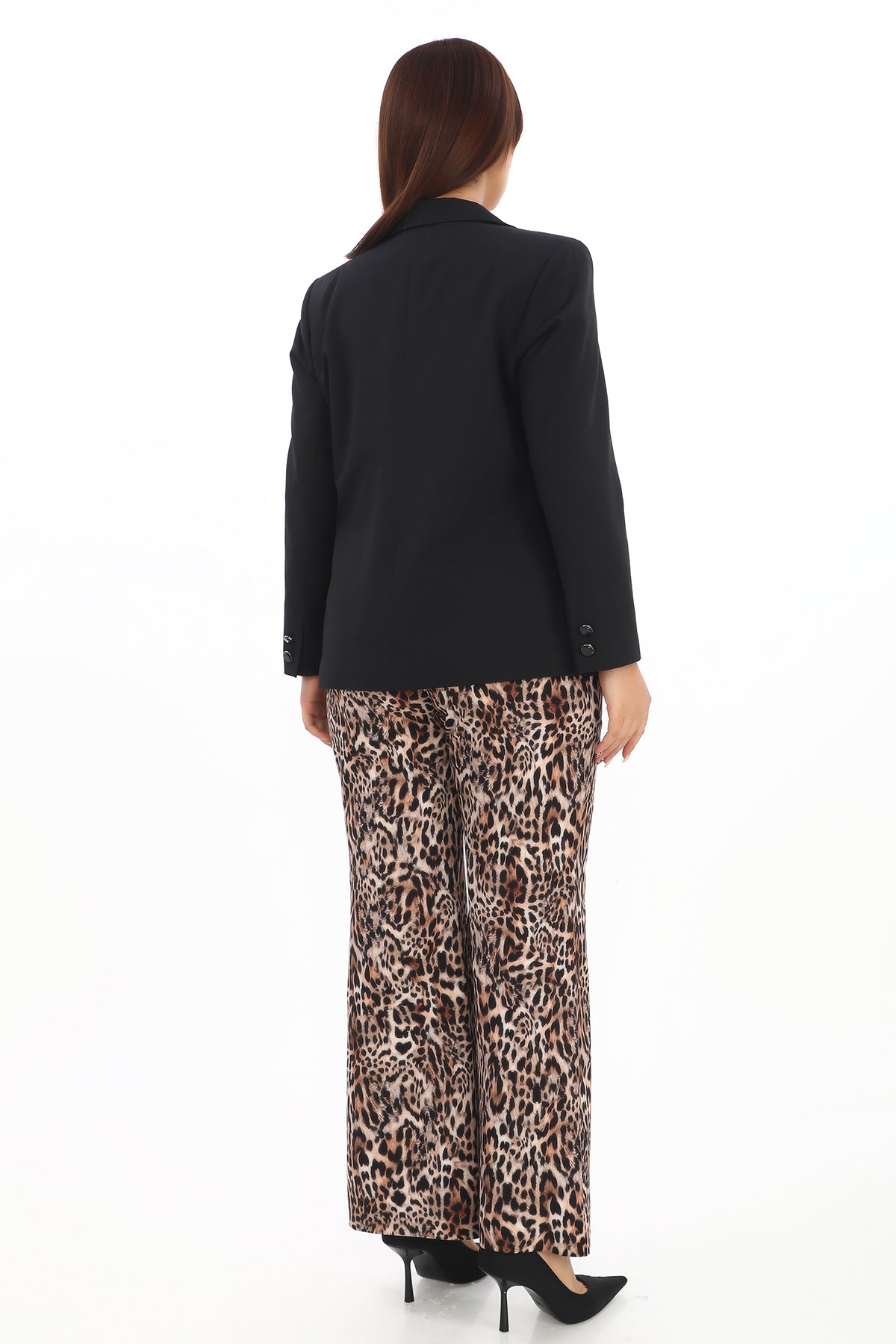 Leopar Desenli Pantolonlu Kadın Ceket Takım