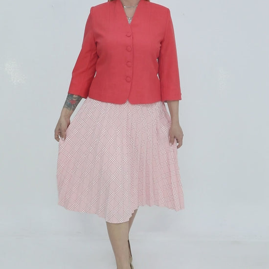 Mercan Renk Ceketli Pileli Etek Takım