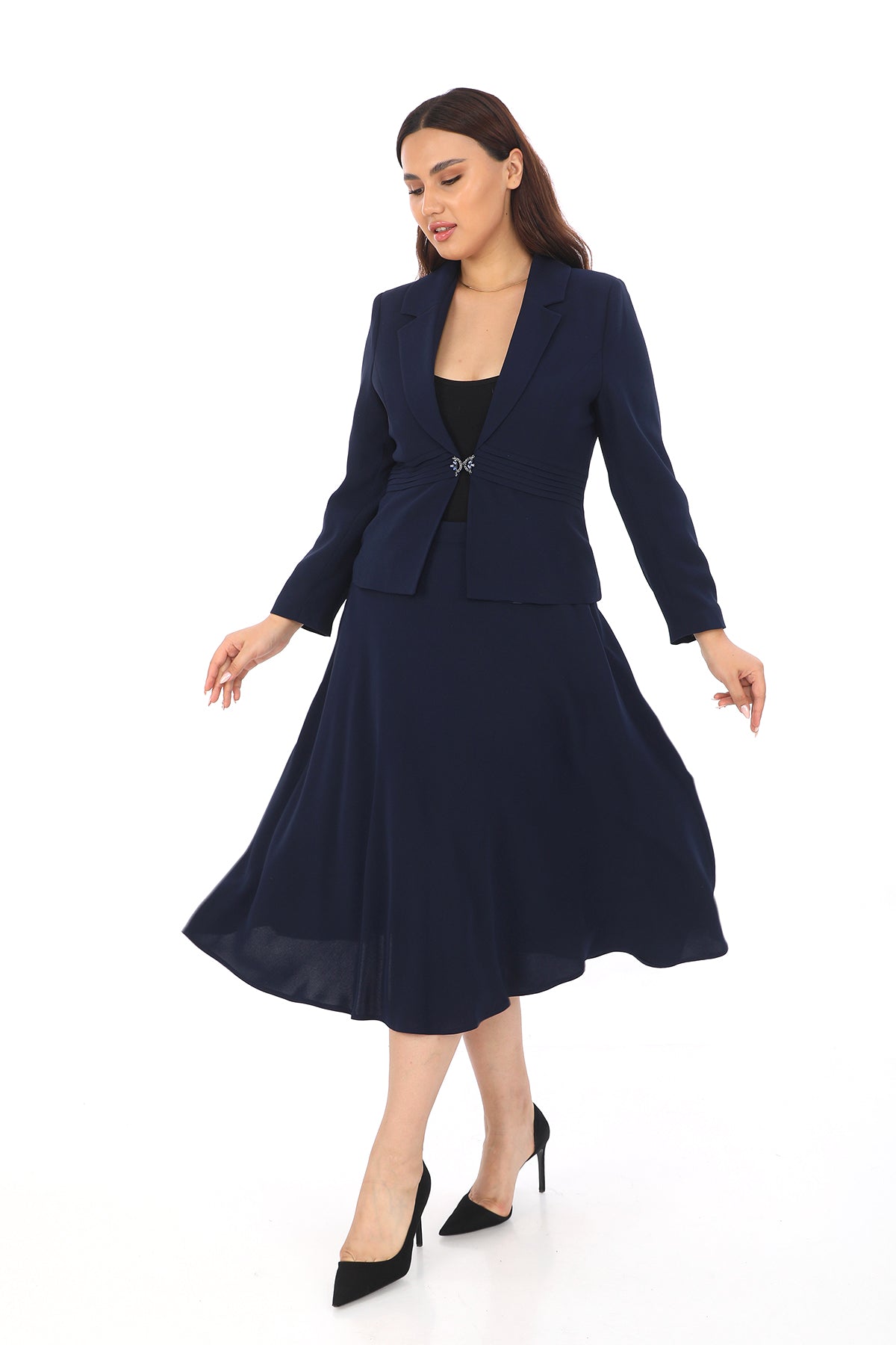 Önden Agraflı Hakim Yaka Ceket ve Uzun Kloş Etek