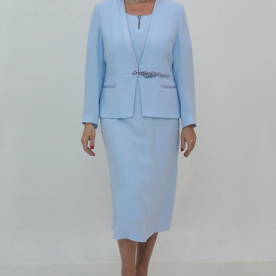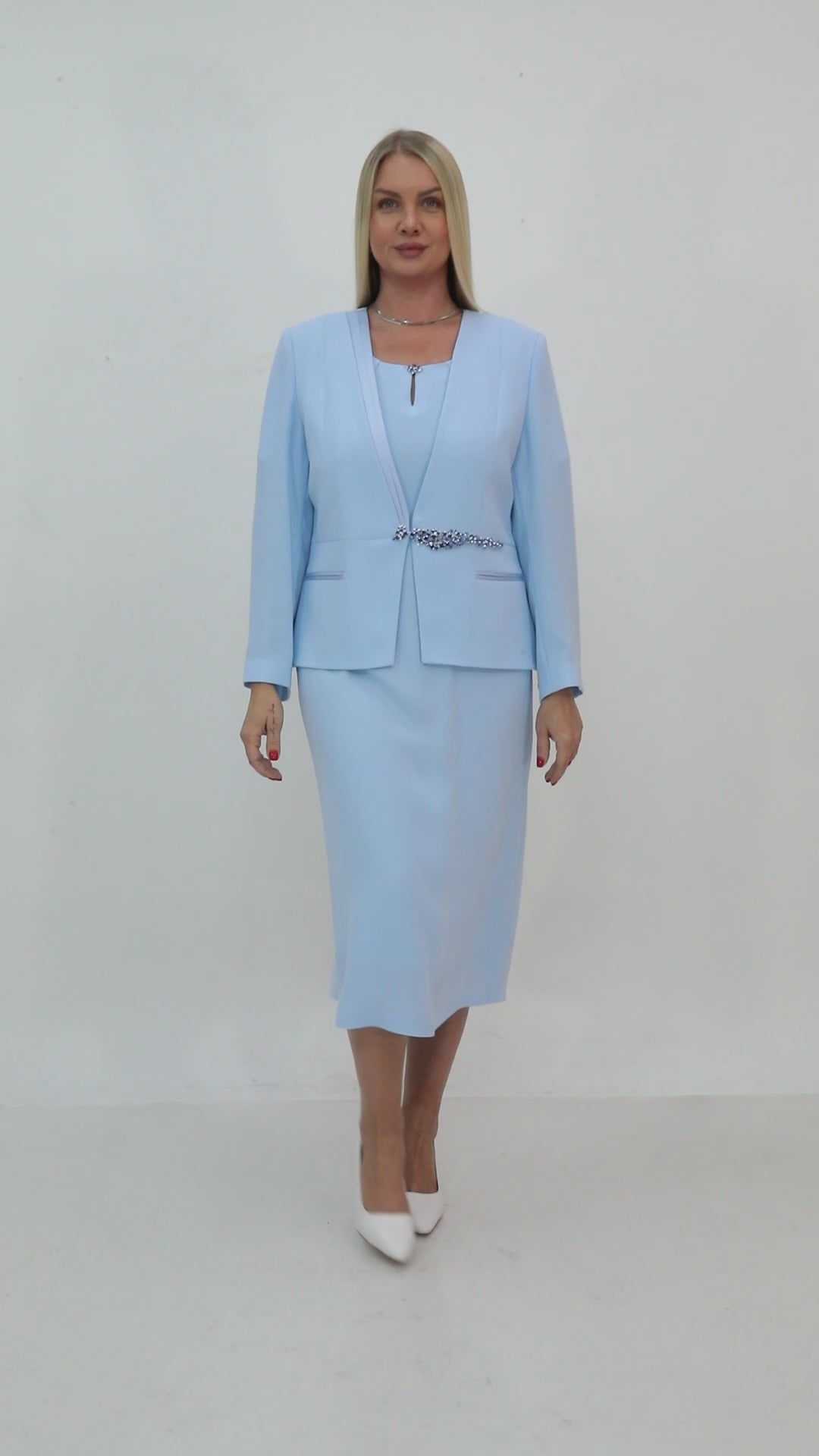 Zarif ve sofistike çizgisiyle öne çıkan bebe mavi ceket elbise takımı, özel günlerin vazgeçilmez tercihlerinden biridir. Modern kesimi, taş işlemeli şık detayı ve pastel tonu sayesinde hem genç hem de orta yaş kadınlara hitap eder.