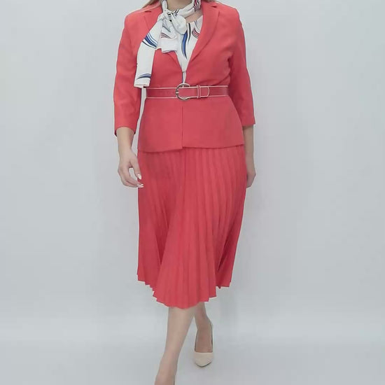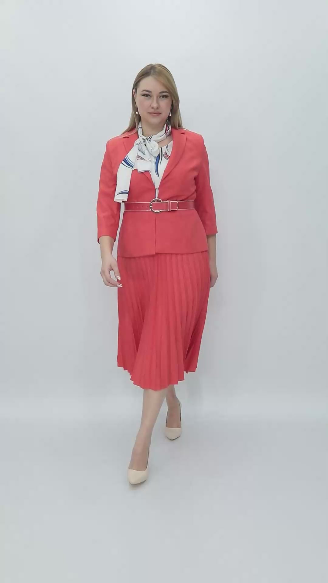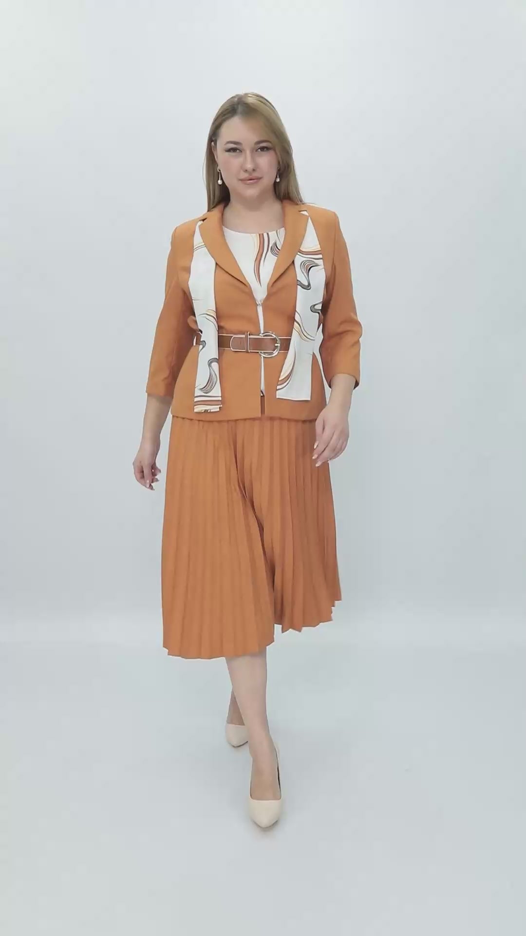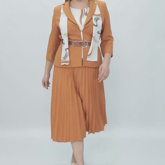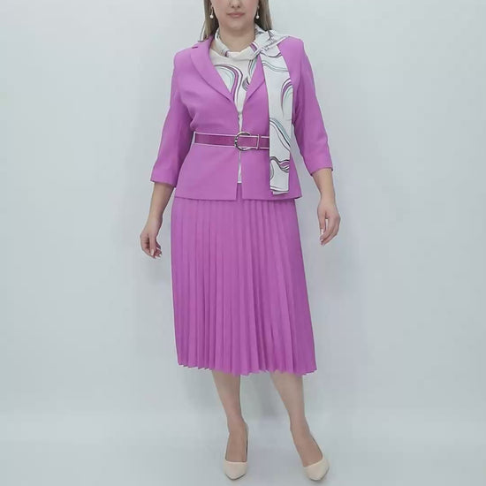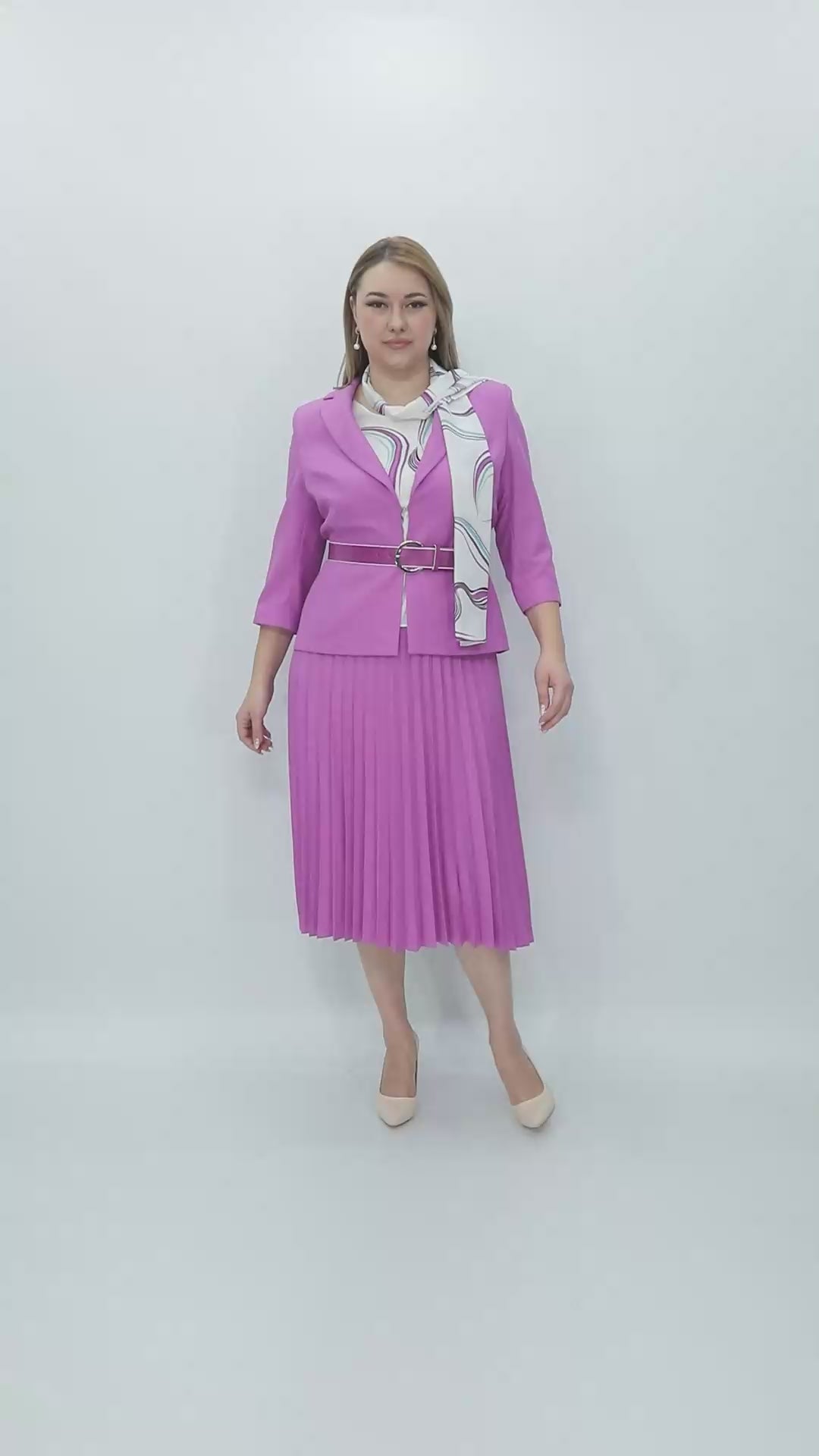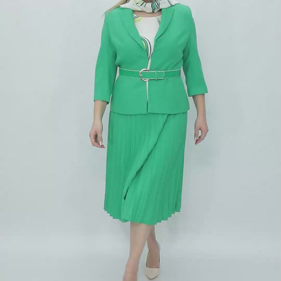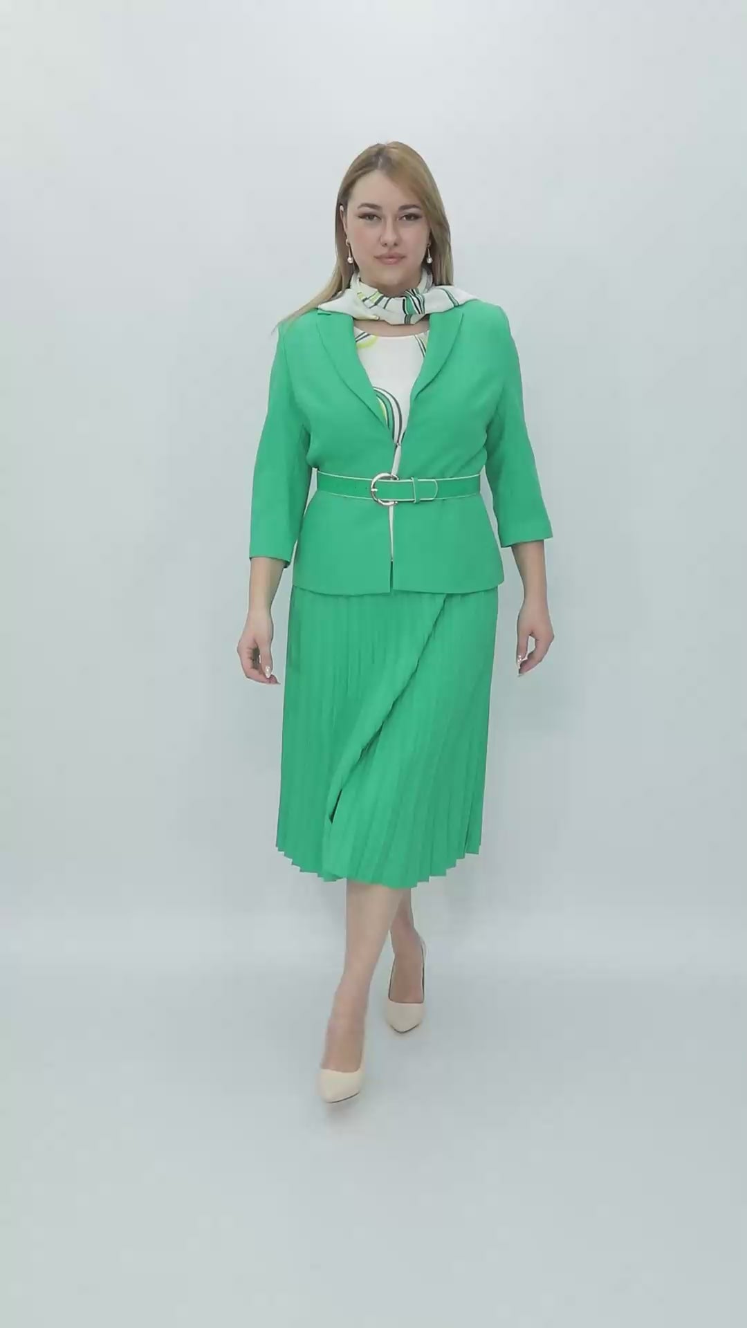 Şifon Bluz, Ceket ve Pliseli Etek Üçlü Kadın Takım (Kemer ve Fular Detaylı)
