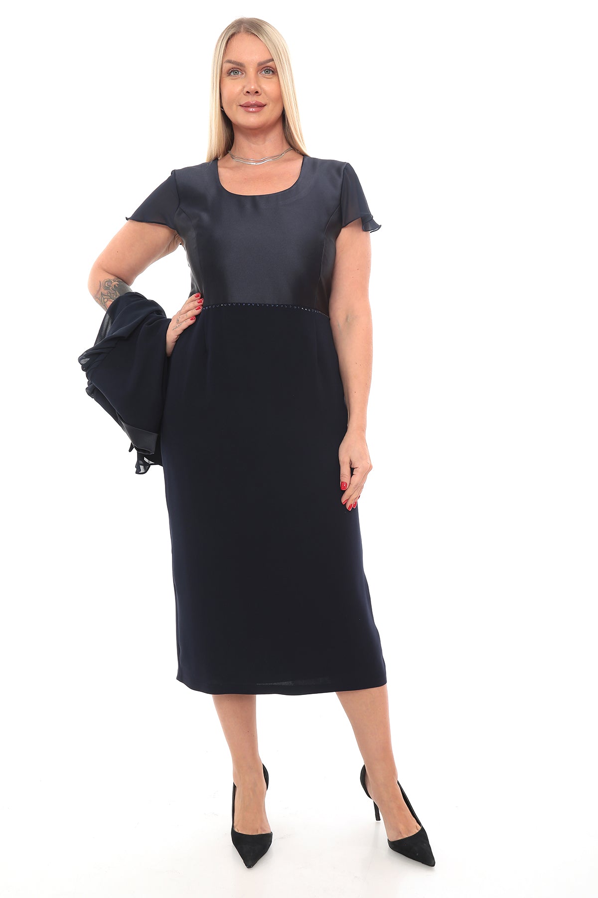 Zarafet ve şıklığın buluştuğu bu lacivert kadın takım elbise, özel günlerinizde ve davetlerde stilinizi ön plana çıkaracak şık bir tercihtir. Modern çizgilerle klasik şıklığı bir araya getiren bu tasarım, vücuda oturan formu ve dikkat çekici detaylarıyla fark yaratır.