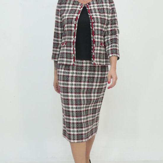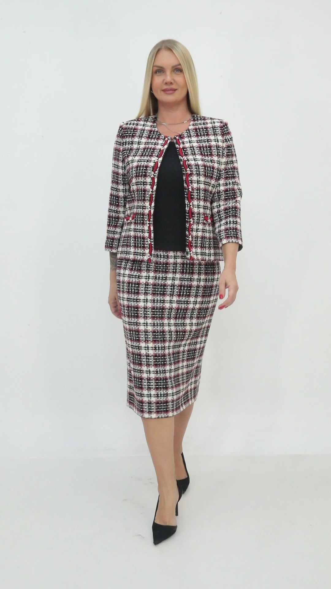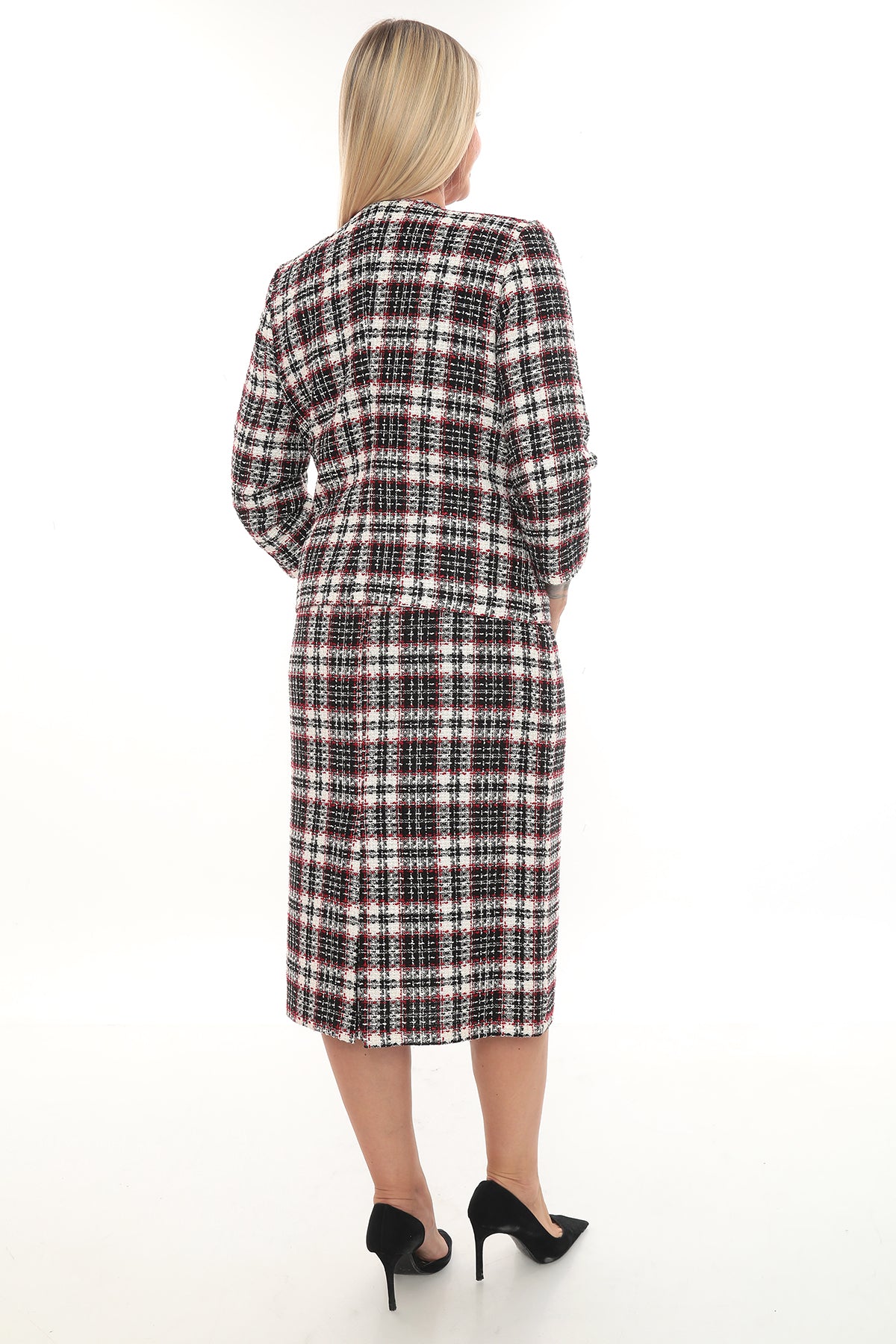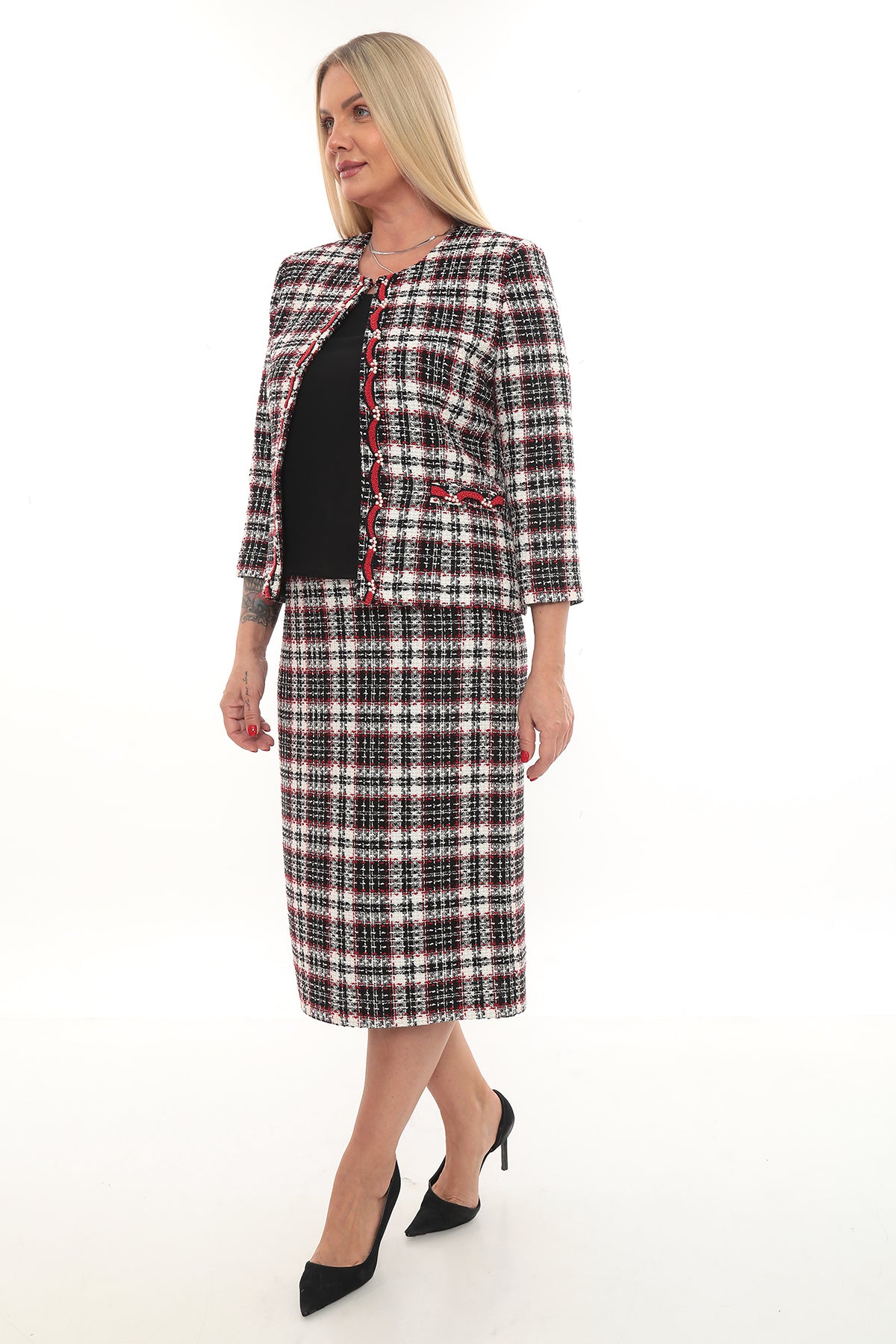 büyük beden takım, kareli ceket etek, klasik takım, kadın ofis kombini, büyük beden ceket, büyük beden etek, şık takım elbise, tweed takım, profesyonel kadın giyim, zarif ofis stili, toptan kadın giyim