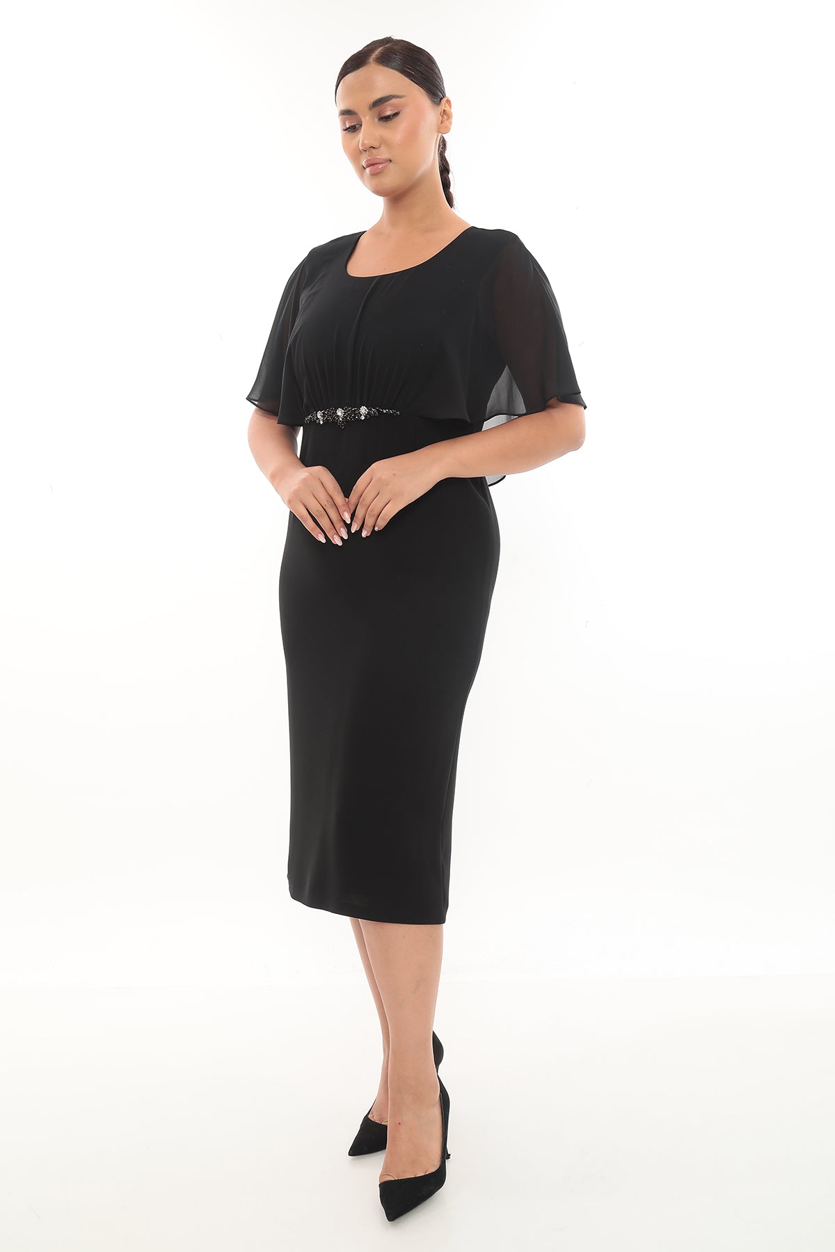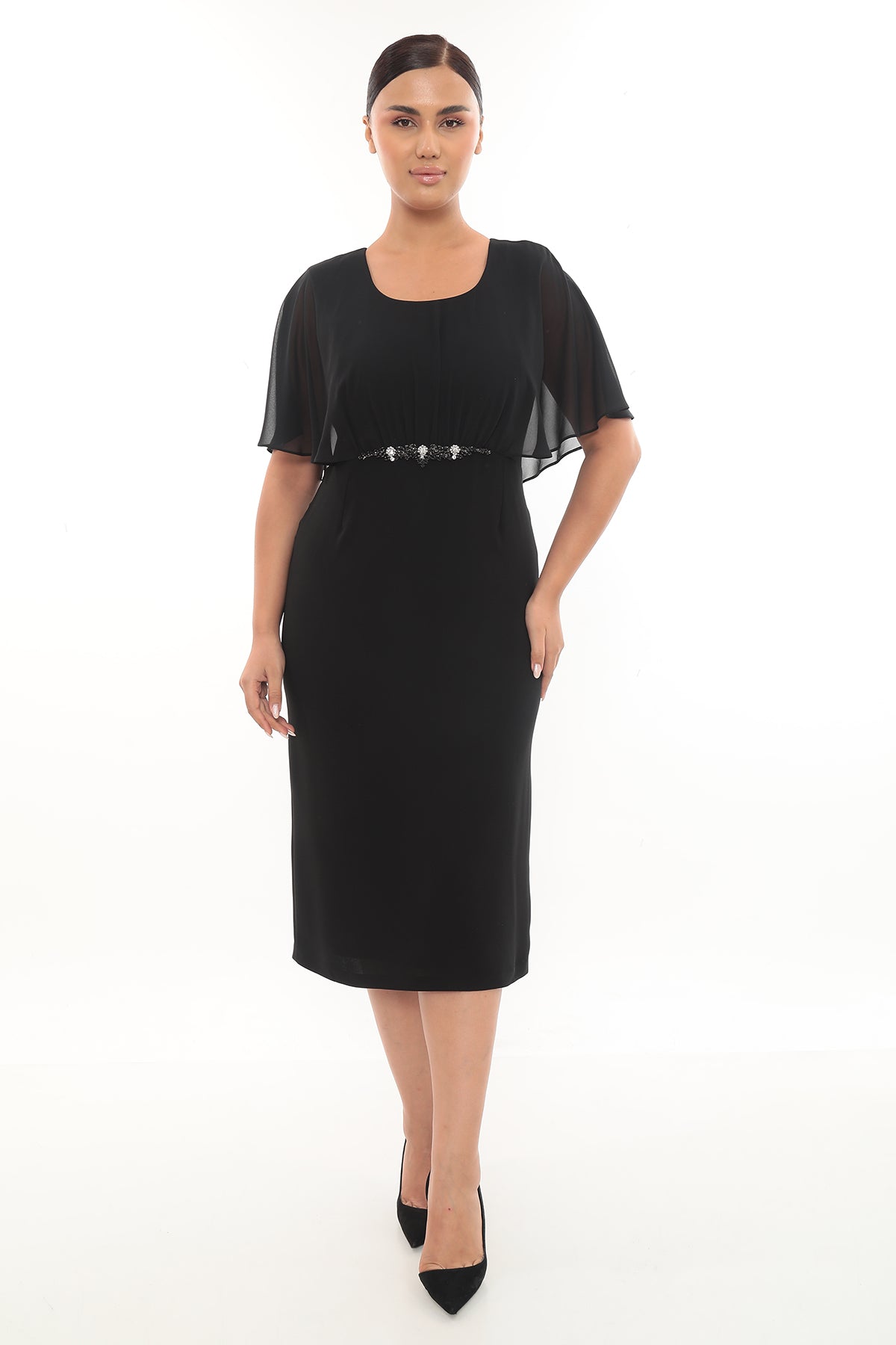 Avantajlar: Taş işlemeli bel detayı ile feminen bir görünüm sağlar. Özel günlerde şıklığı ön plana çıkarır. Hafif ve akışkan kumaşıyla gün boyu rahat kullanım sunar.