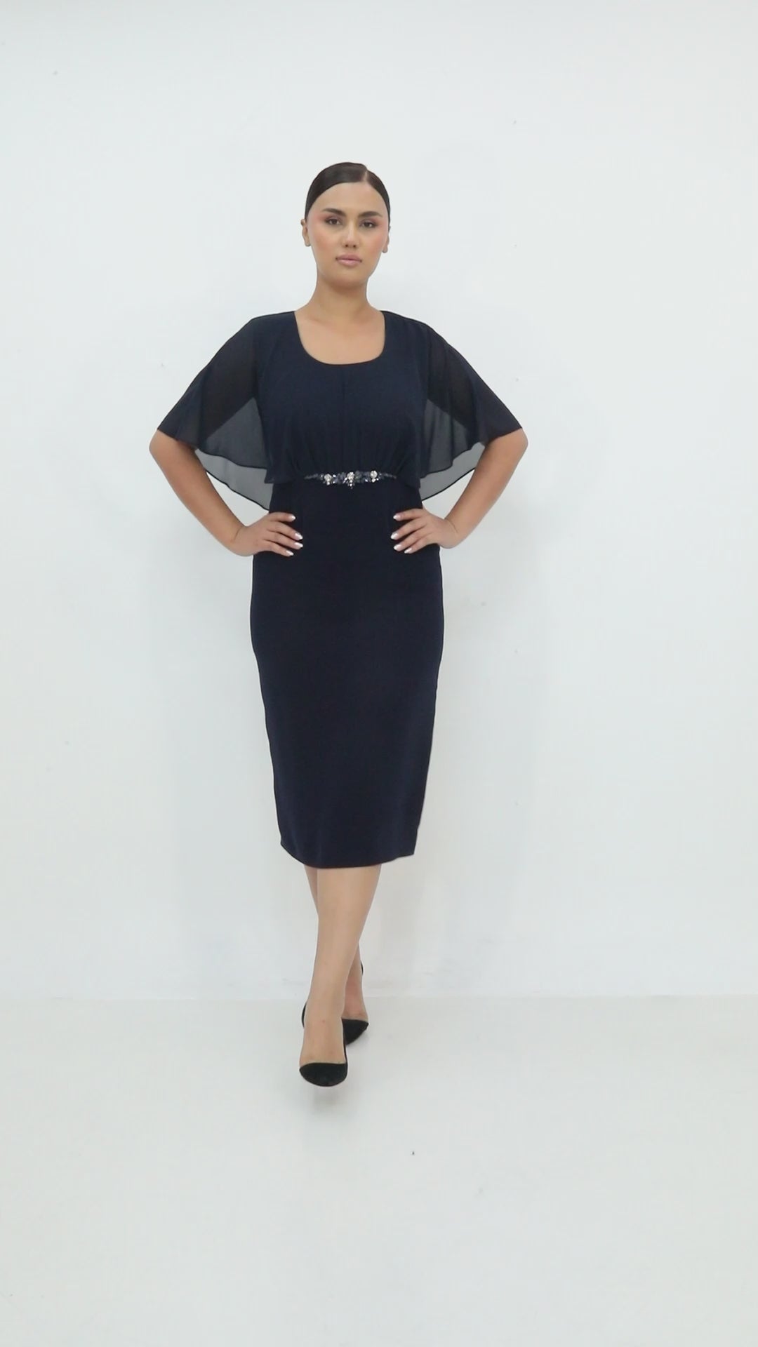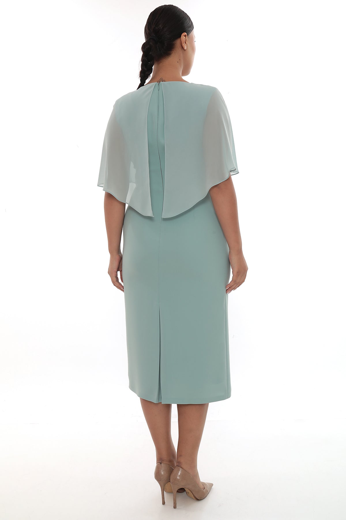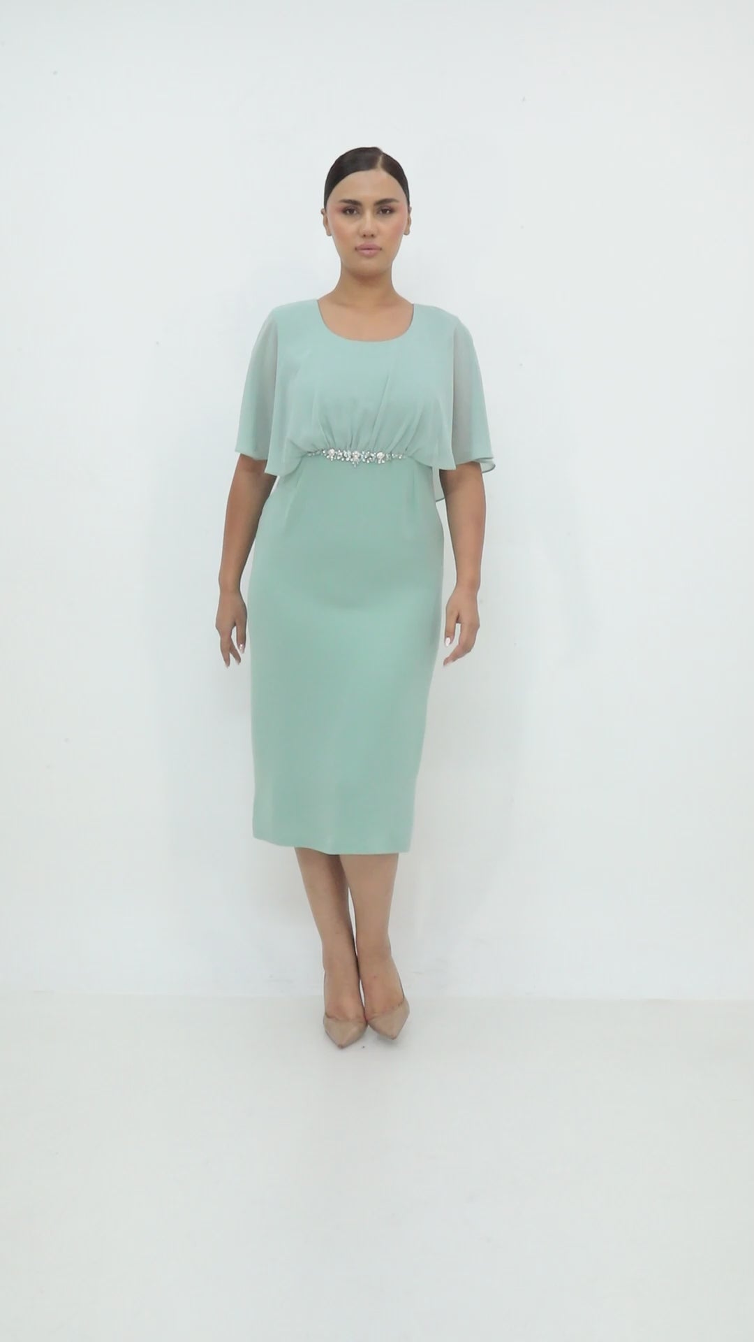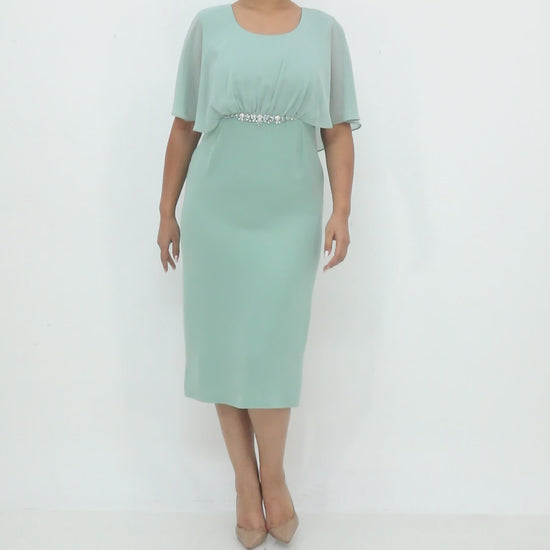 Ürün Açıklaması: Zarif taş detayı ve şifon kollarıyla dikkat çeken elbise, nişan, söz ve özel davetler için şık bir seçimdir.