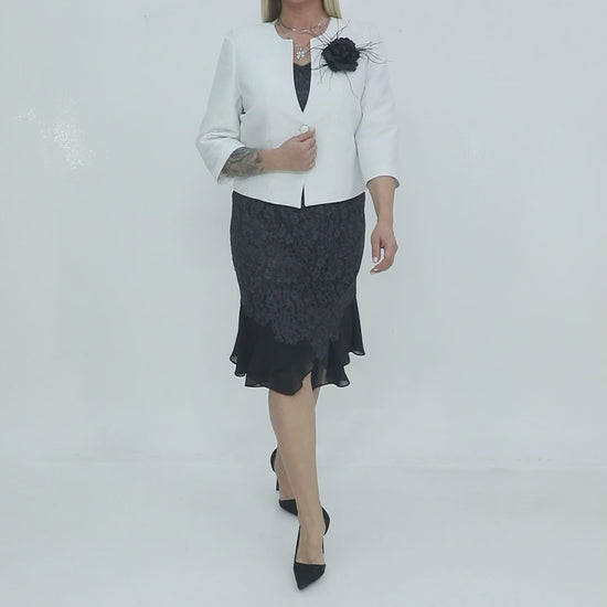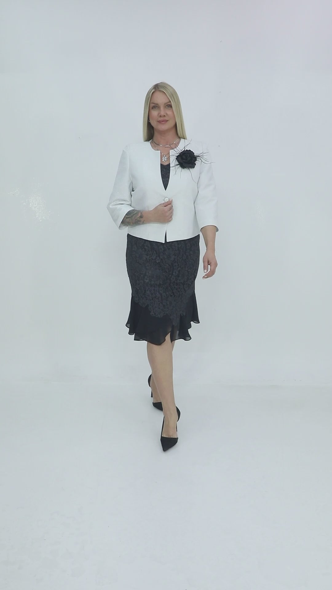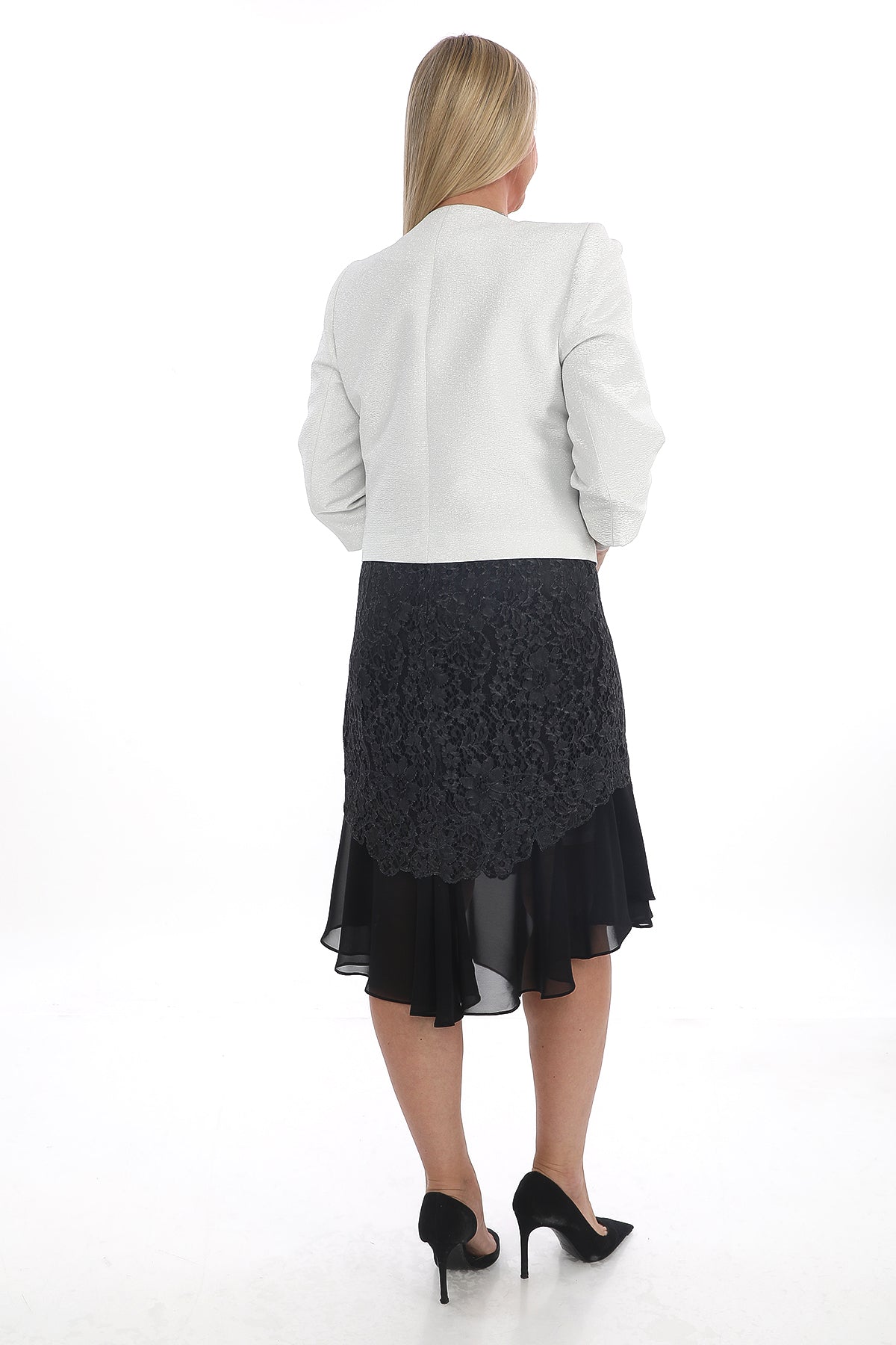 Truvakar Kol Kırık Beyaz Ceketli Dantel Şifon Elbise Abiye Takım