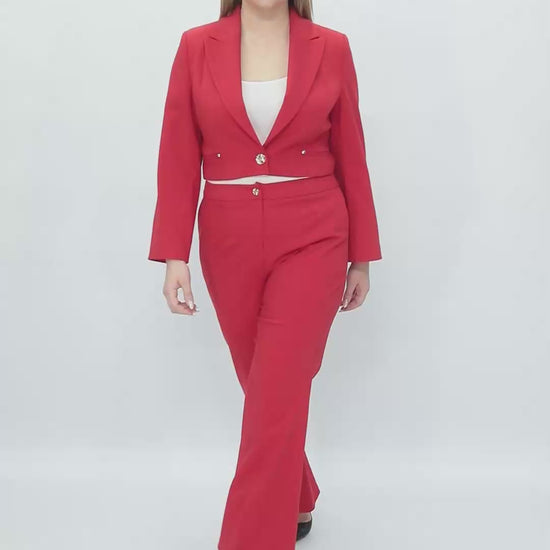 Zarif duruşu ve güçlü tarzıyla öne çıkan bu şık düğme detaylı klasik kadın takım, iş yaşamında ve özel davetlerde etkileyici bir görünüm sunar. Krem, kırmızı, lacivert ve siyah renk seçenekleriyle her stile uyum sağlar. Vücut hatlarını kusursuz şekilde saran kalıbı ve kaliteli kumaş yapısıyla gün boyu konforlu bir kullanım sağlar.